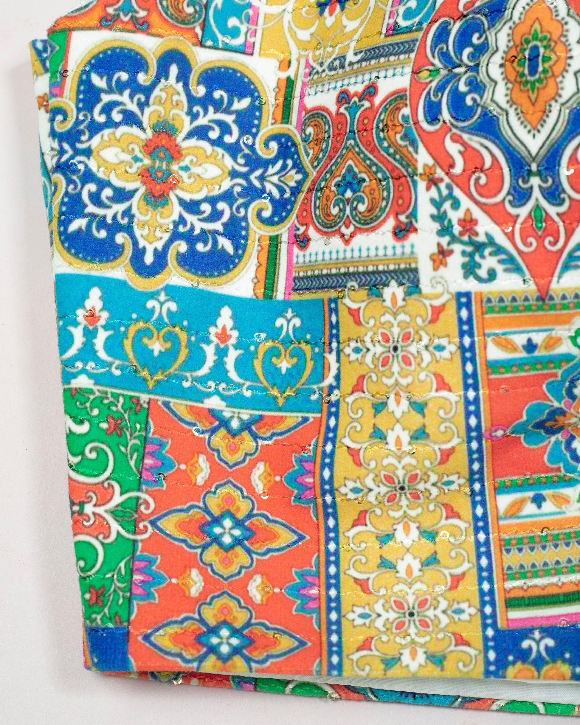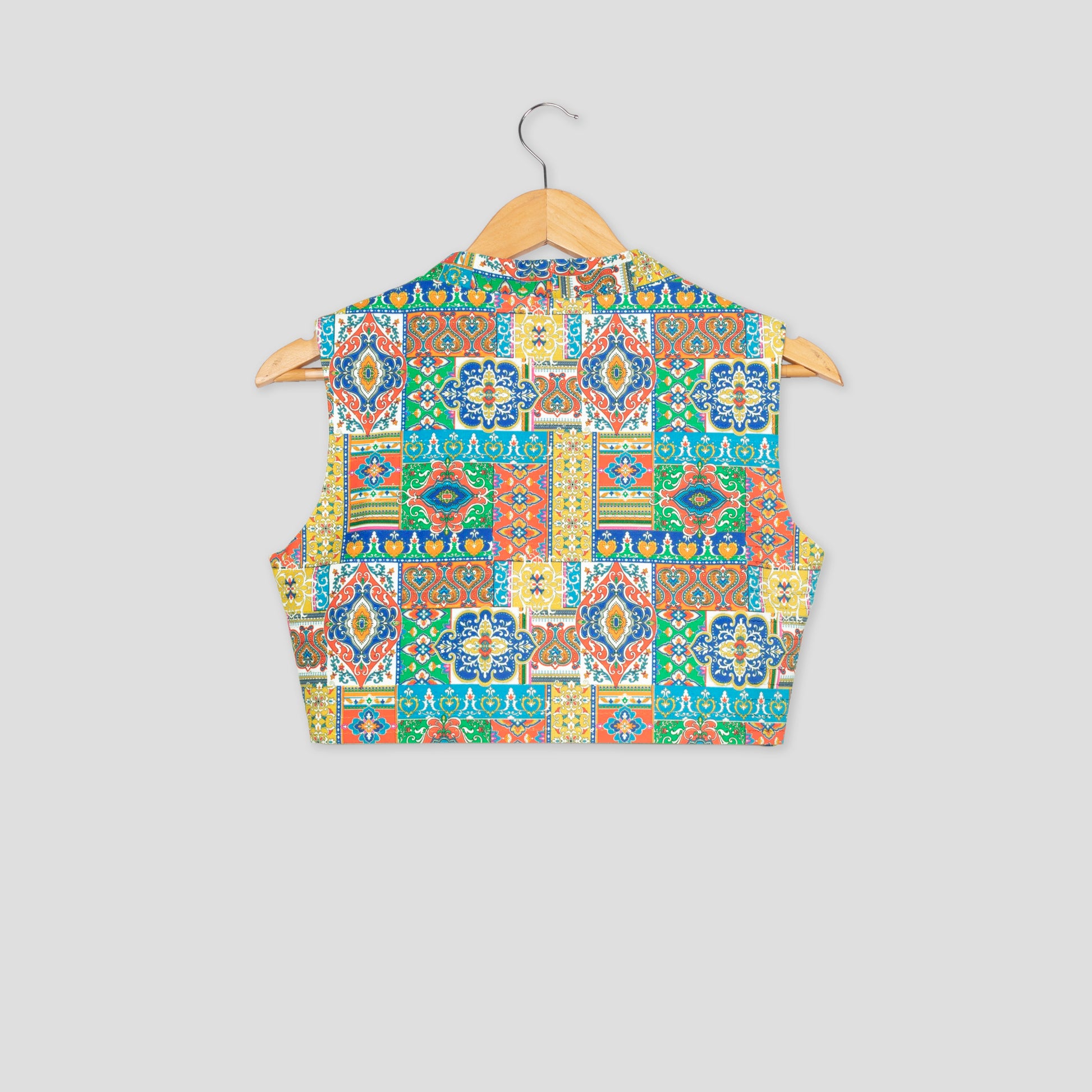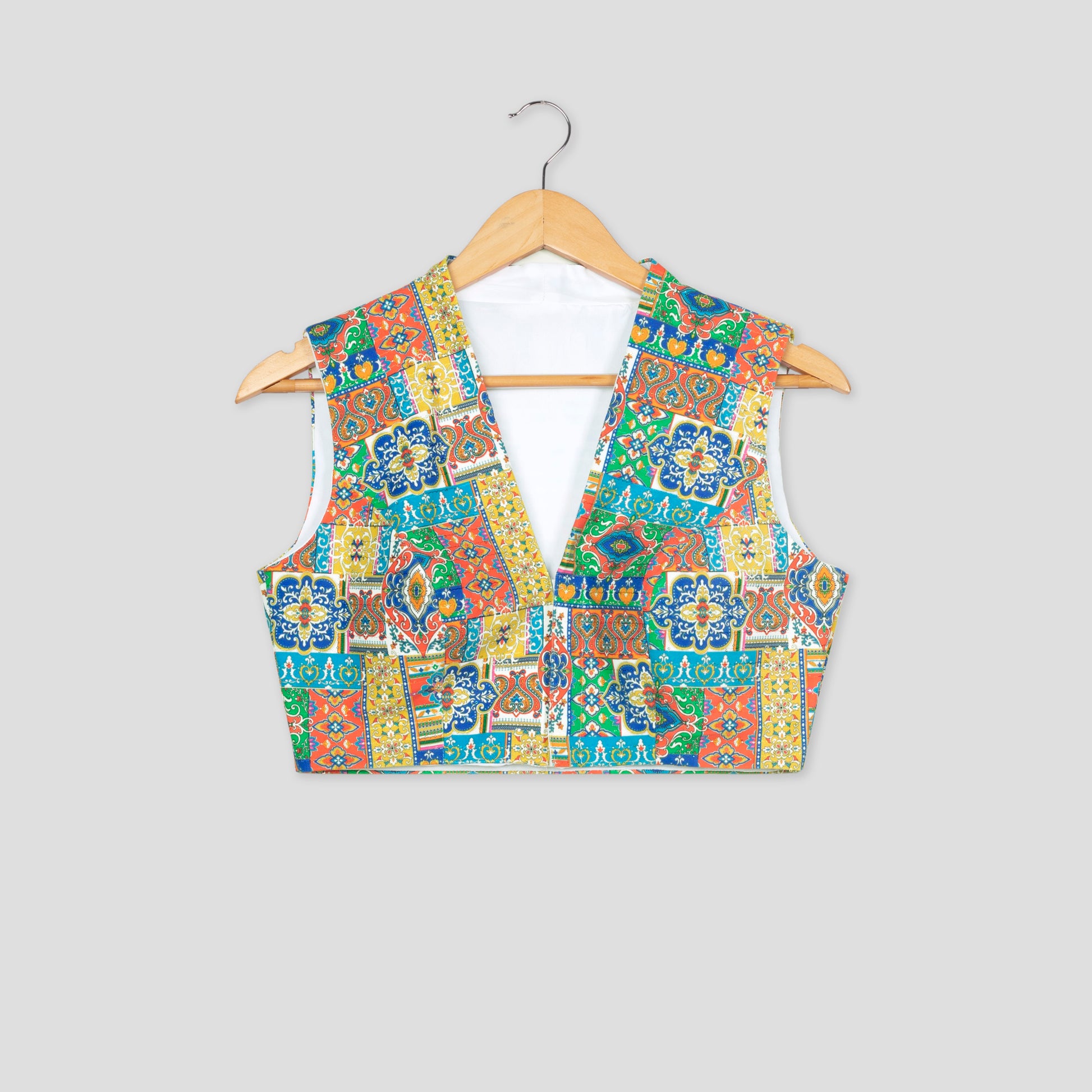 Mugal Print V Neck Sequins Velvet Embroidery Blouse