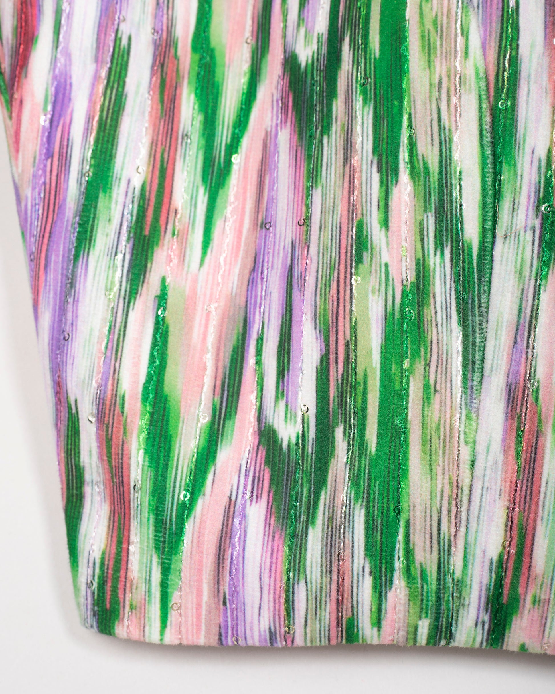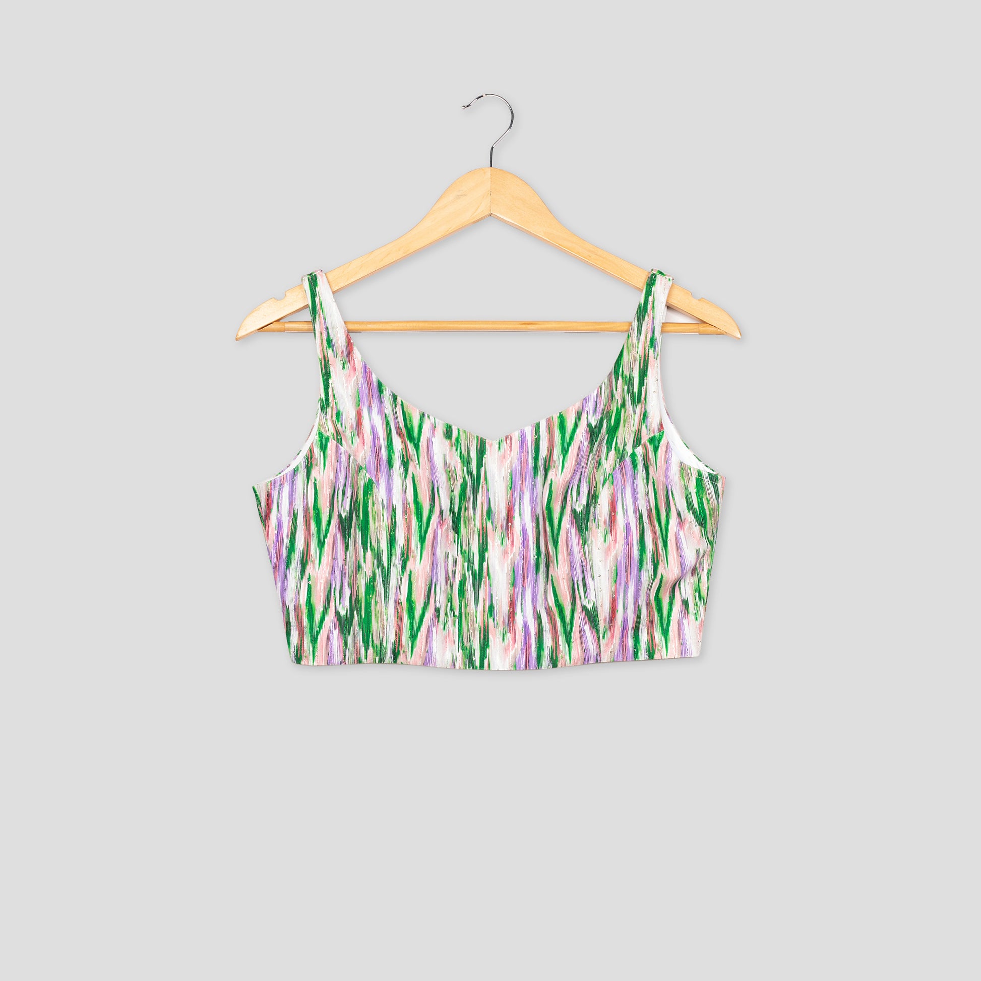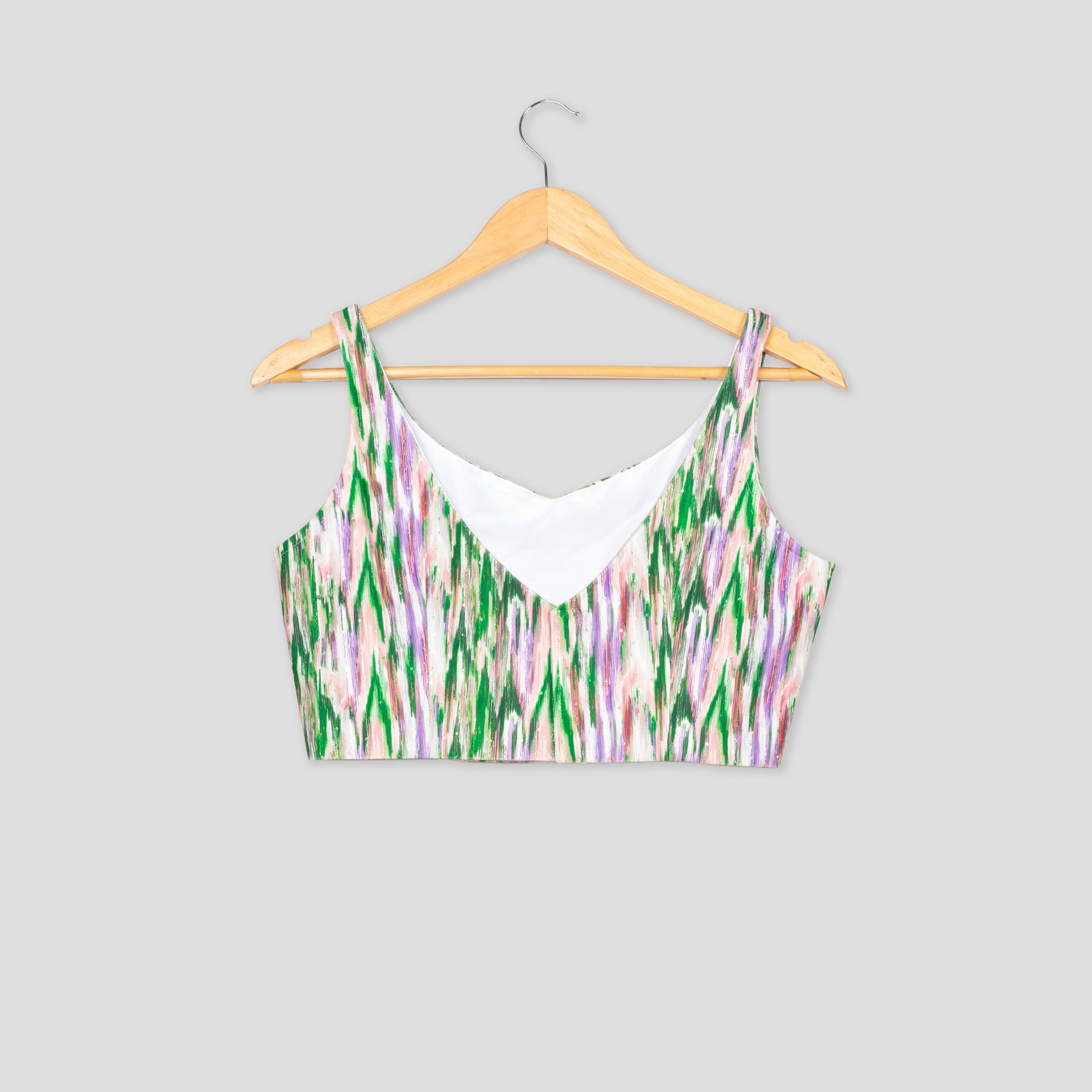 Sleeveless Ikkat Print Sequins Velvet Embroidery Blouse