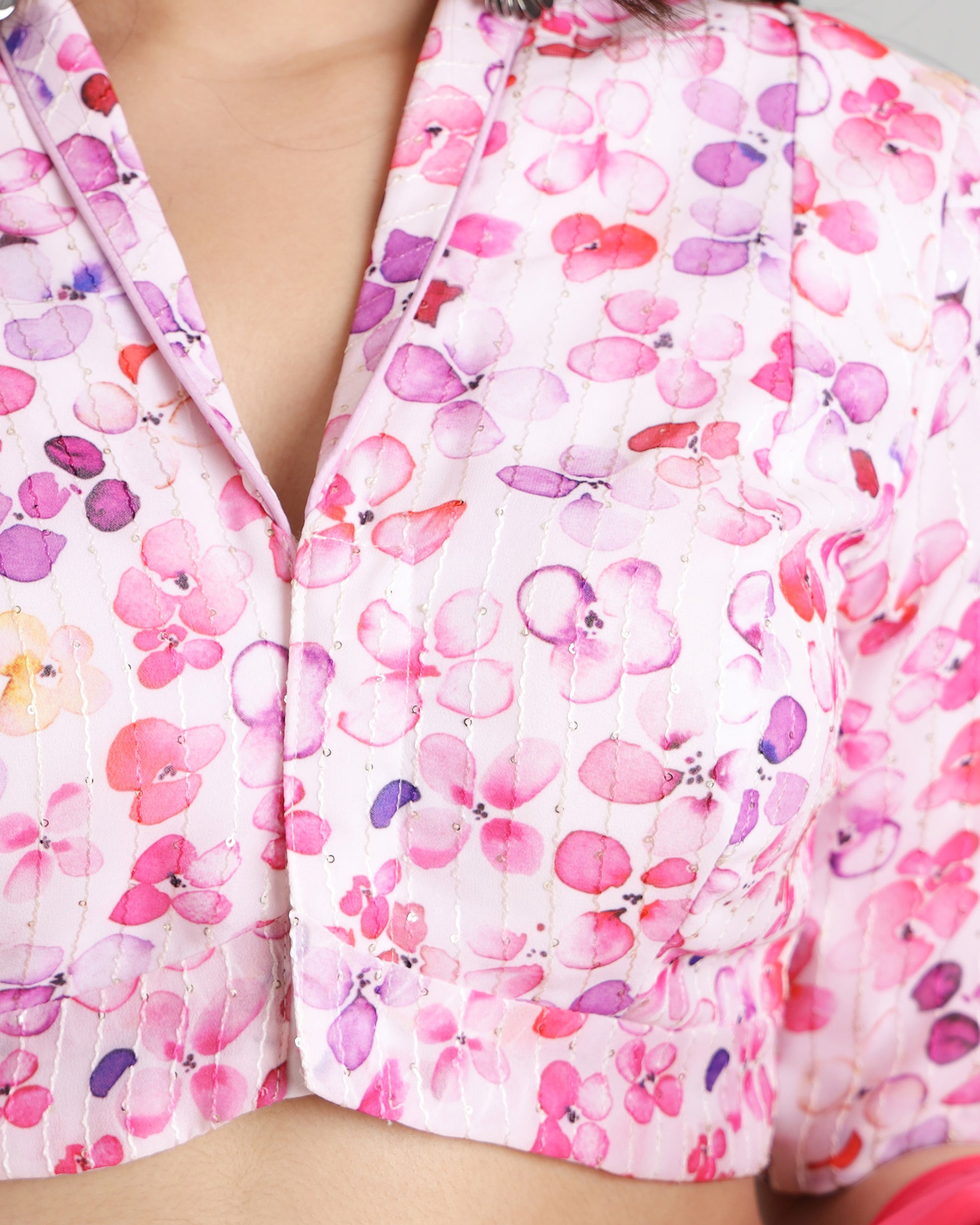 The Flirty Floral: Stylish Shawl Collar Blouse