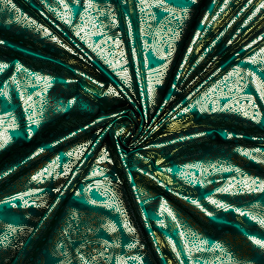 Sacramento Green Paisley Pattern Golden Foil Print Jacquard Booti Japan Satin Fabric (Width 54 Inches) Sacramento Green Paisley Pattern Golden Foil Print Jacquard Booti Japan Satin Fabric (Width 54 Inches)