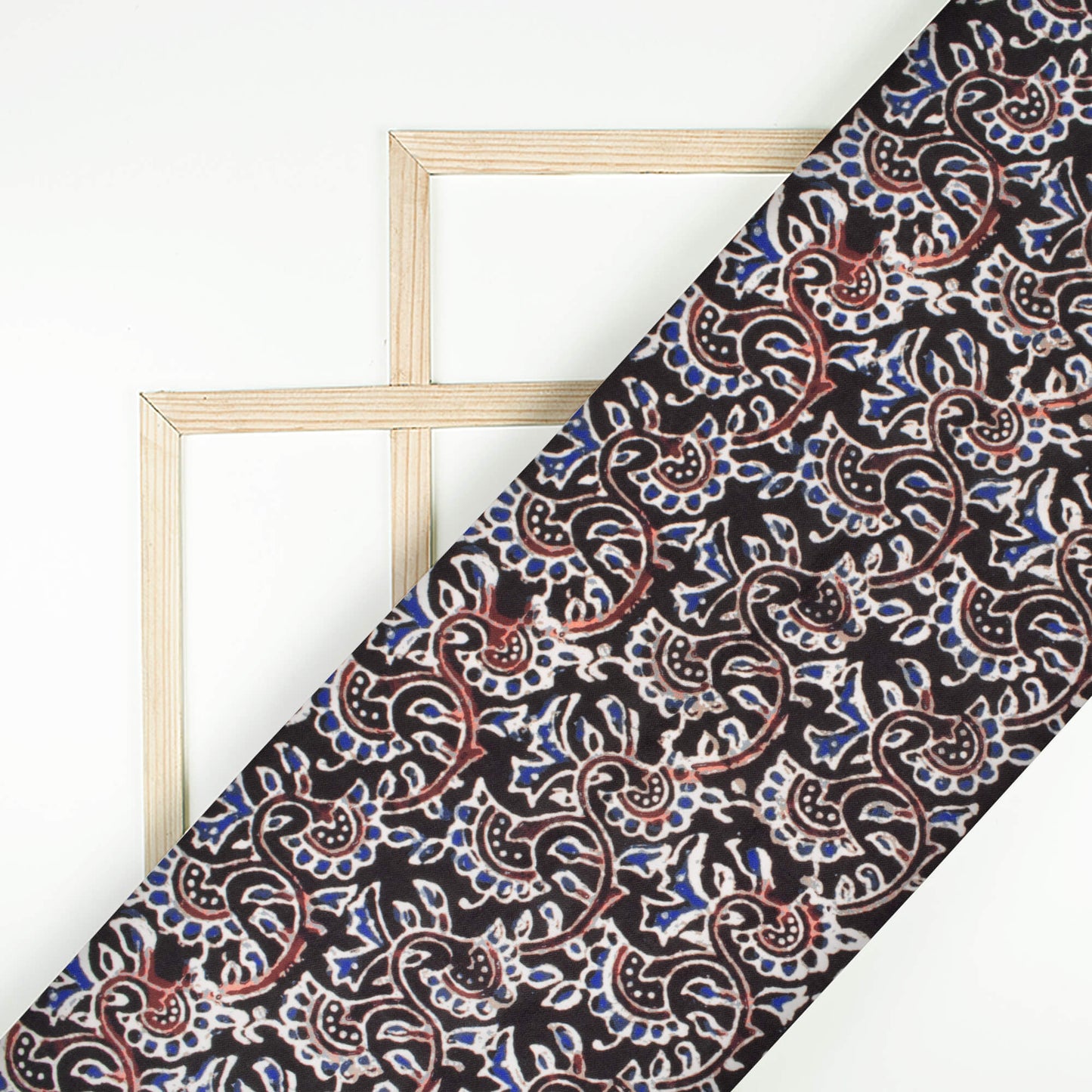 Black And Blue Ajrakh Pattern Digital Print Rayon Fabric