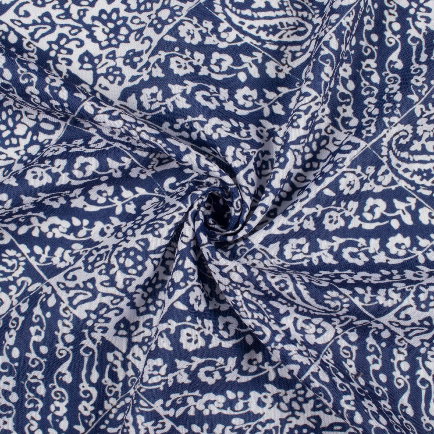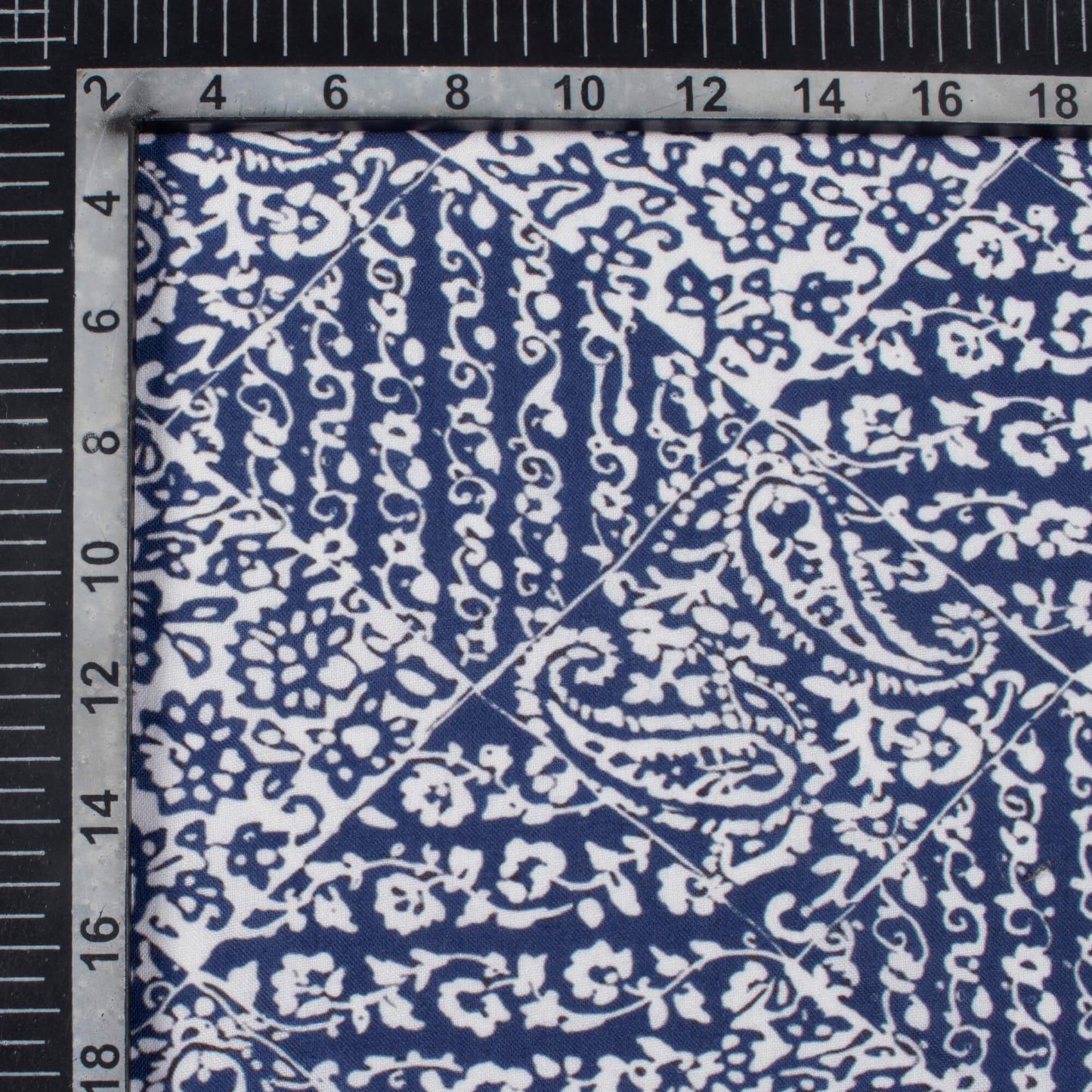Blue And White Indiigo Pattern Digital Print Rayon Fabric