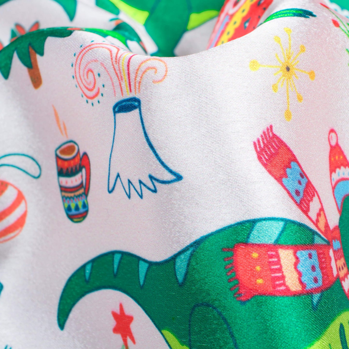 Cream And Green Christmas Pattern Digital Print Japan Satin Fabric