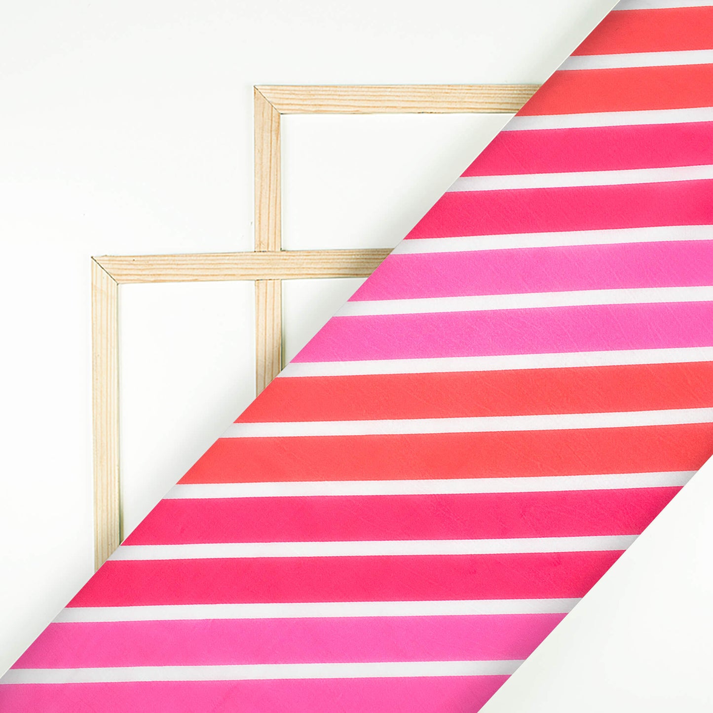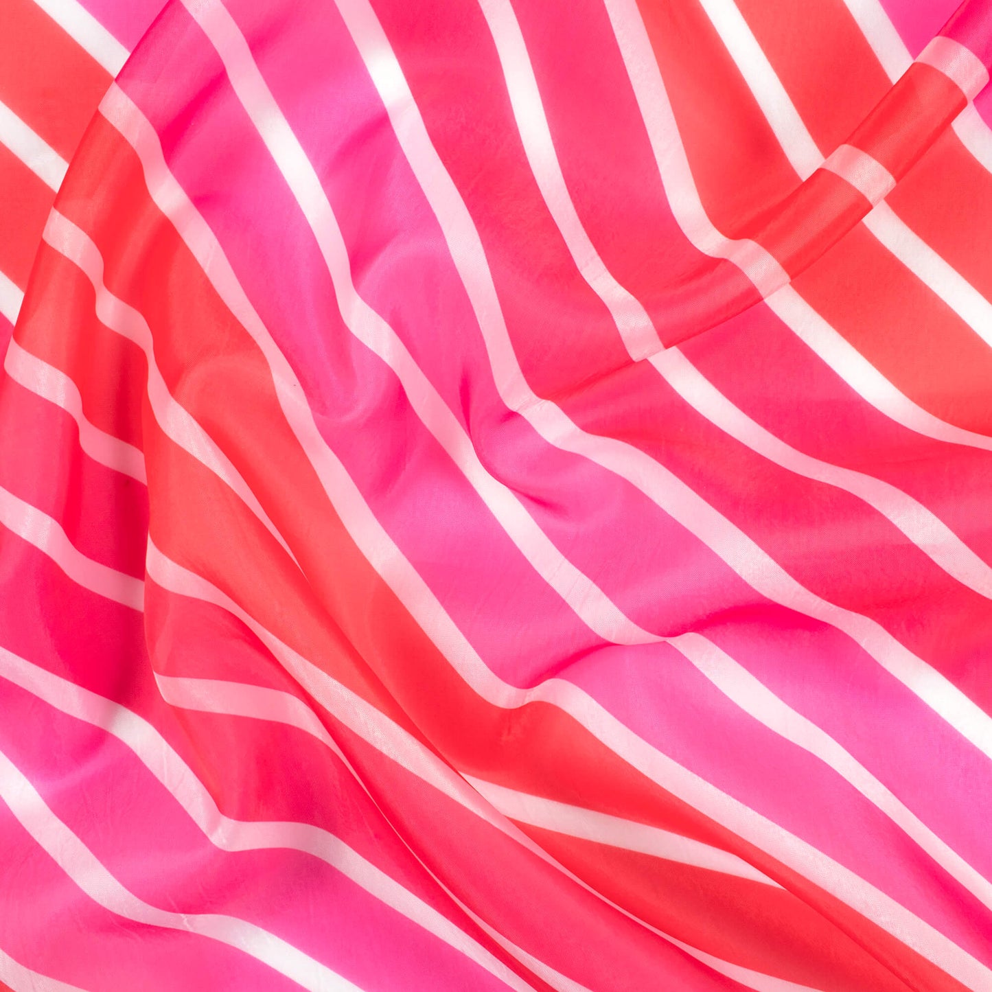 Hot Pink And Red Bandhanii Pattern Digital Print Organza Satin Fabric