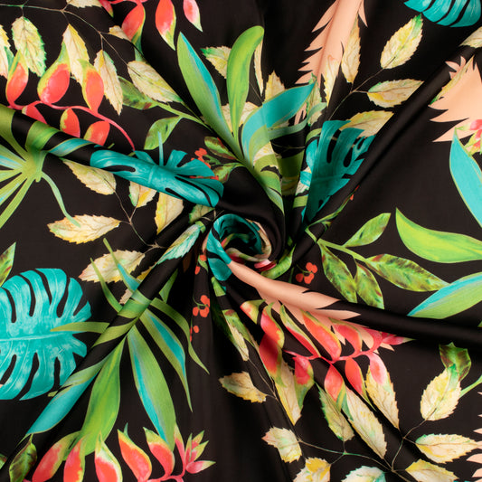 Multi-Color Leaf Digital Print Organza Satin Fabric Multi-Color Leaf Digital Print Organza Satin Fabric