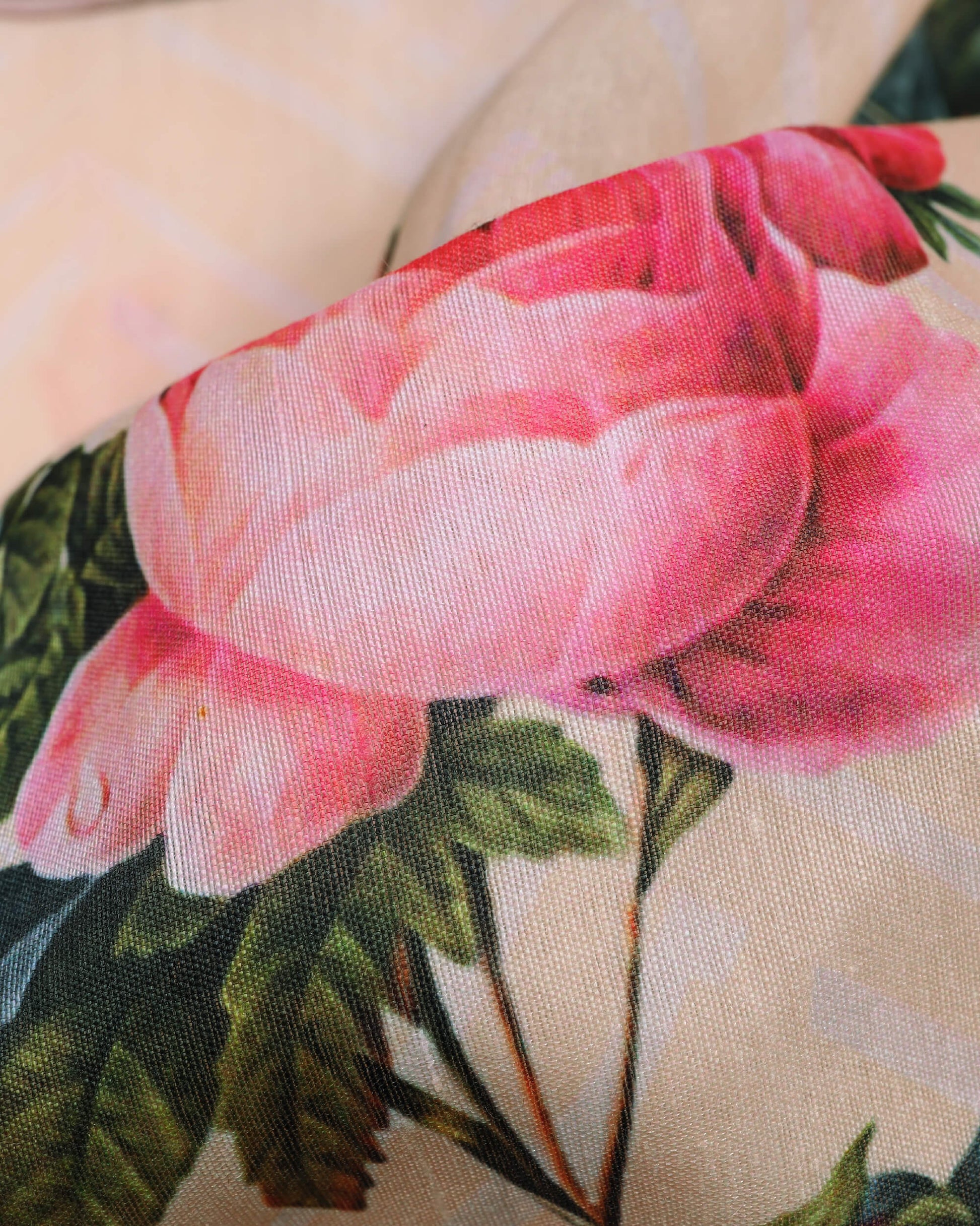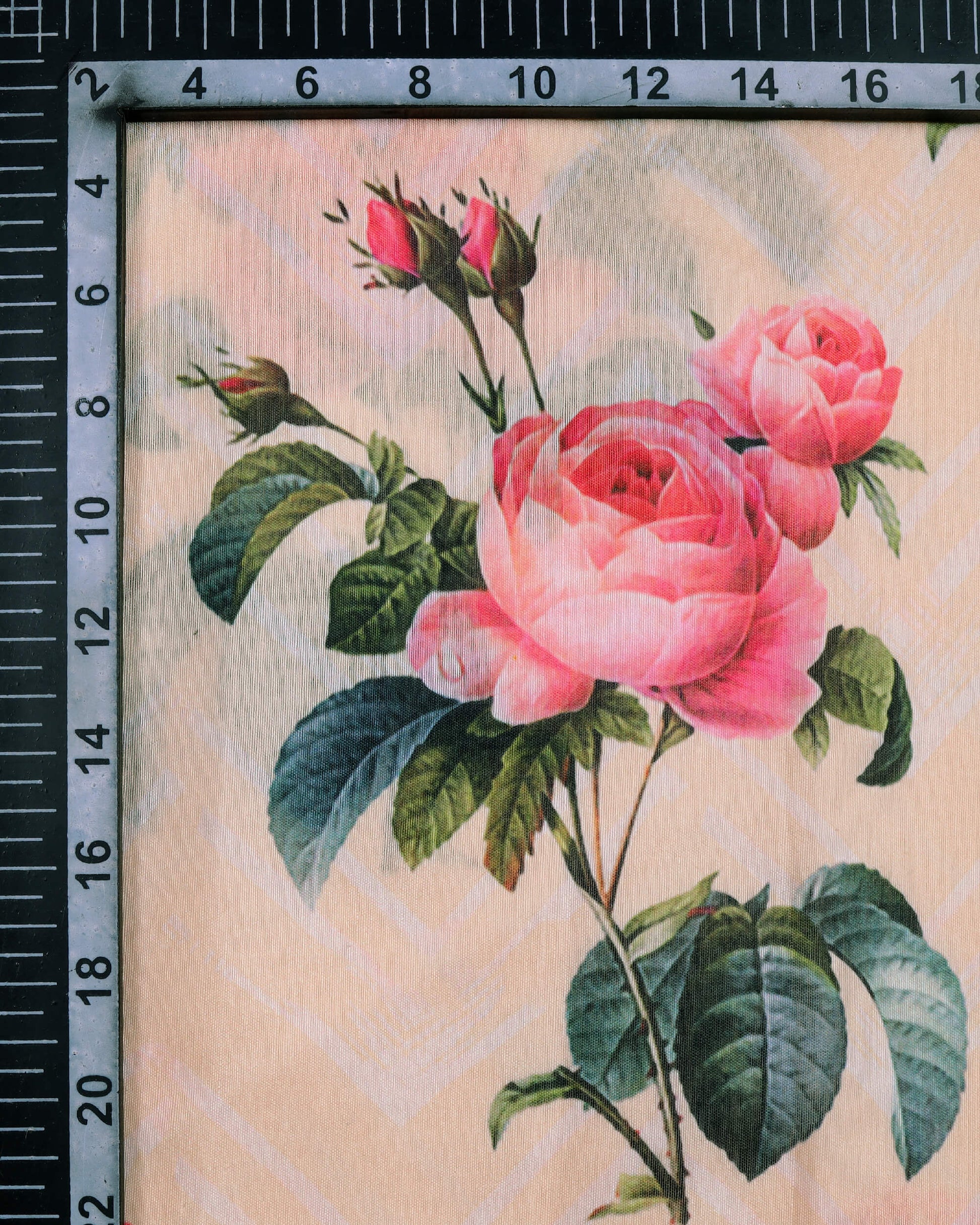 Burnt Orange And Pink Floral Pattren Digital Print Chanderi Dupatta With Tassels