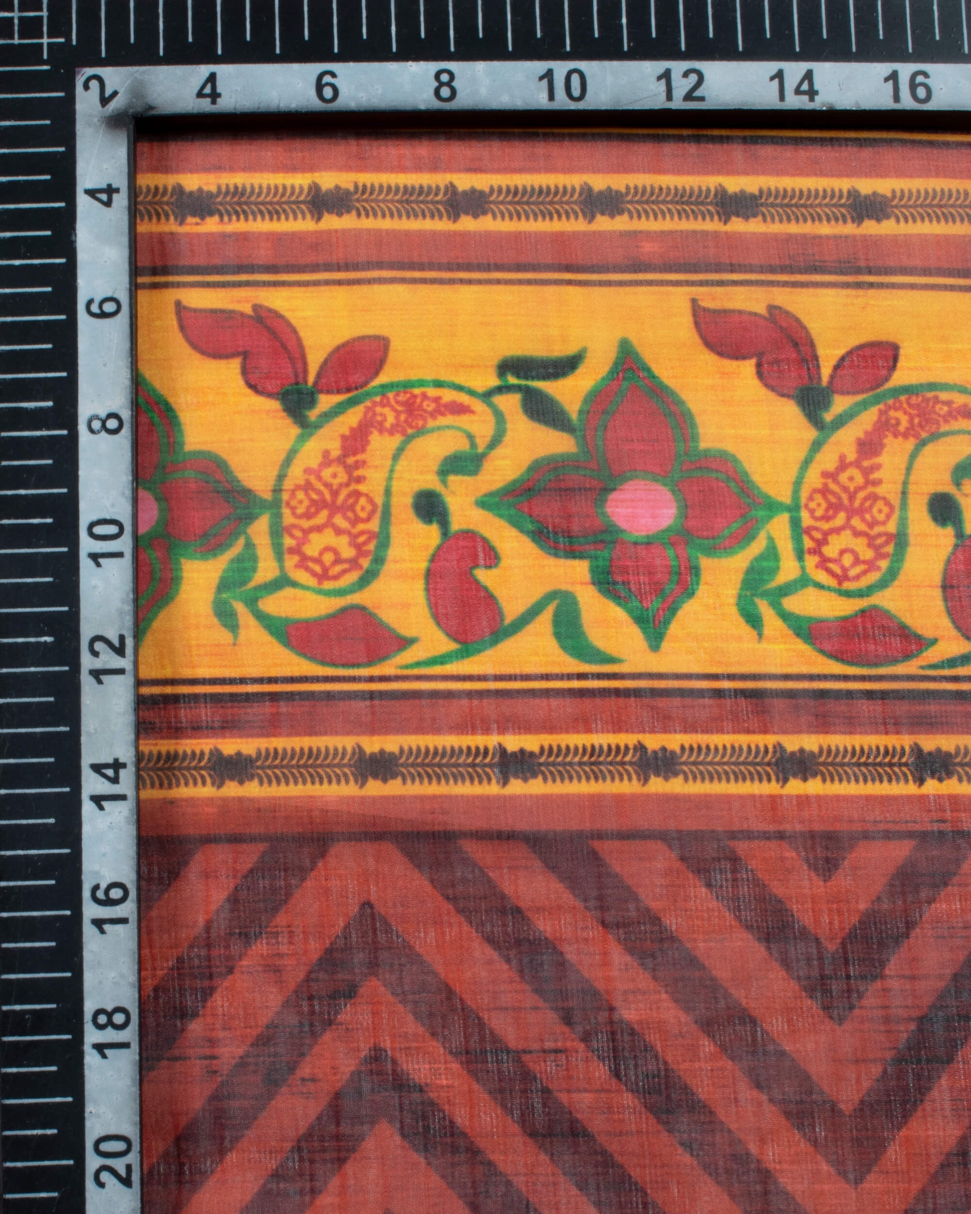 Maroon And Lime Green Leaf Pattern Digital Print Chiffon Dupatta With Tassels