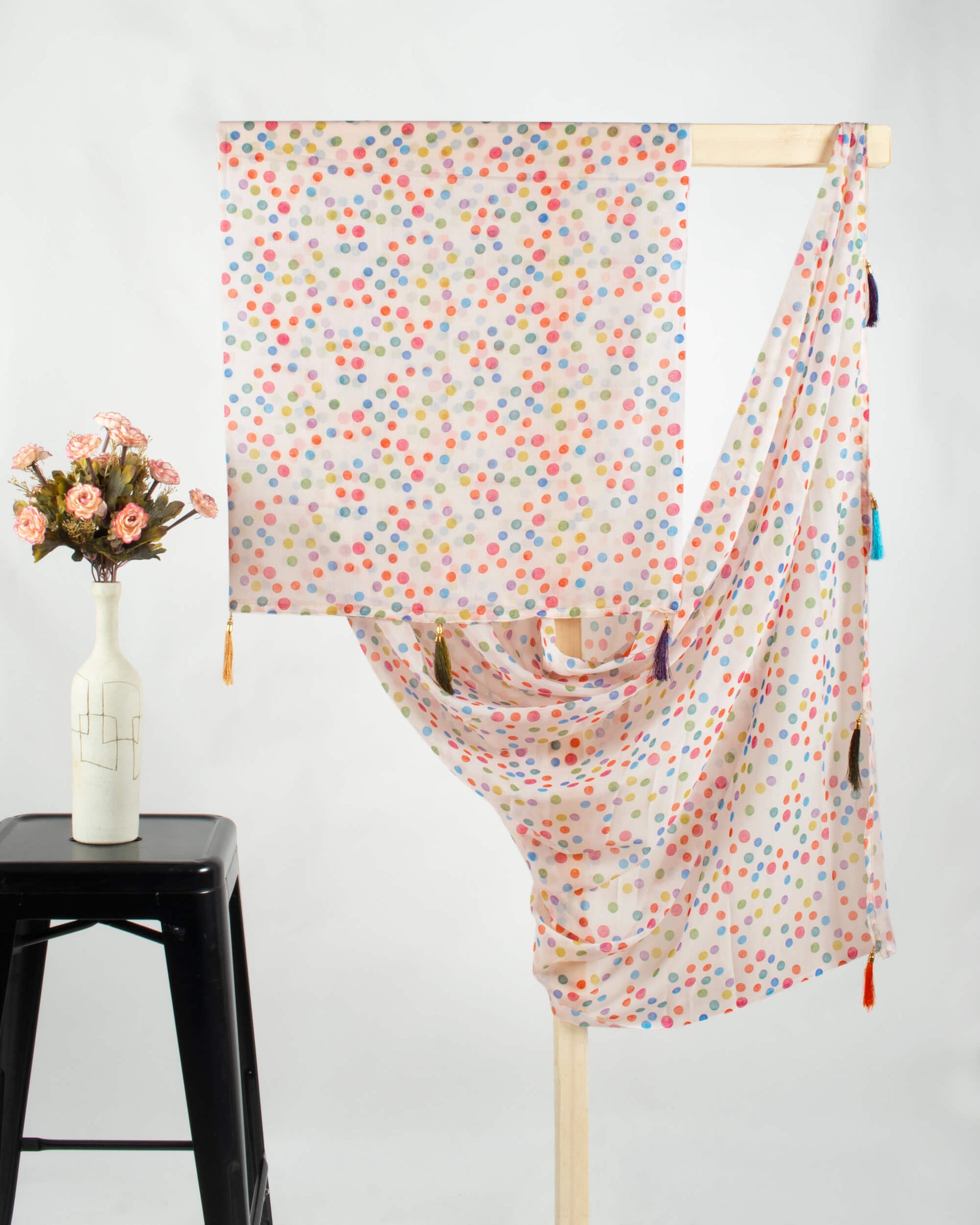Bringing you a very futuristic combination which is Digital print on Chiffon fabric. Fabcurate’s dupatta collection always stands out from the crowd. Adding to the collection is Digital Print Chiffon Dupatta with tassels. The digital impact on Chiffon looks super fresh and young and at the same time maintains the traditionalism of a dupatta. Take your pick from the variety of motifs ranging from abstract, quirky, floral, geometric, paisley, traditional, and much more. Style this elegant piece of clothing with a saree, a kurta, suit, as a stole, or as a top.
