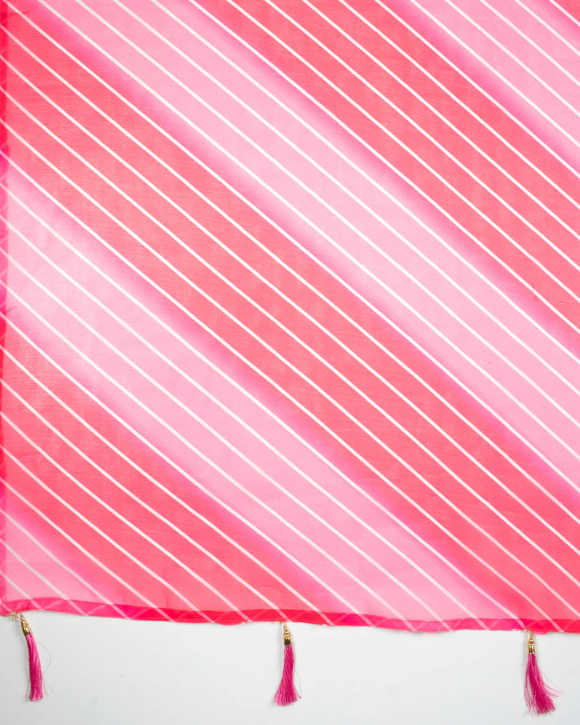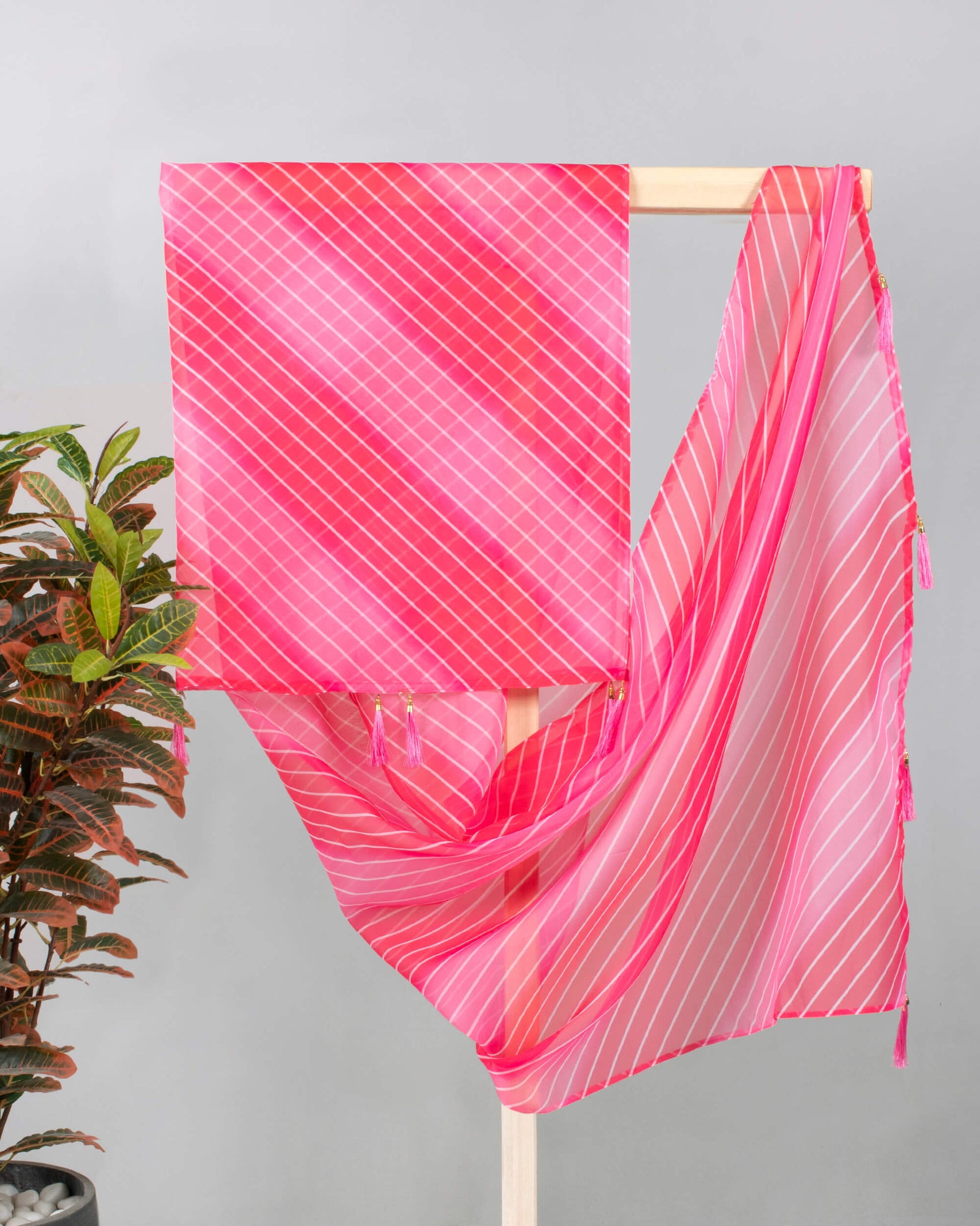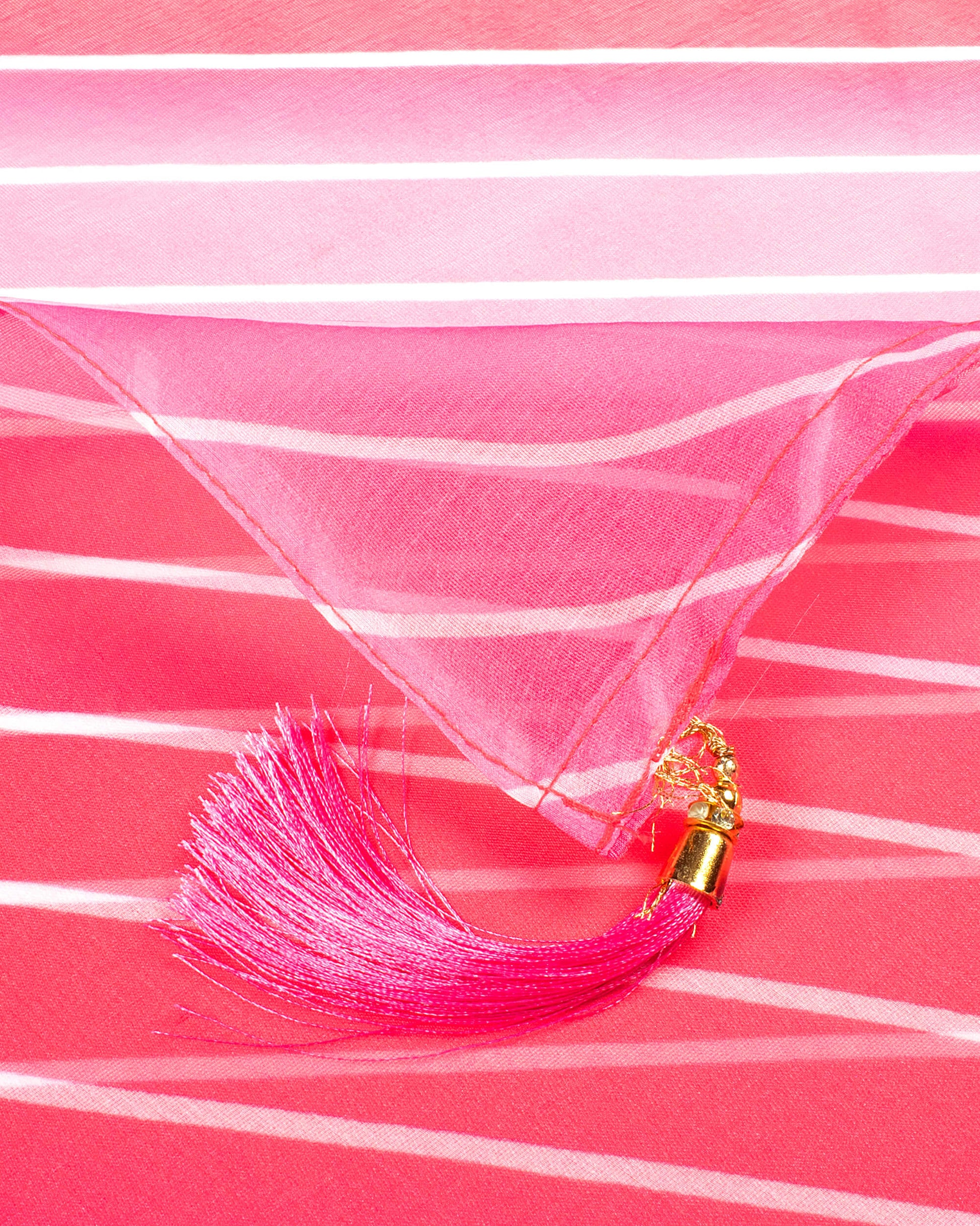 Pink And White Leheriya Pattern Digital Print Organza Dupatta With Tassels