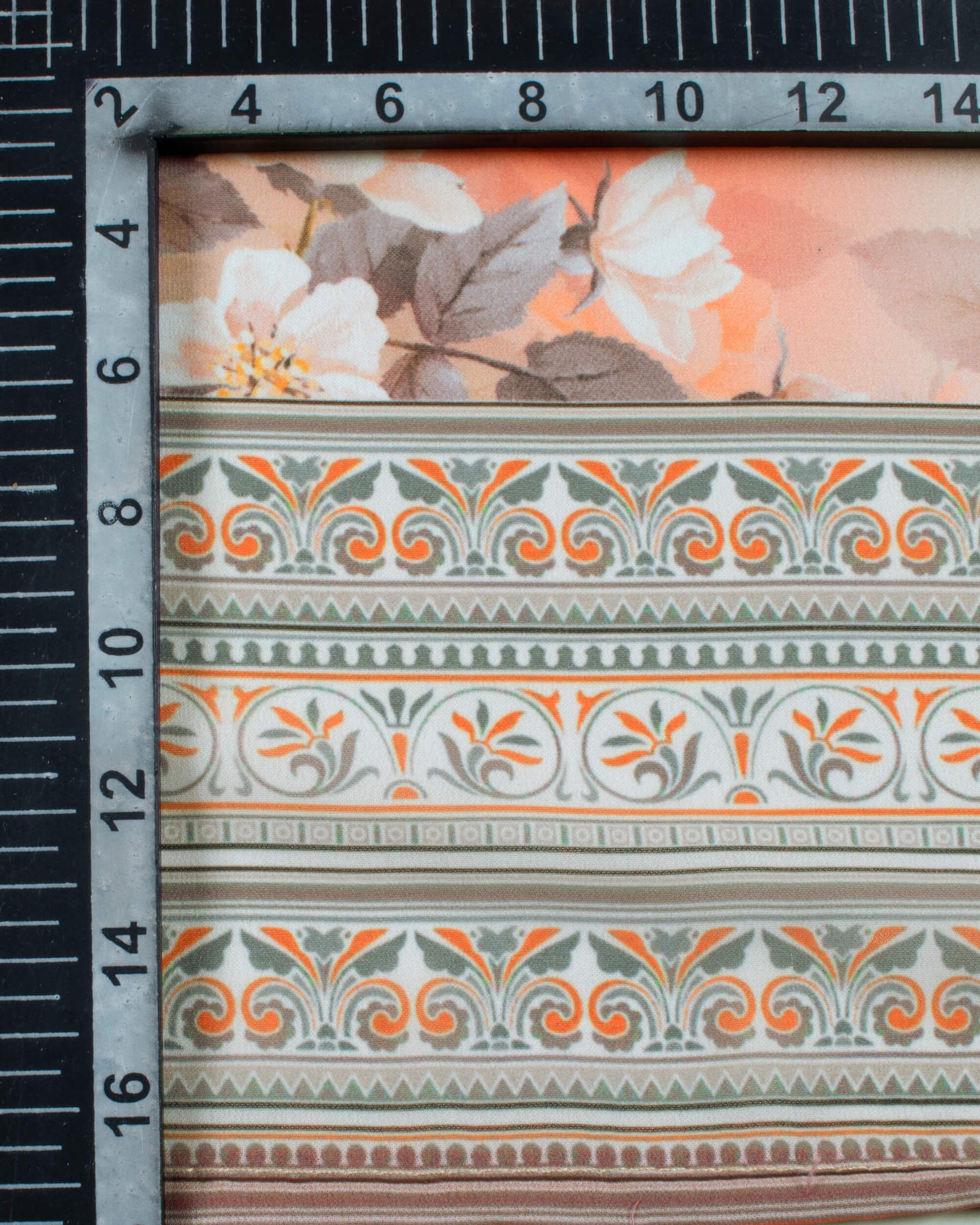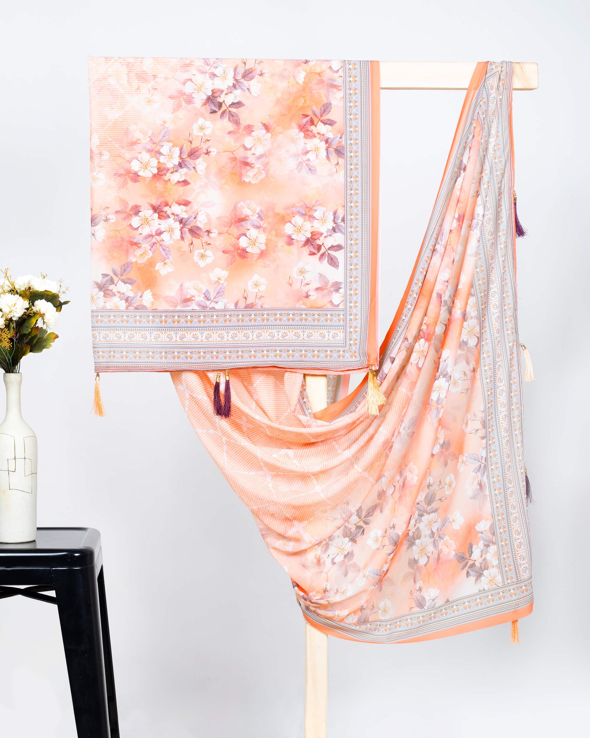 Salmon Pink And White Floral Pattern Digital Print Georgette Dupatta With Tassels