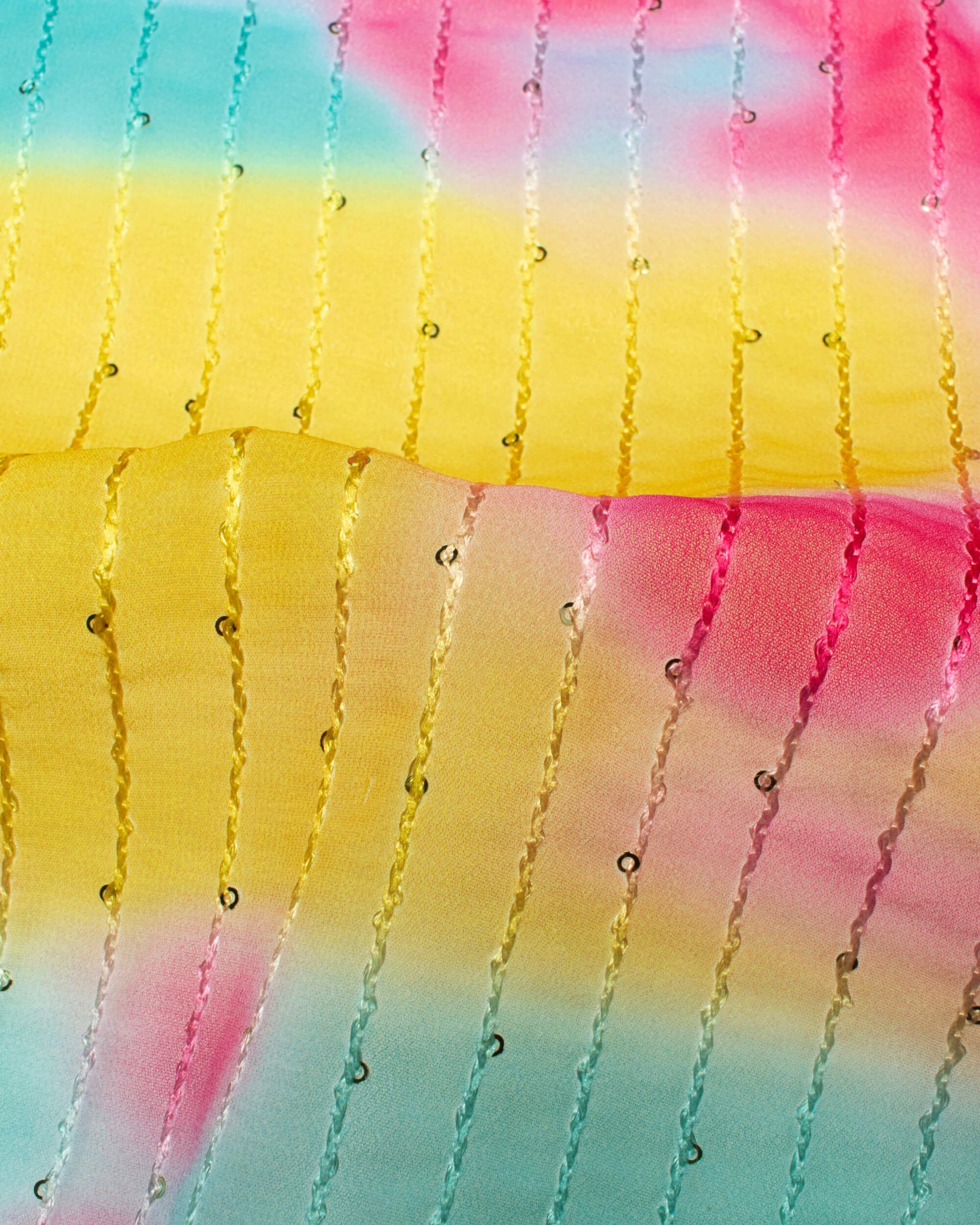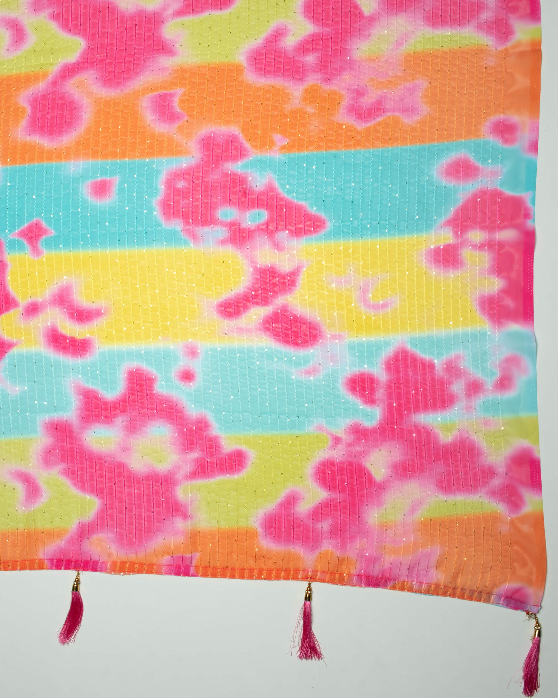 Turquoise Blue And Fuchsia Tye And Dye Pattern Digital Print Sequins Georgette Dupatta With Tassels