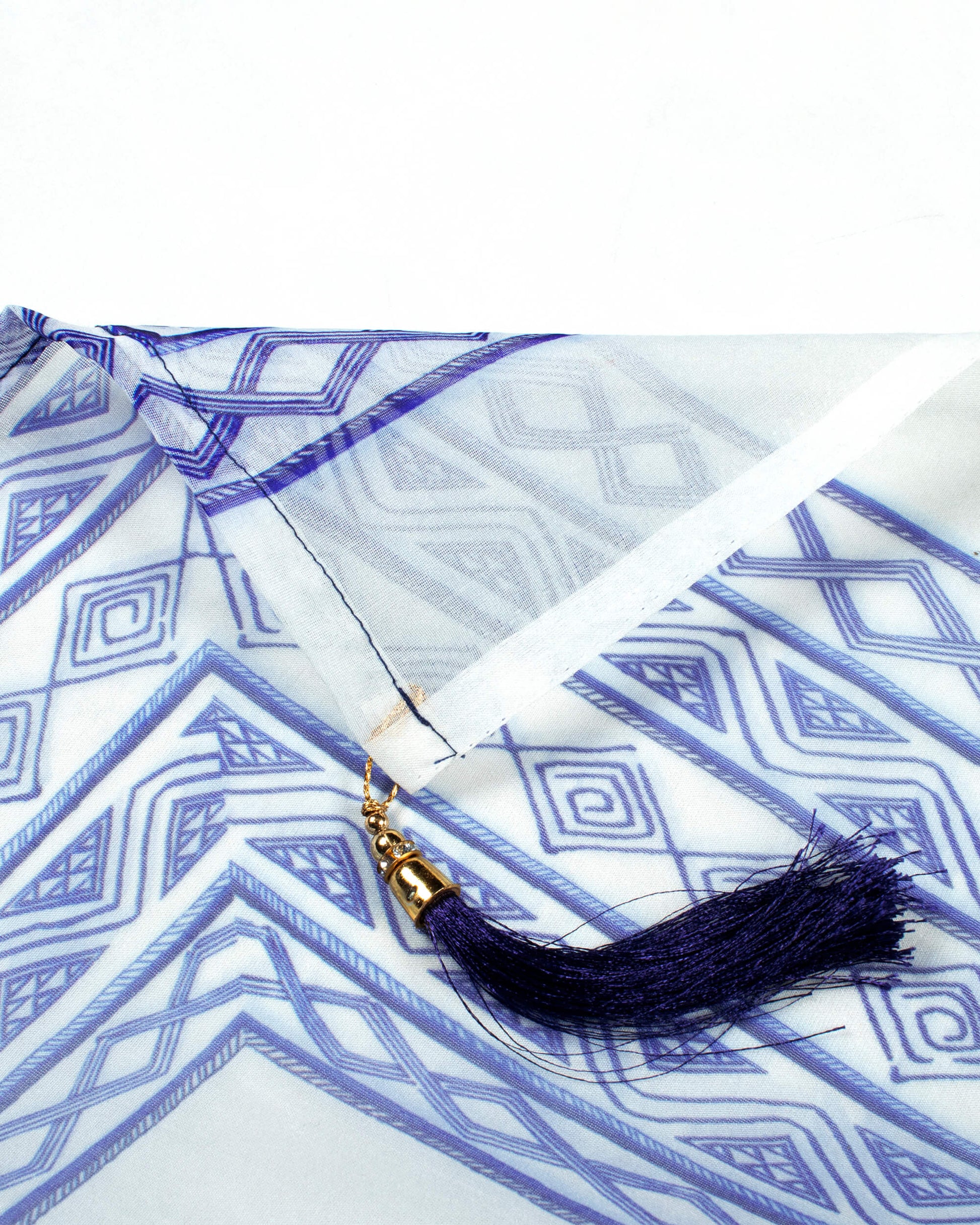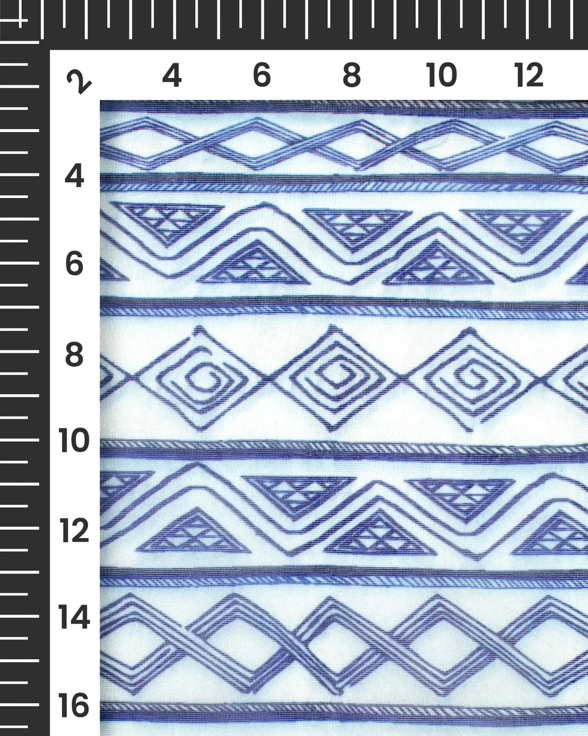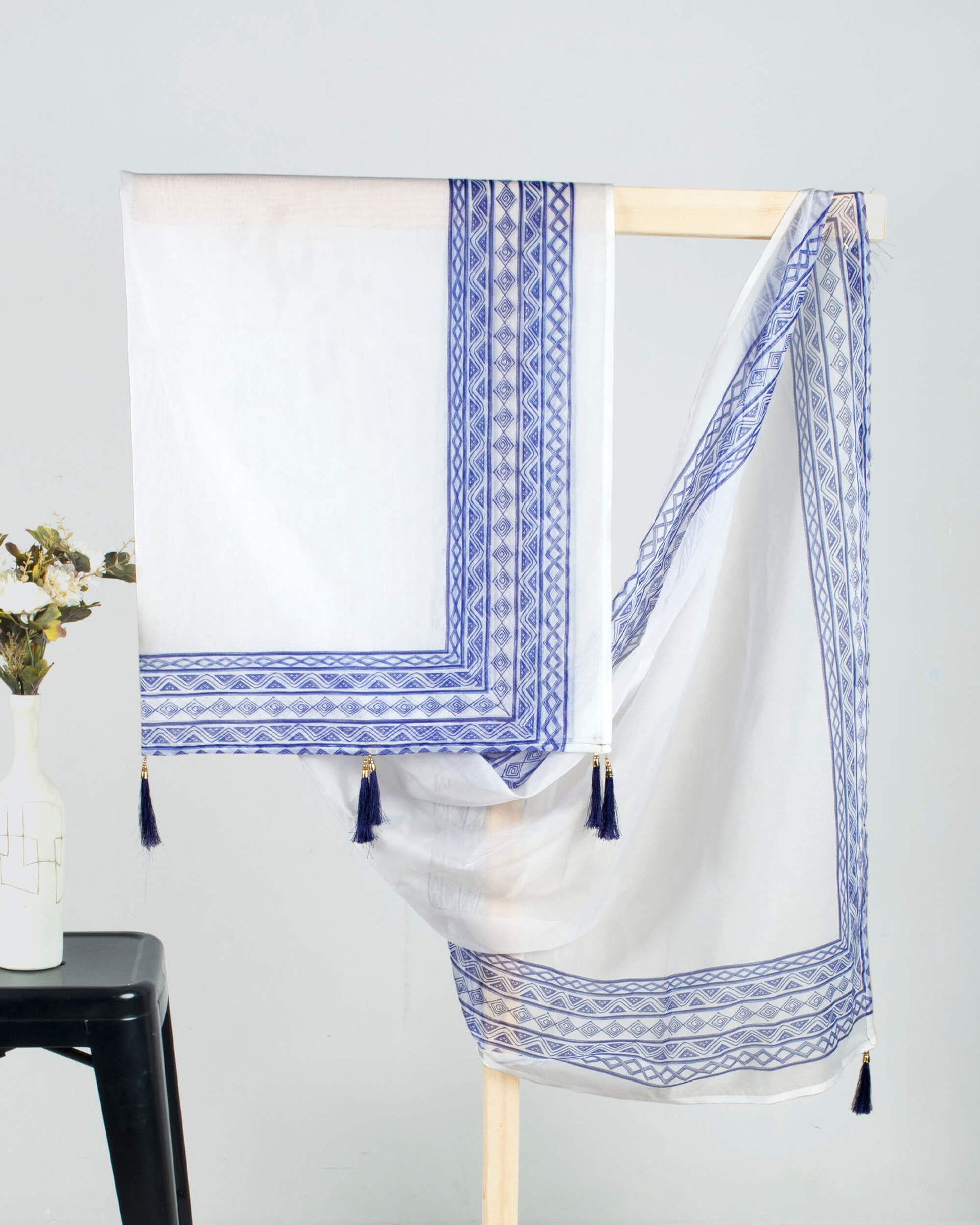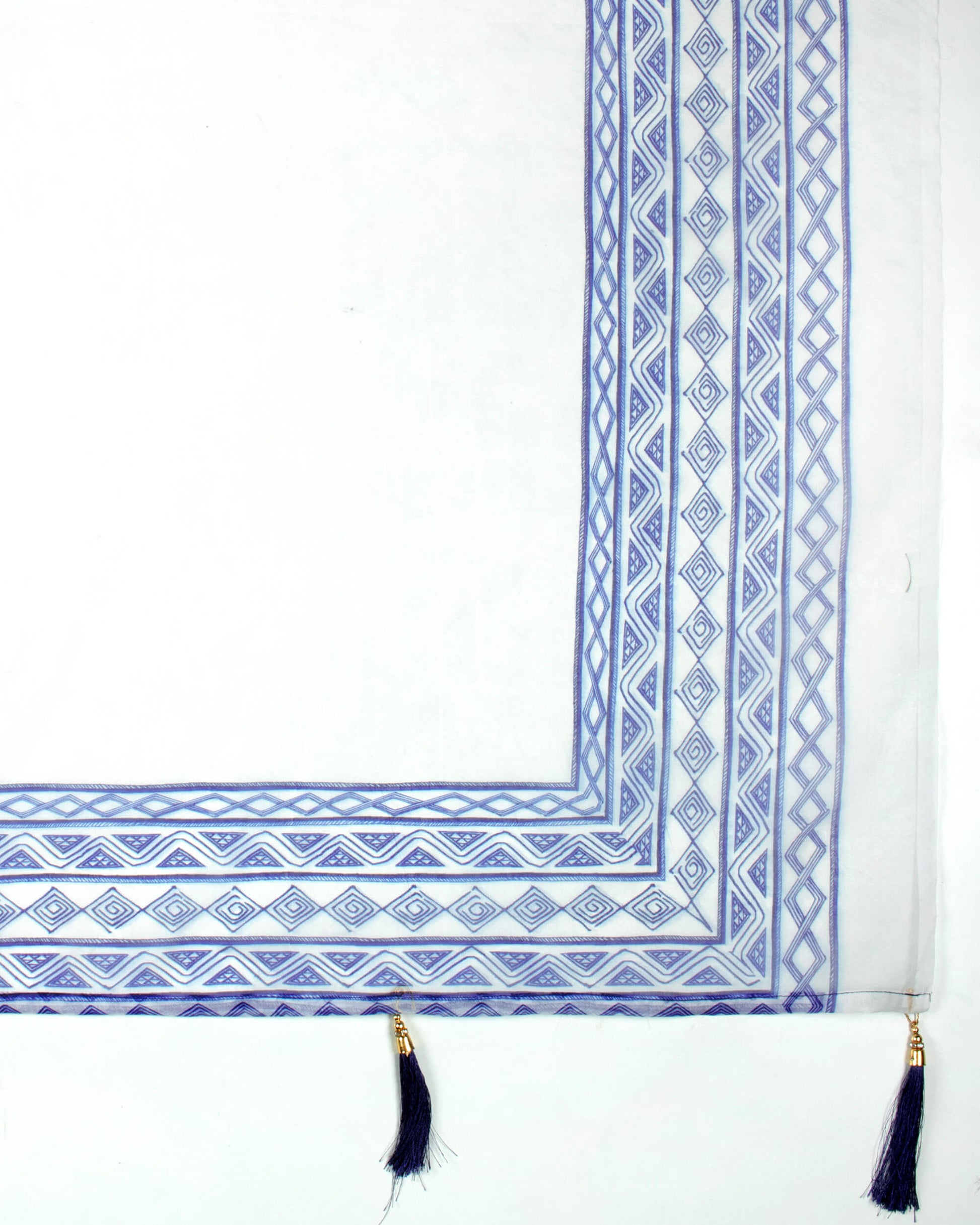 White And Blue Digital Print Traditional Organza Dupatta With Tassles