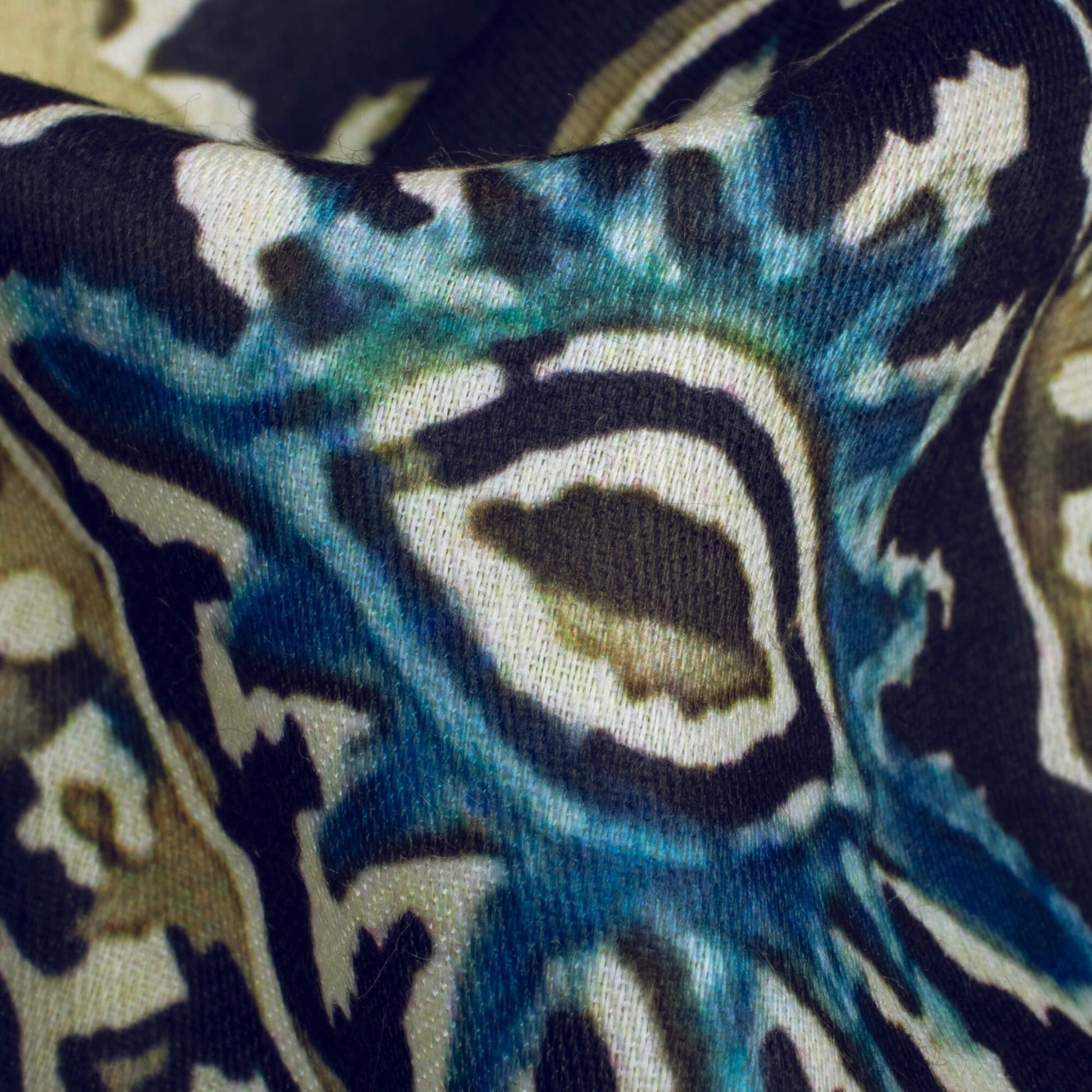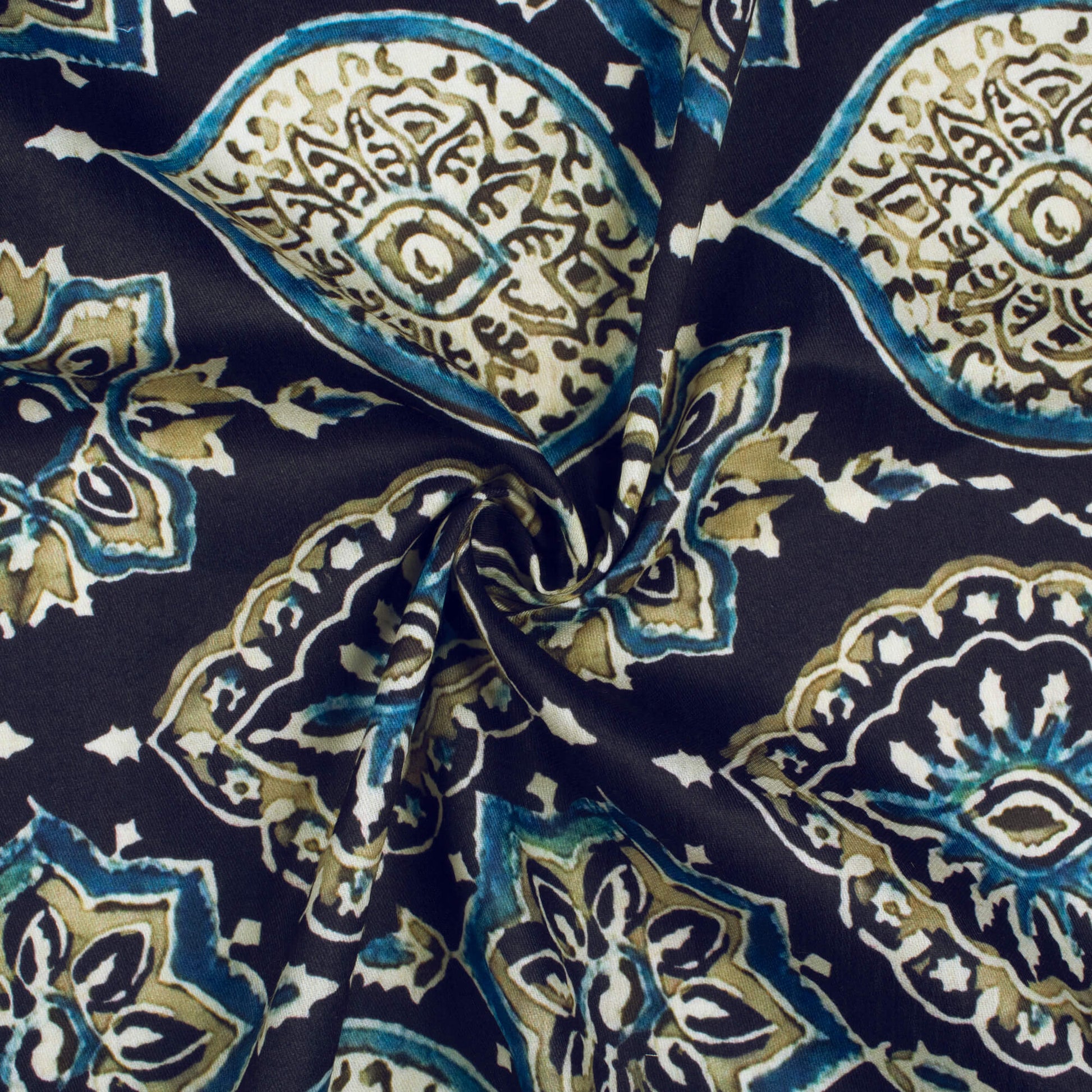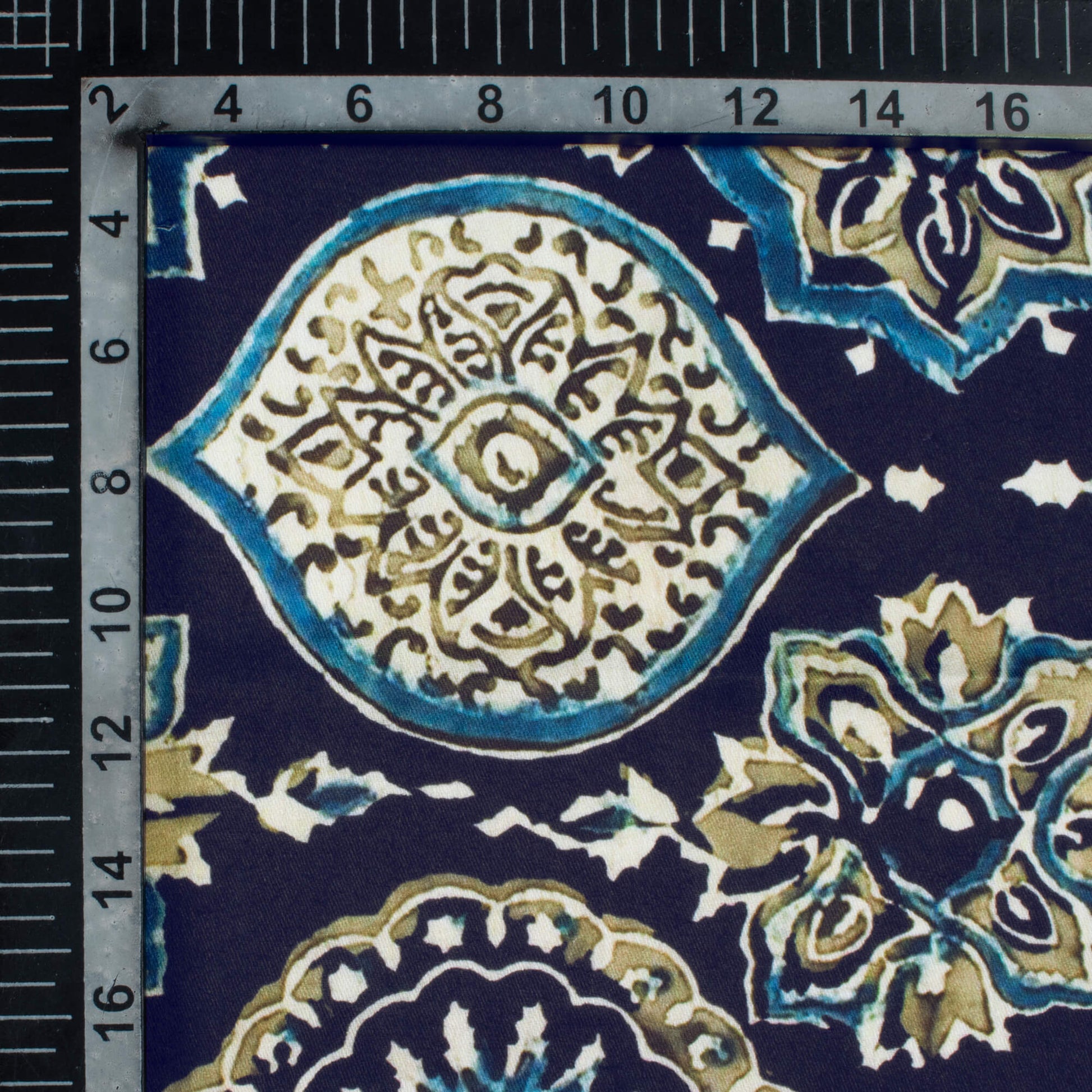Navy Blue And Beige Ethnic Pattern Digital Print Poly Glazed Cotton Fabric
