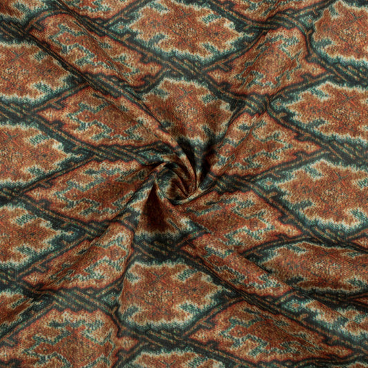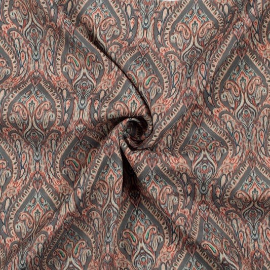 Slate Grey And Umber Brown Ethnic Pattern Digital Print Viscose Chanderi Fabric Slate Grey And Umber Brown Ethnic Pattern Digital Print Viscose Chanderi Fabric