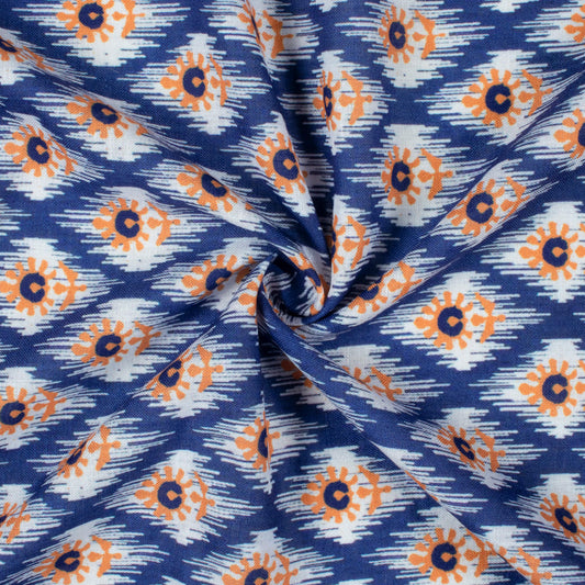 Space Blue And Orange Ethnic Pattern Digital Print Linen Textured Fabric (Width 56 Inches) Space Blue And Orange Ethnic Pattern Digital Print Linen Textured Fabric (Width 56 Inches)
