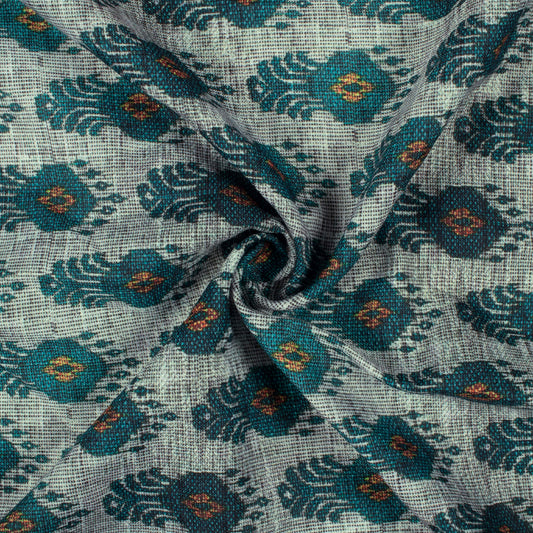 Steel Grey And Pine Green Ethnic Pattern Digital Print Linen Textured Fabric (Width 56 Inches) Steel Grey And Pine Green Ethnic Pattern Digital Print Linen Textured Fabric (Width 56 Inches)