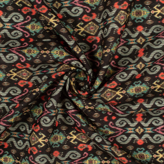 Black And Peach Ethnic Pattern Digital Print Linen Textured Fabric (Width 56 Inches) Black And Peach Ethnic Pattern Digital Print Linen Textured Fabric (Width 56 Inches)