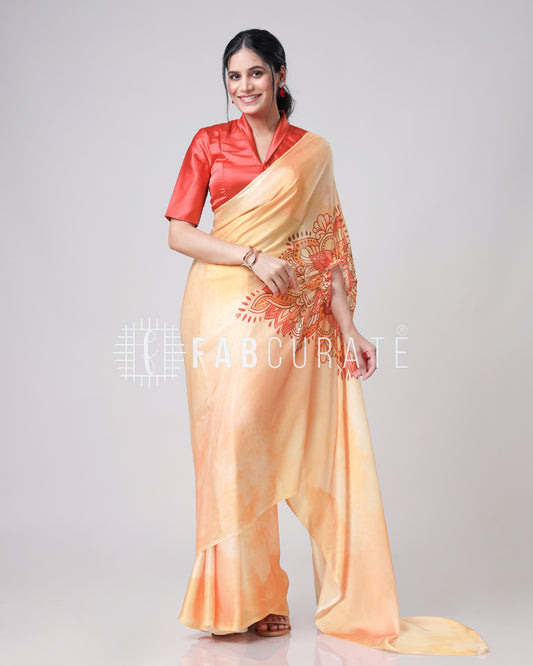 Beautiful Ombre Lotus Mandalaa Print Freehand Saree Beautiful Ombre Lotus Mandalaa Print Freehand Saree