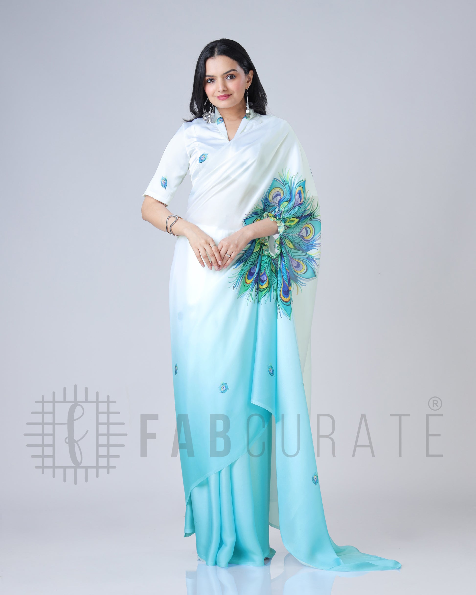 Yes, you read that right! This saree features a cleverly designed hole in the pallu. This innovative feature allows you to drape and secure your pallu without the need for constant adjustments, freeing your hands for other tasks. Enjoy the grace of a perfectly draped saree, completely handsfree! Experience the future of saree draping with the Handsfree Mandala Saree. It's not just a garment; it's a game-changer.