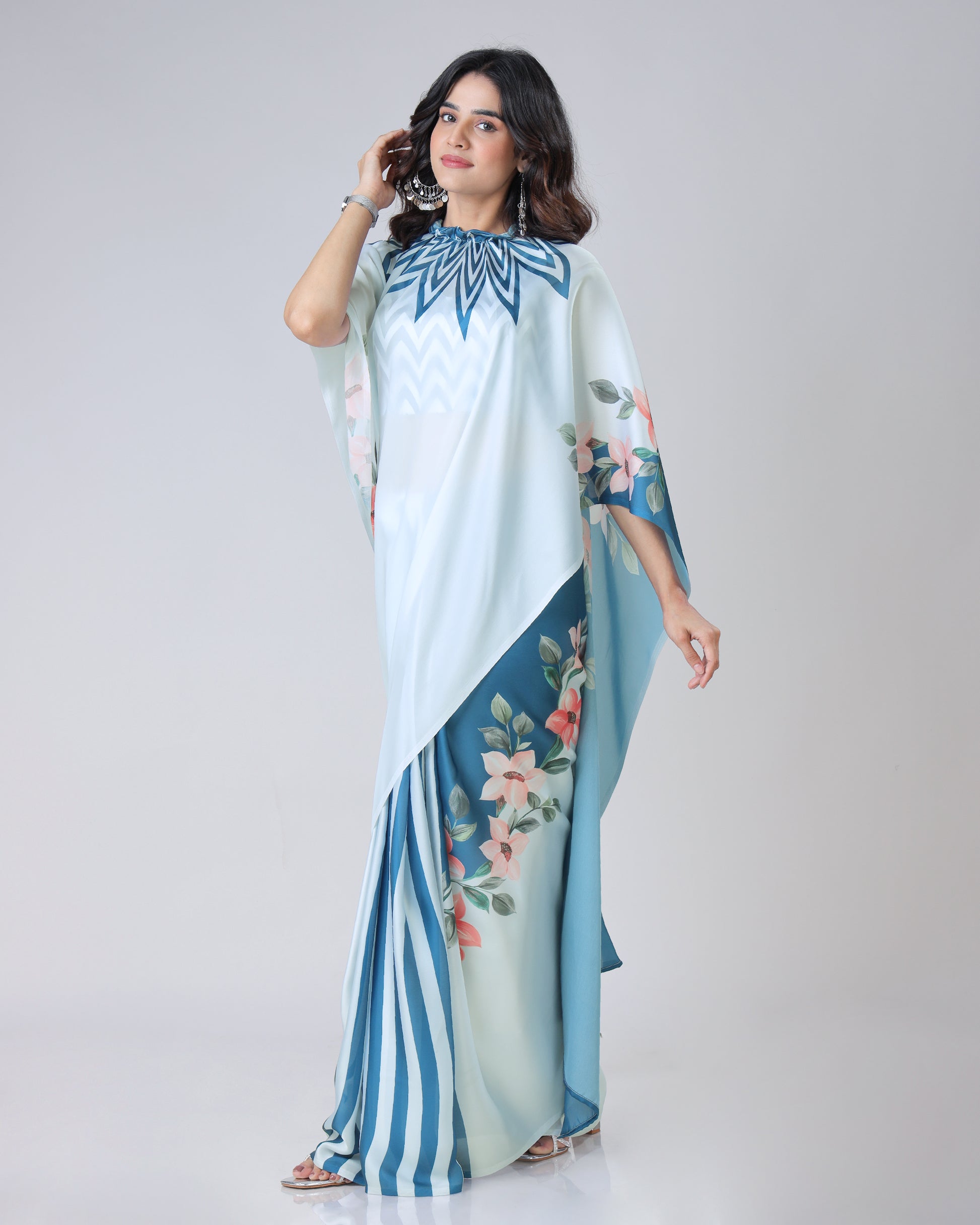 Yes, you read that right! This saree features a cleverly designed hole in the pallu. This innovative feature allows you to drape and secure your pallu without the need for constant adjustments, freeing your hands for other tasks. Enjoy the grace of a perfectly draped saree, completely handsfree! Experience the future of saree draping with the Handsfree Mandala Saree. It's not just a garment; it's a game-changer.