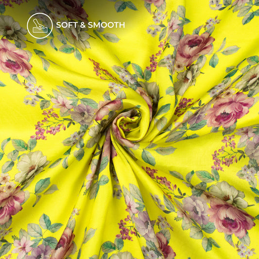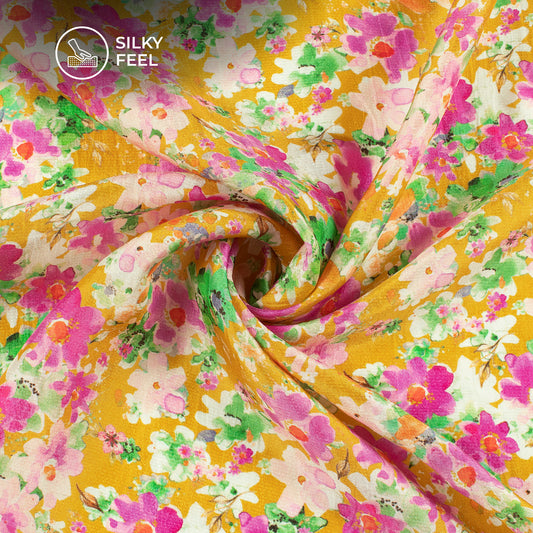 Yellow Floral Digital Print Viscose Gaji Silk Fabric Yellow Floral Digital Print Viscose Gaji Silk Fabric