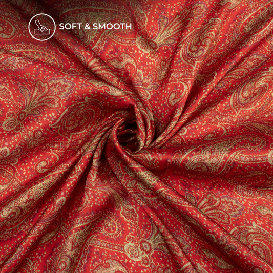 Cardinal Red Paisley Digital Print Viscose Gaji Silk Fabric Cardinal Red Paisley Digital Print Viscose Gaji Silk Fabric