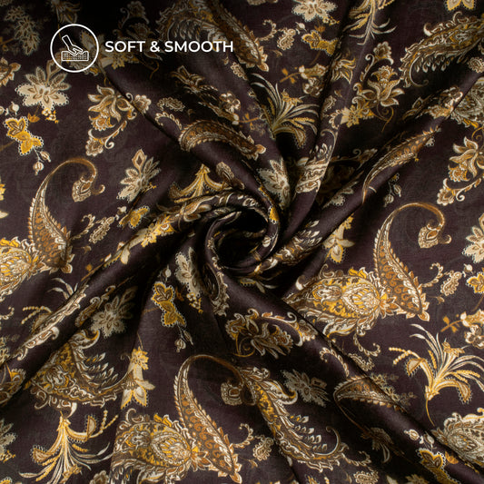 Brown Paisley Digital Print Viscose Gaji Silk Fabric Brown Paisley Digital Print Viscose Gaji Silk Fabric