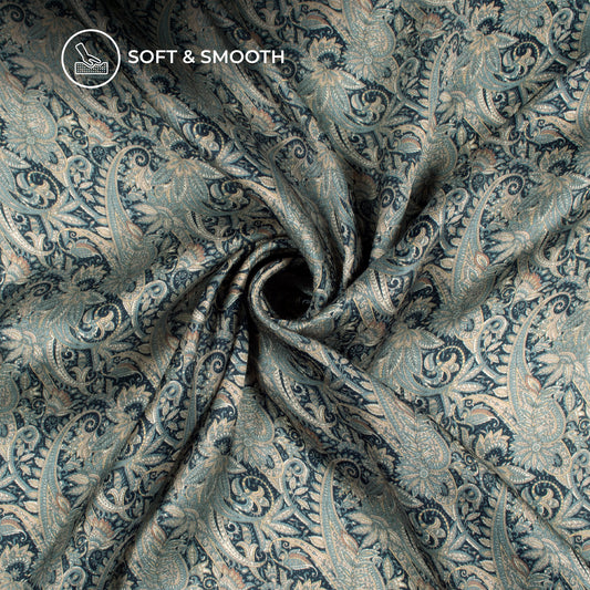 Squid Ink Paisley Digital Print Viscose Gaji Silk Fabric Squid Ink Paisley Digital Print Viscose Gaji Silk Fabric