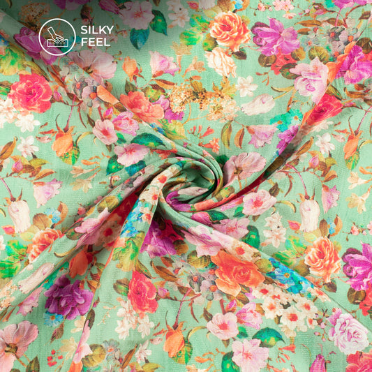 Eternal Blooms: Floral Digital Print Viscose Gaji Silk Fabric Eternal Blooms: Floral Digital Print Viscose Gaji Silk Fabric