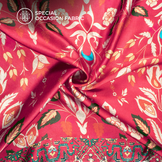 Cherry Red Ethnic-Floral Digital Print Viscose Gaji Silk Fabric Cherry Red Ethnic-Floral Digital Print Viscose Gaji Silk Fabric