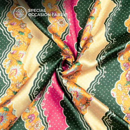 Traditional Floral Bandhanii Digital Print Viscose Gaji Silk Fabric Traditional Floral Bandhanii Digital Print Viscose Gaji Silk Fabric