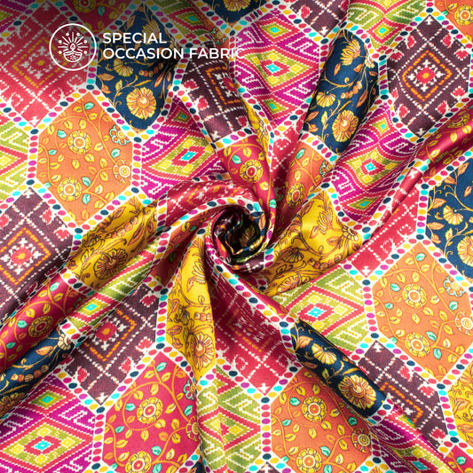 Traditional Patolaa Digital Print Viscose Gaji Silk Fabric Traditional Patolaa Digital Print Viscose Gaji Silk Fabric