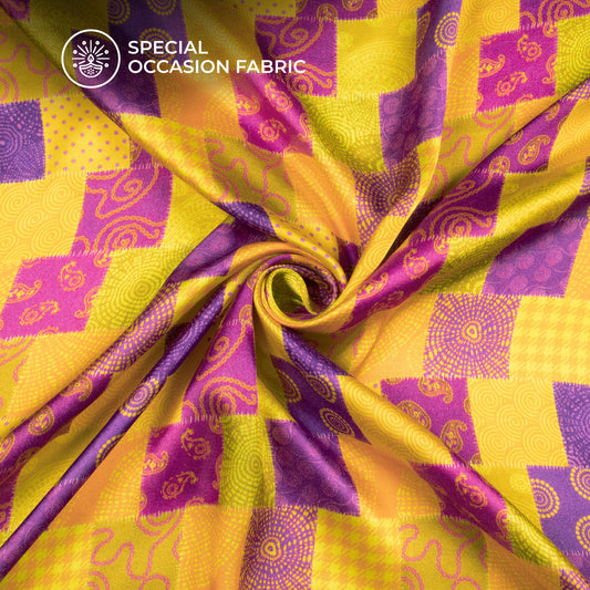 Goldenrod Yellow Geometrical Digital Print Viscose Gaji Silk Fabric Goldenrod Yellow Geometrical Digital Print Viscose Gaji Silk Fabric