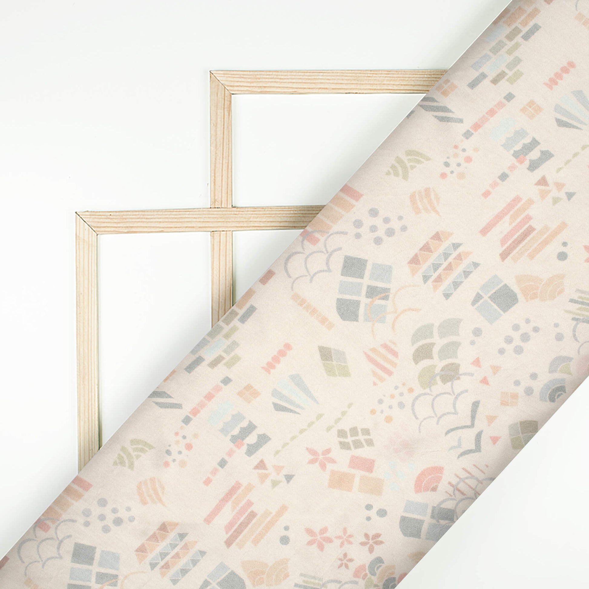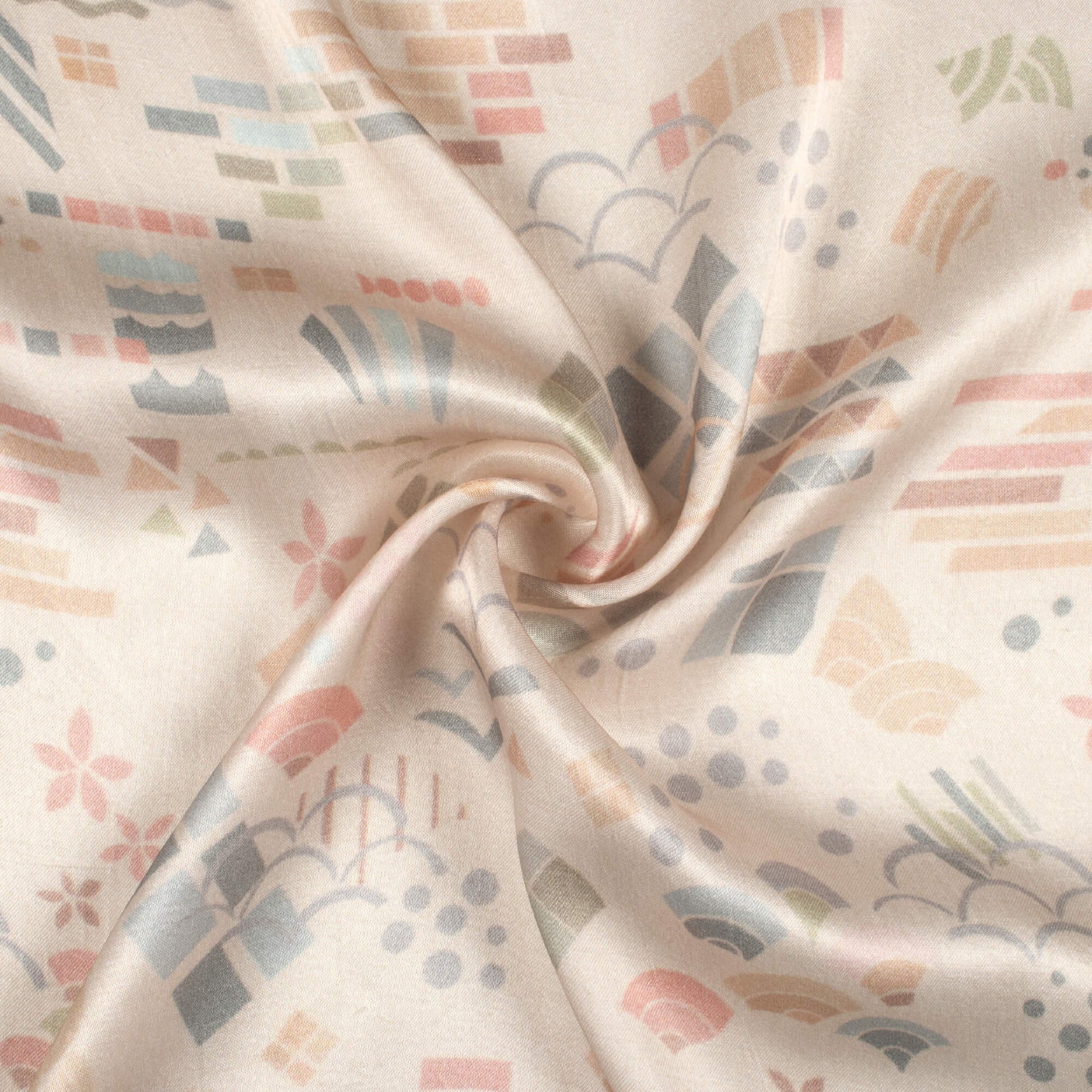 Oat Beige And Grey Quirky Pattern Digital Print Viscose Gaji Silk Fabric
