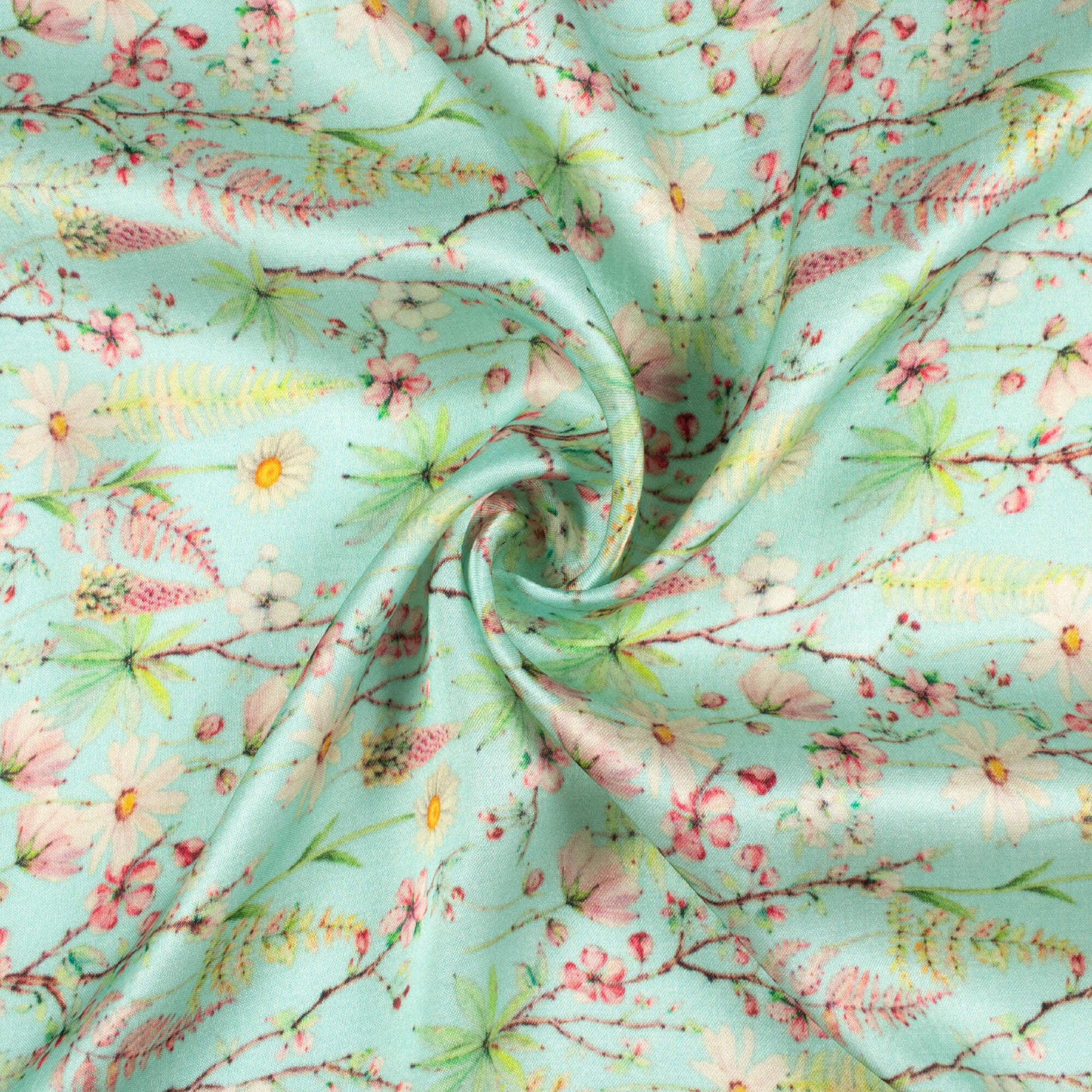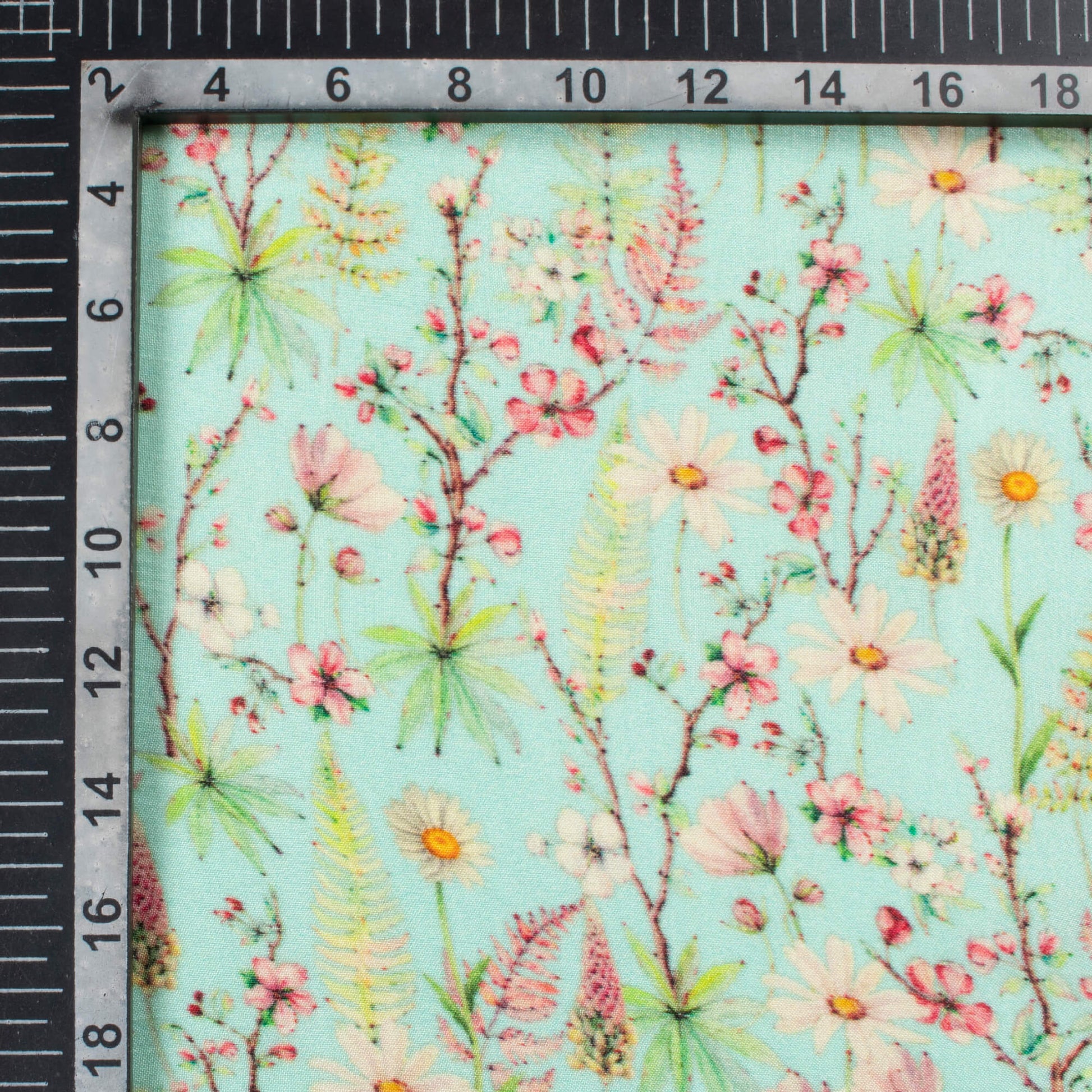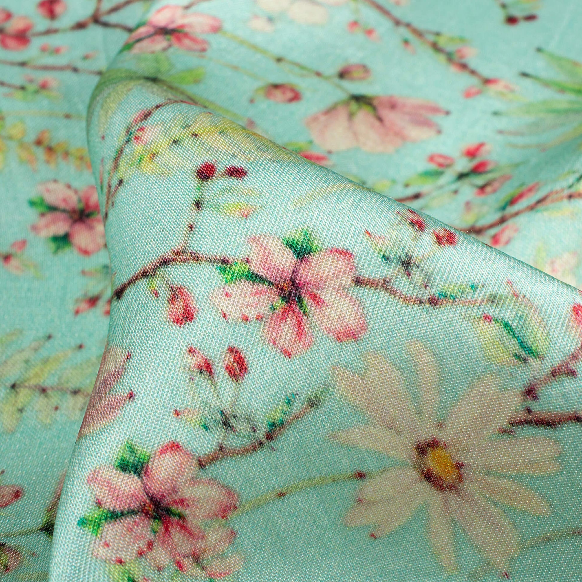 Blizzard Blue And Pink Floral Pattern Digital Print Viscose Gaji Silk Fabric