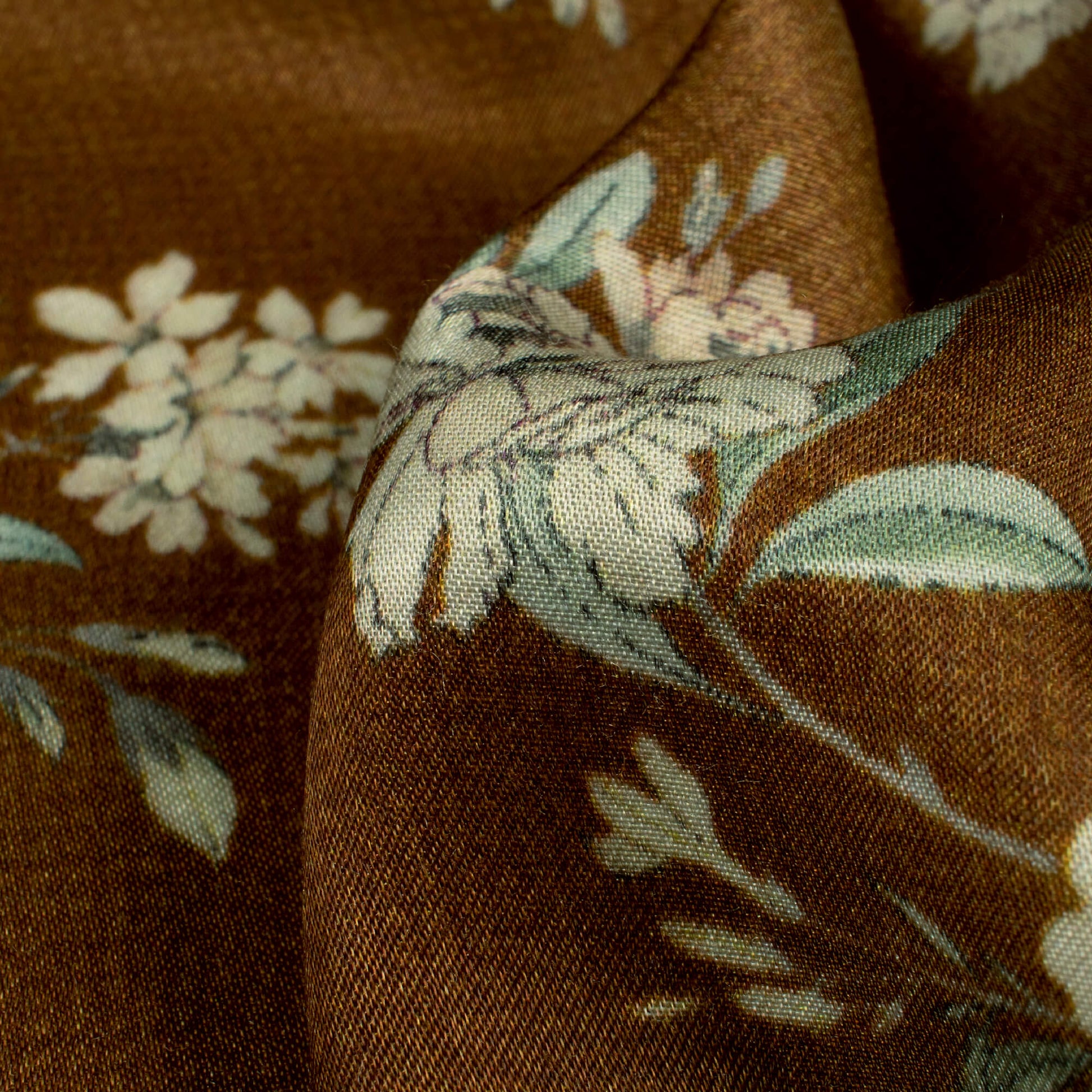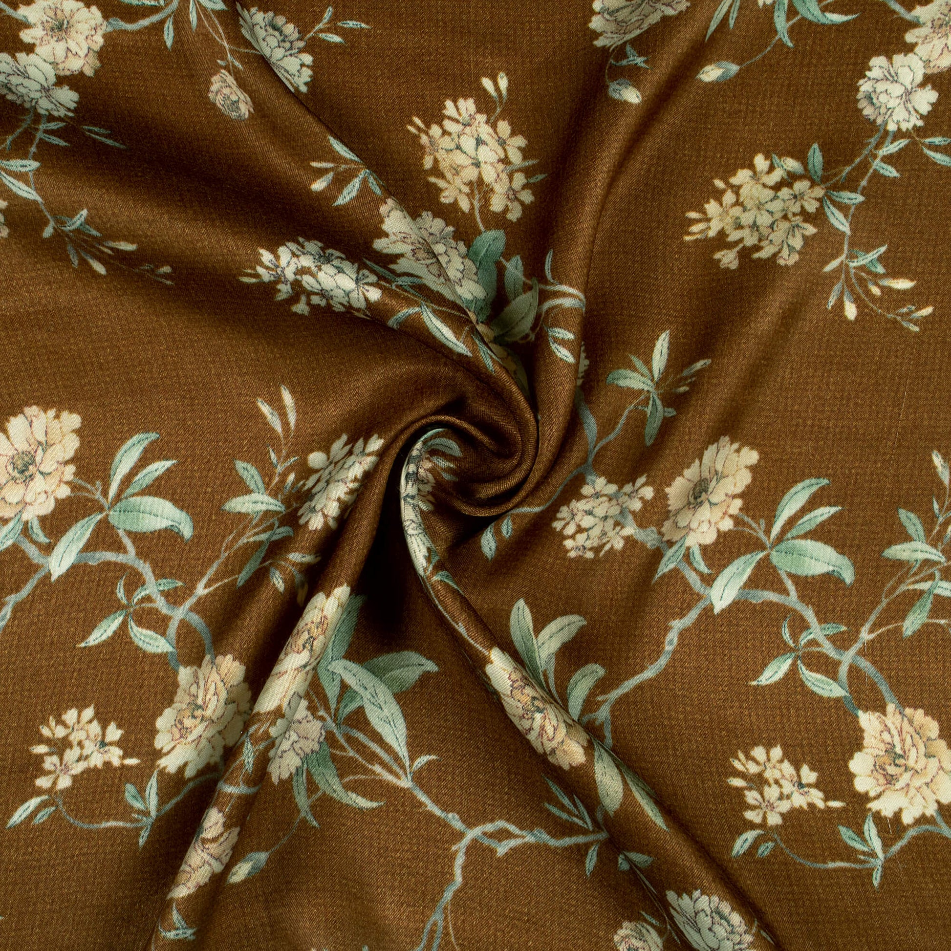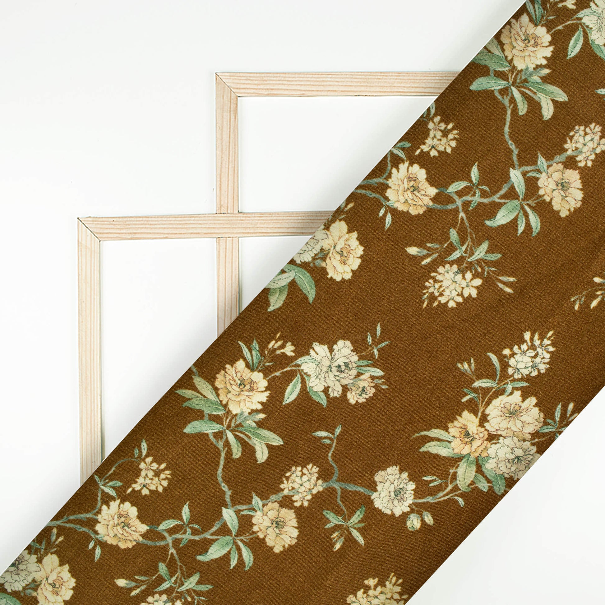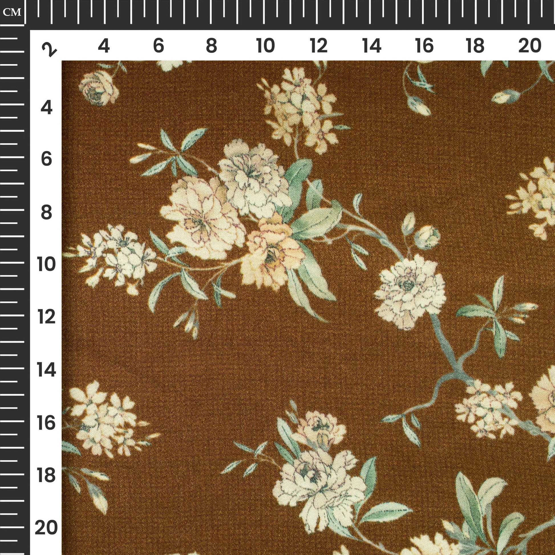 Coffee Brown And Cream Floral Digital Print Viscose Gaji Silk Fabric