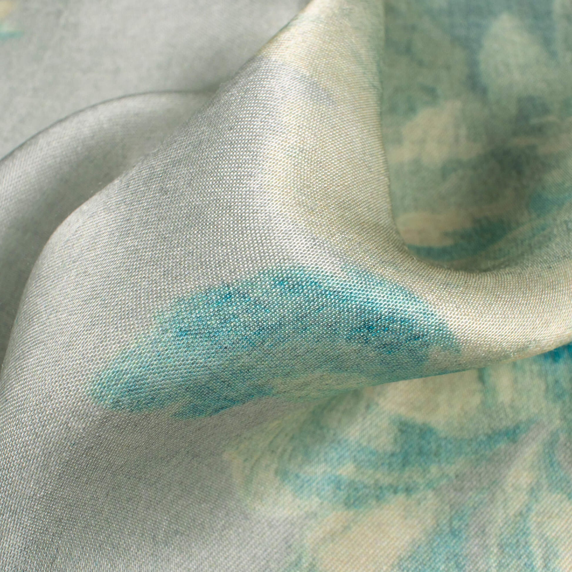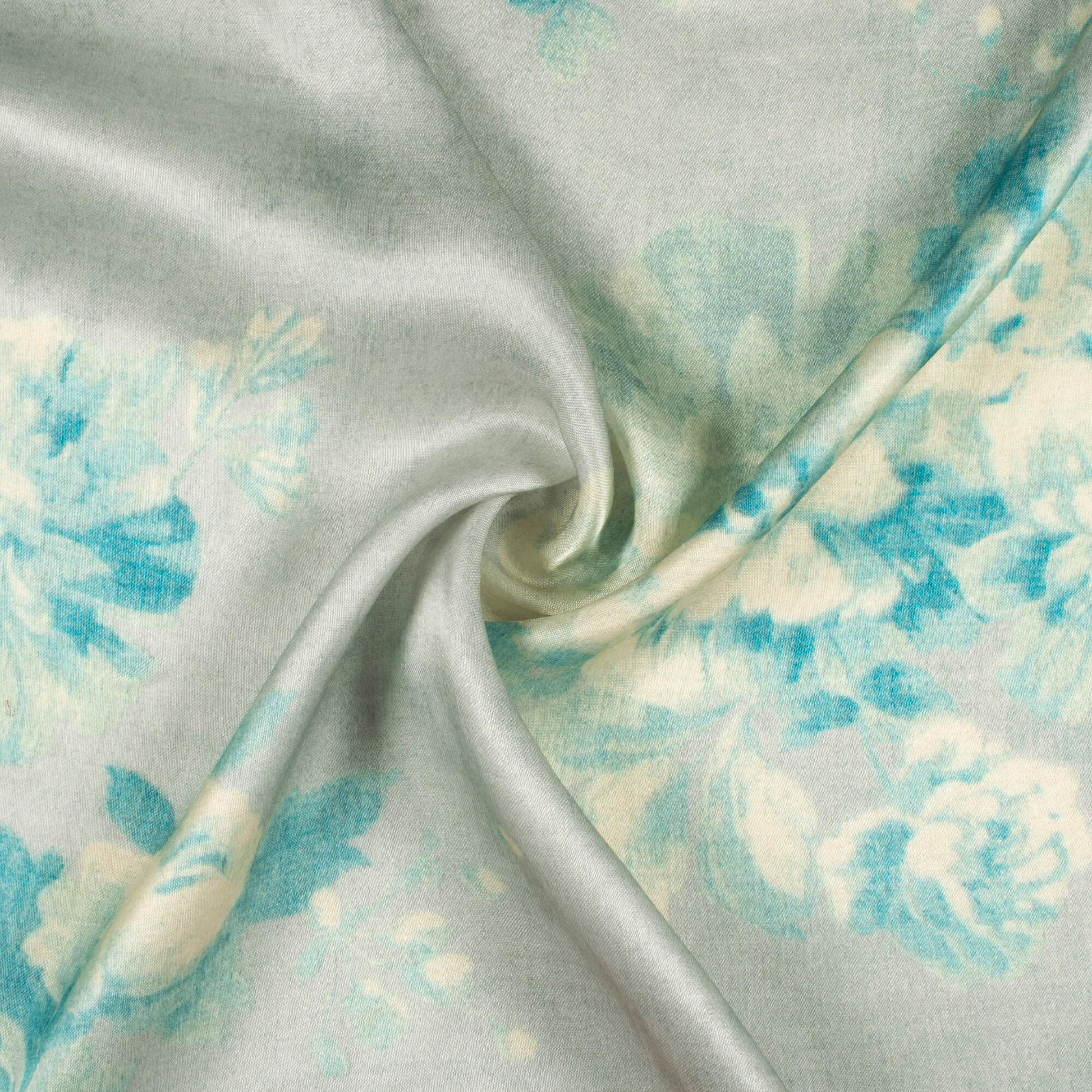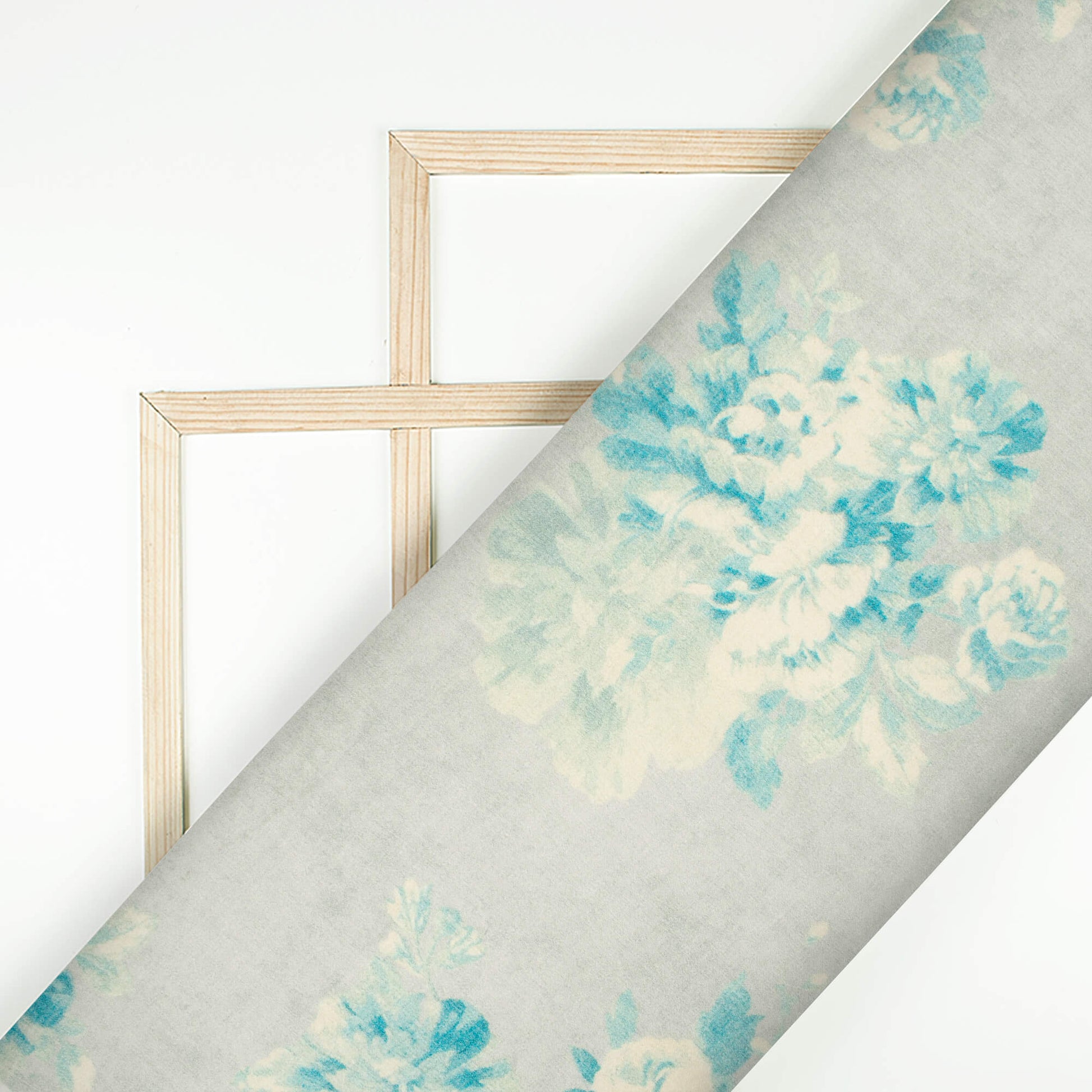 Dolphin Grey And Blue Floral Pattern Digital Print Viscose Gaji Silk Fabric