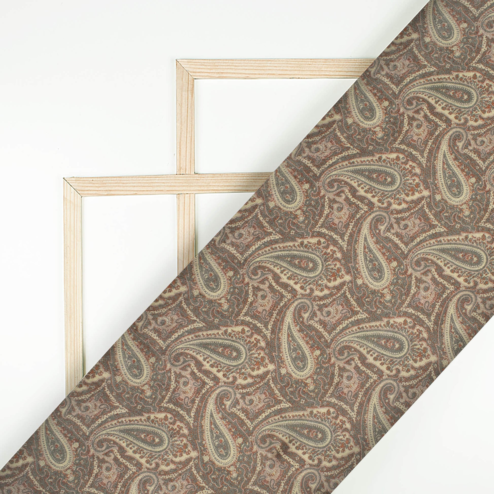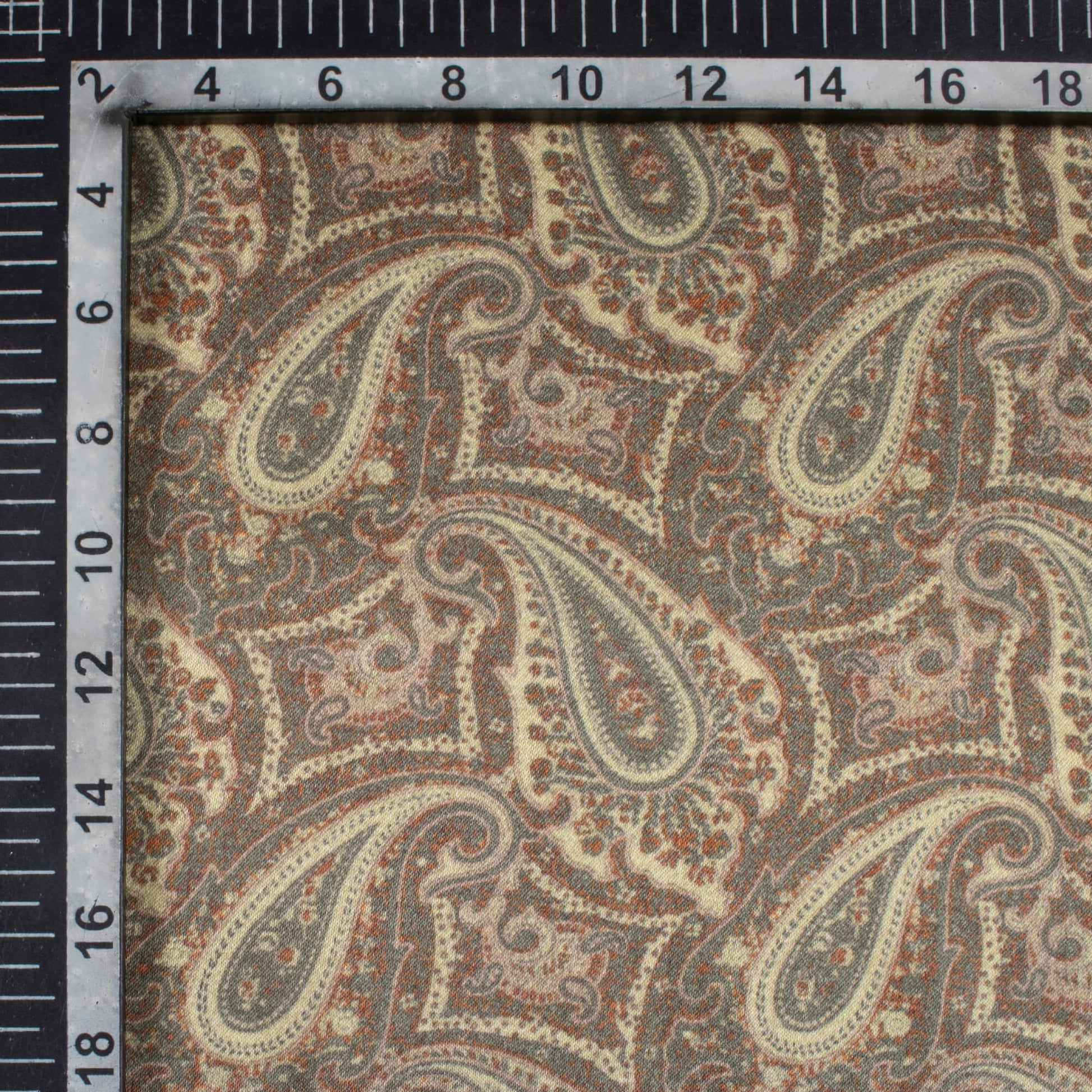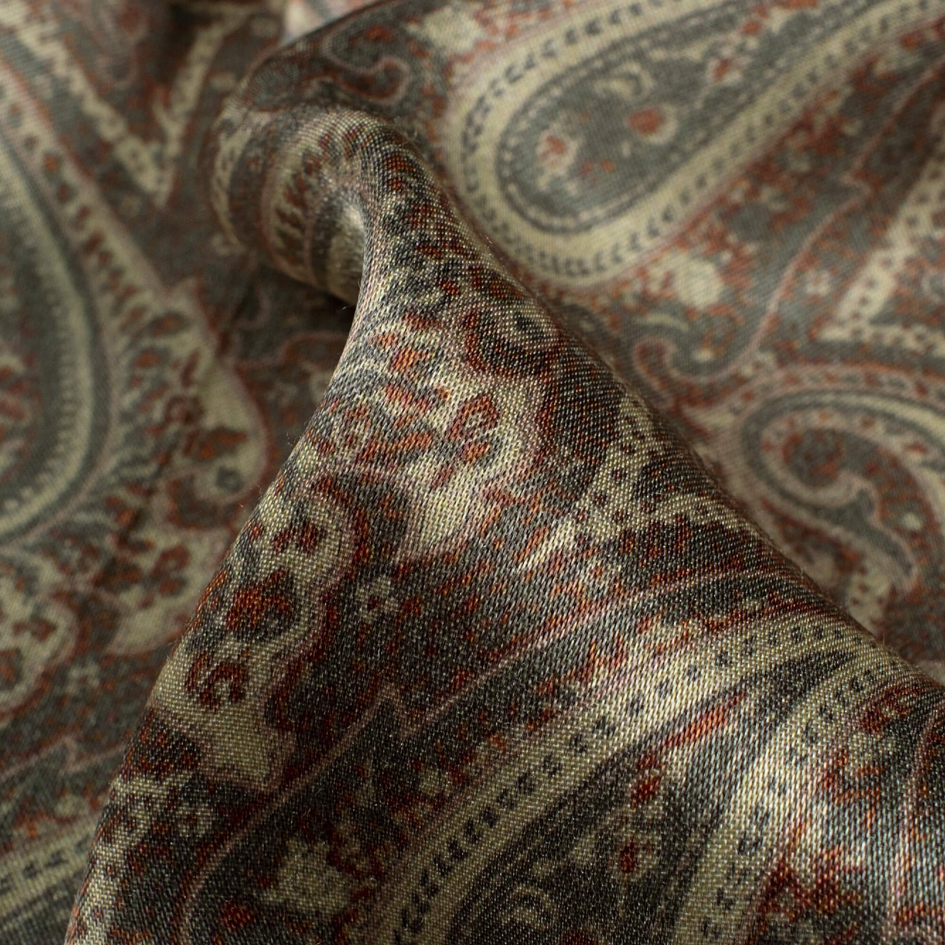 Fern Green And Purple Paisley Pattern Digital Print Viscose Gaji Silk Fabric
