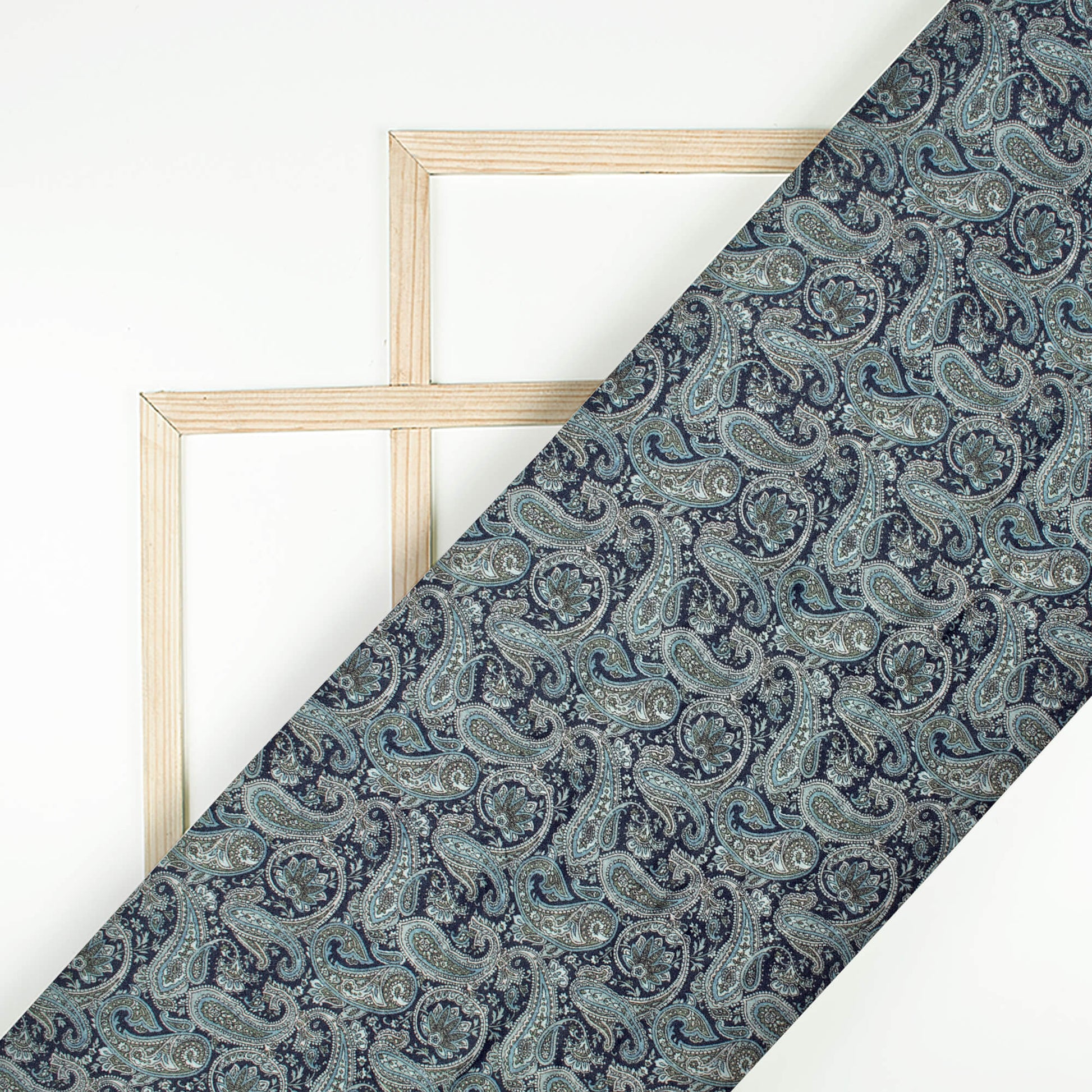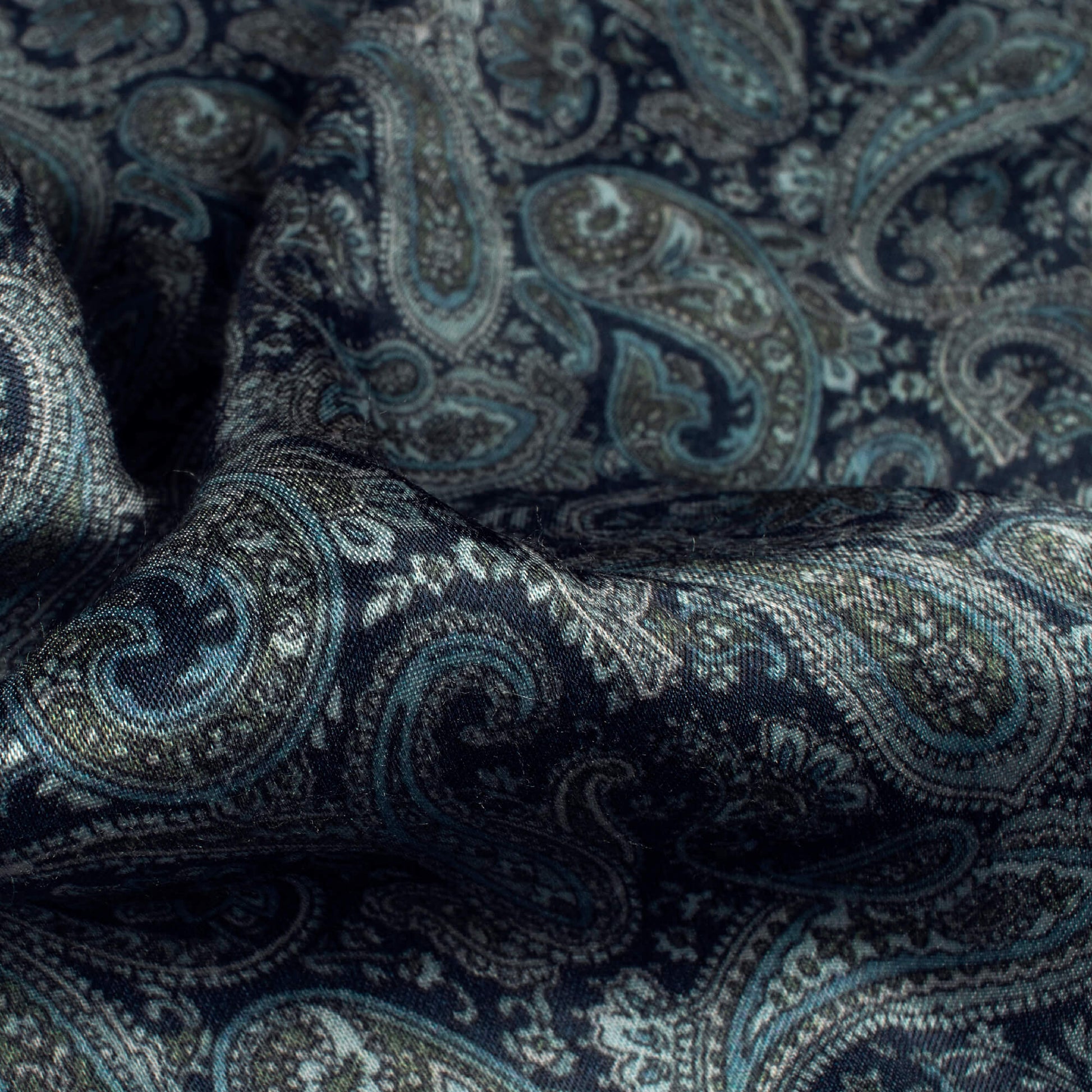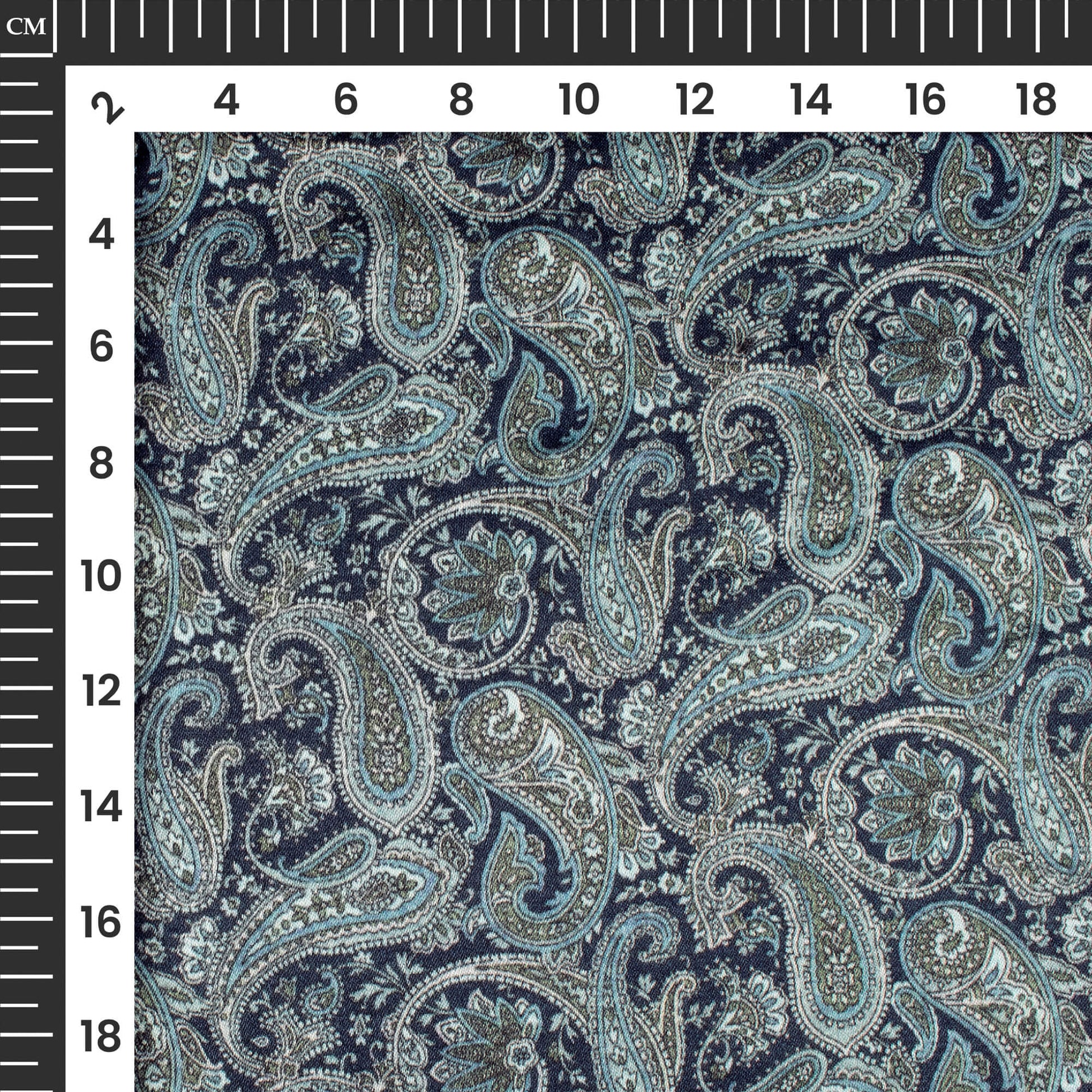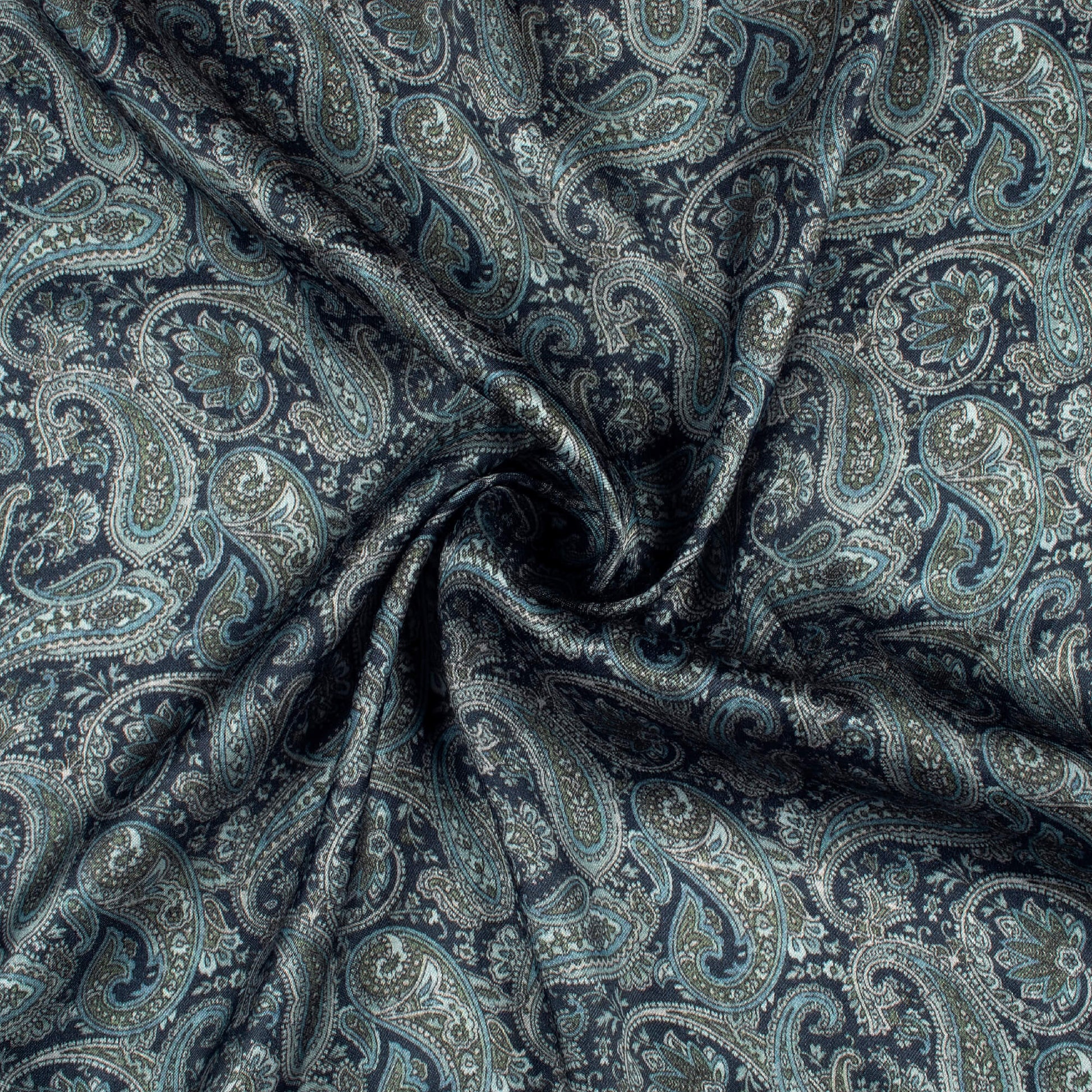 Navy Blue And Green Paisely Digital Print Viscose Gaji Silk Fabric
