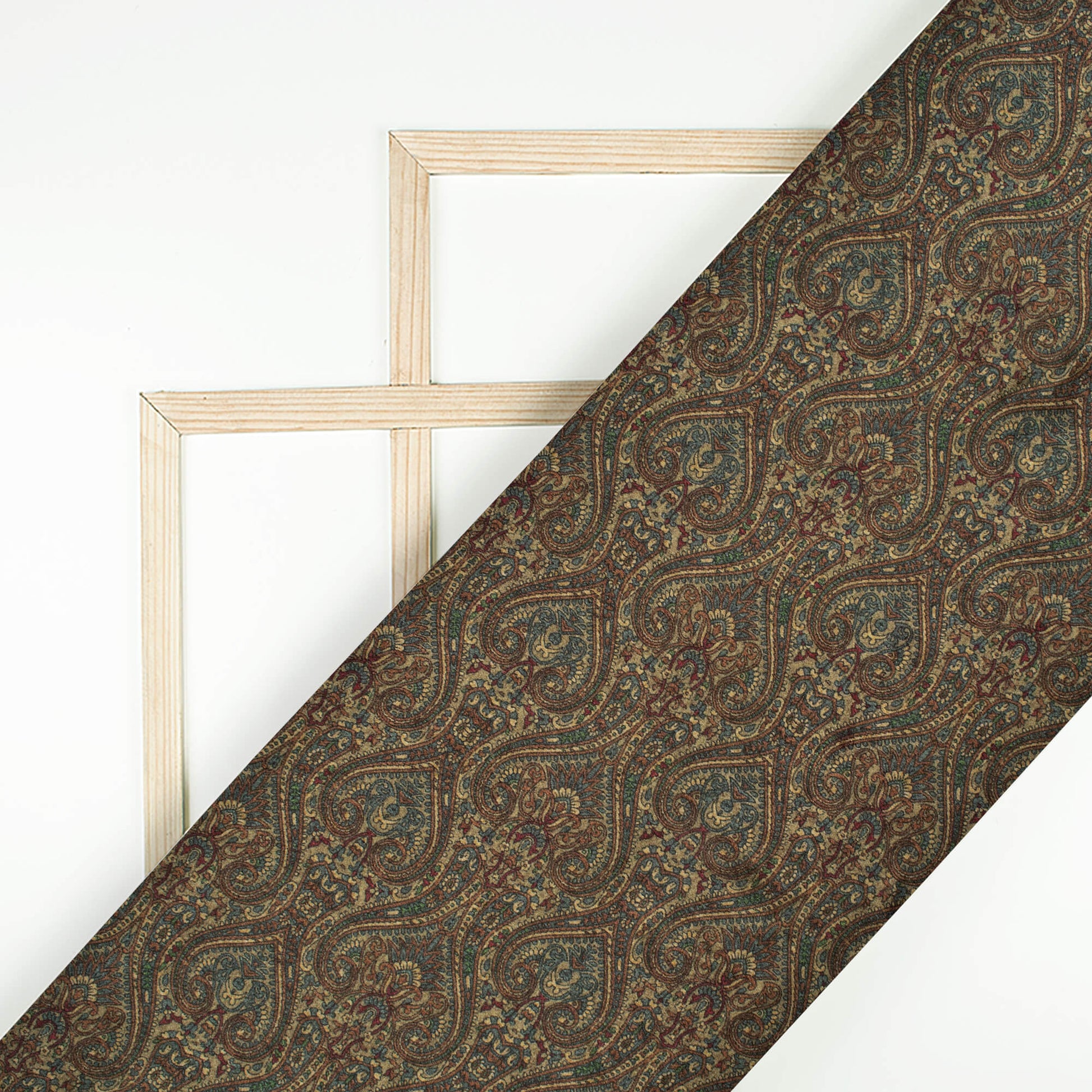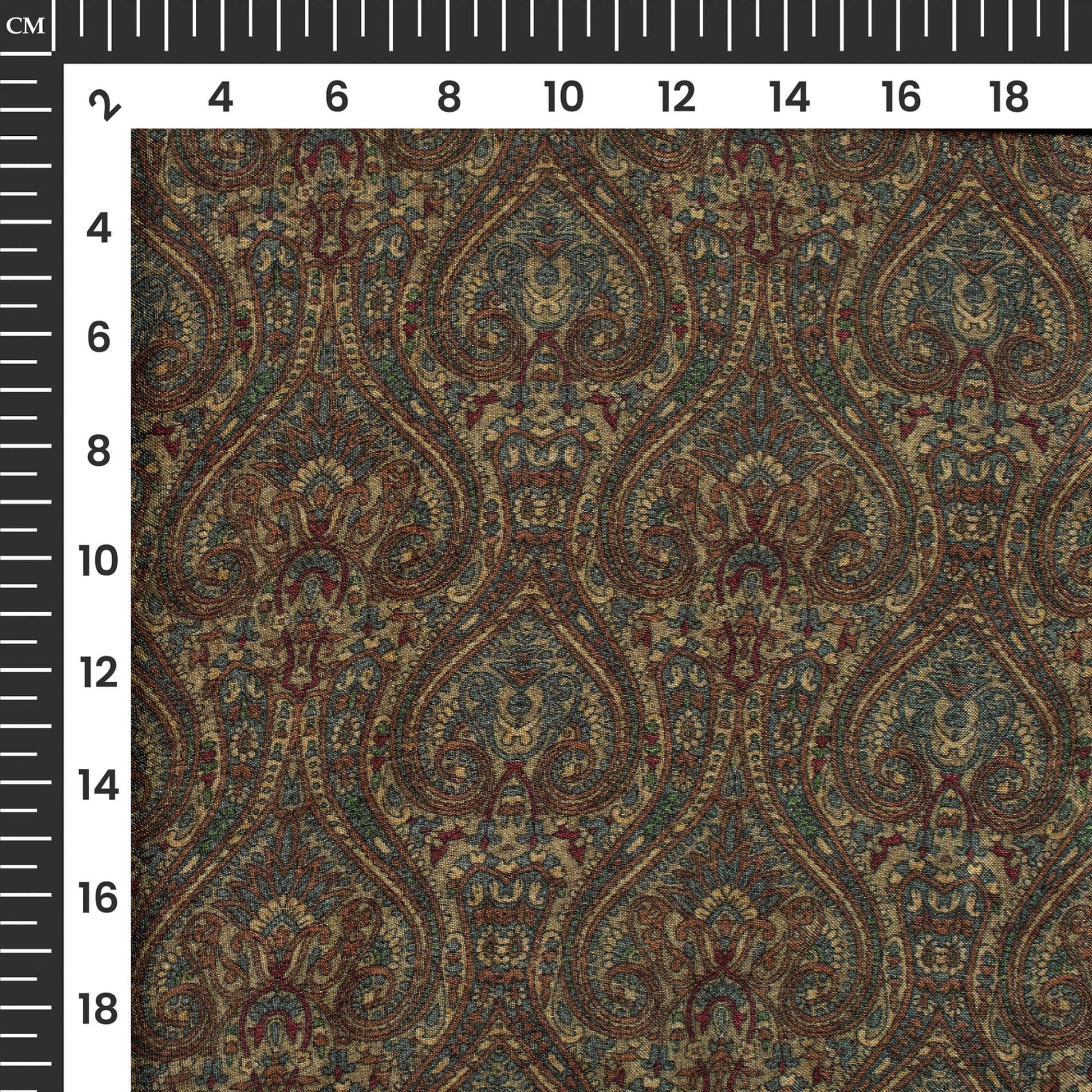 Peanut Brown And Blue Ethnic Digital Print Viscose Gaji Silk Fabric