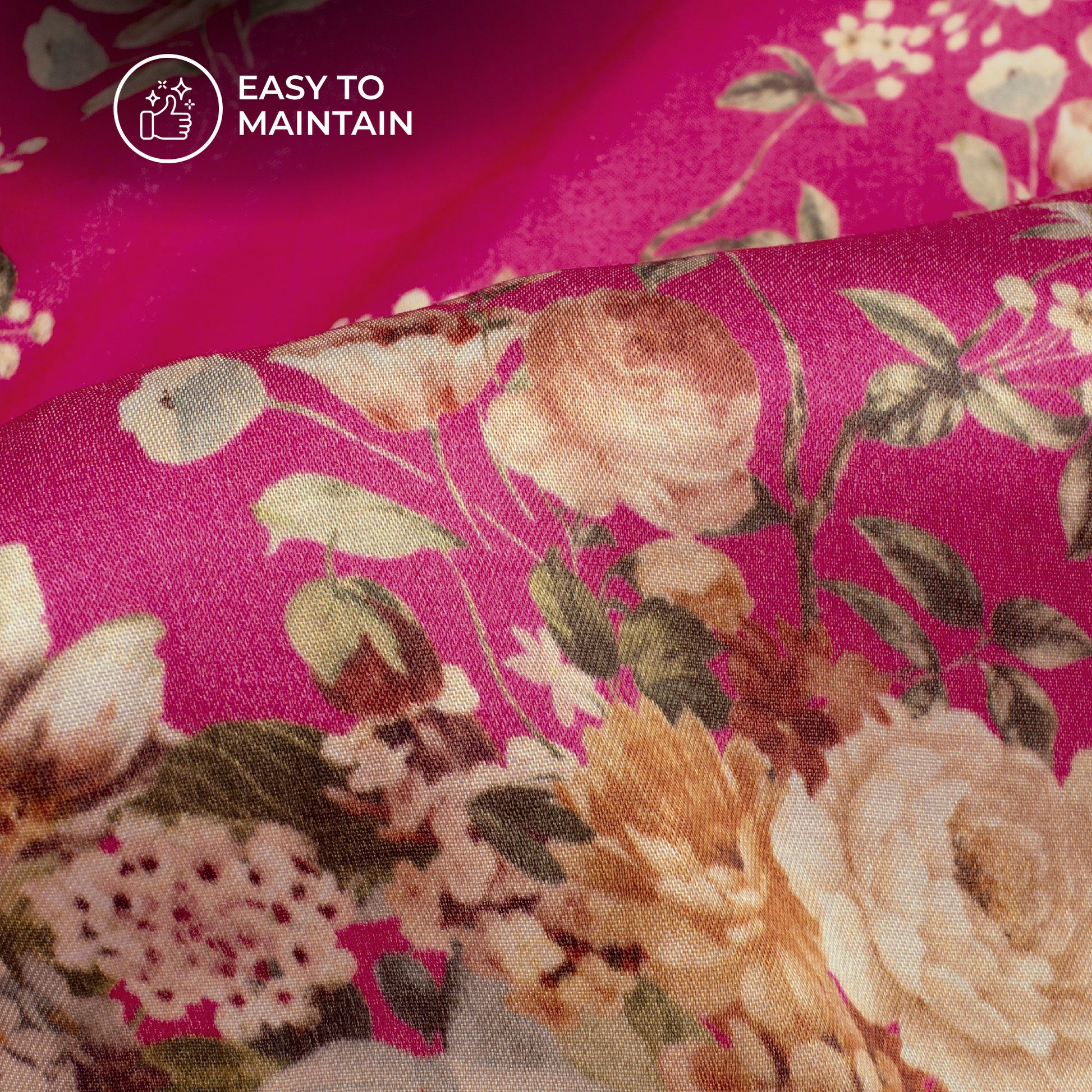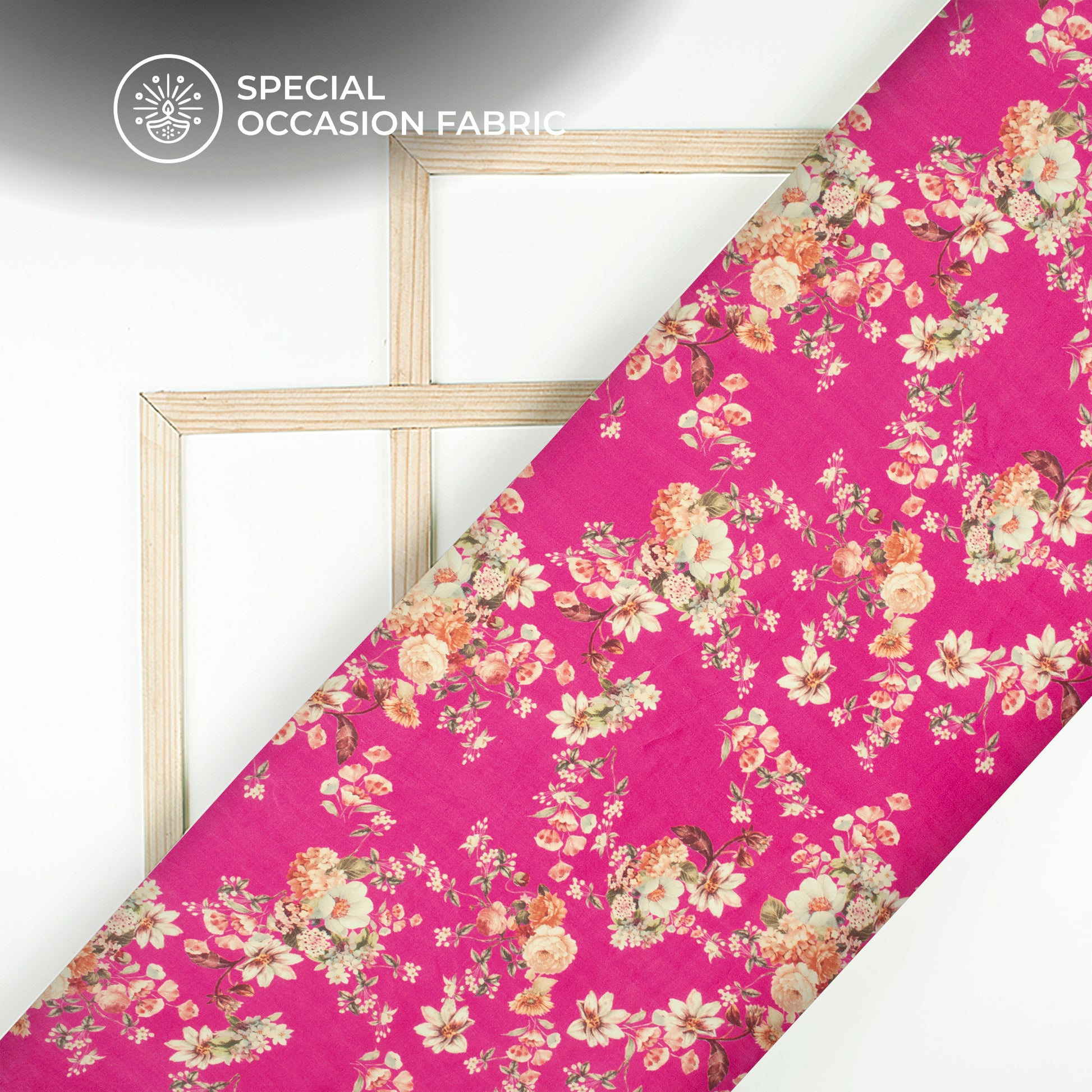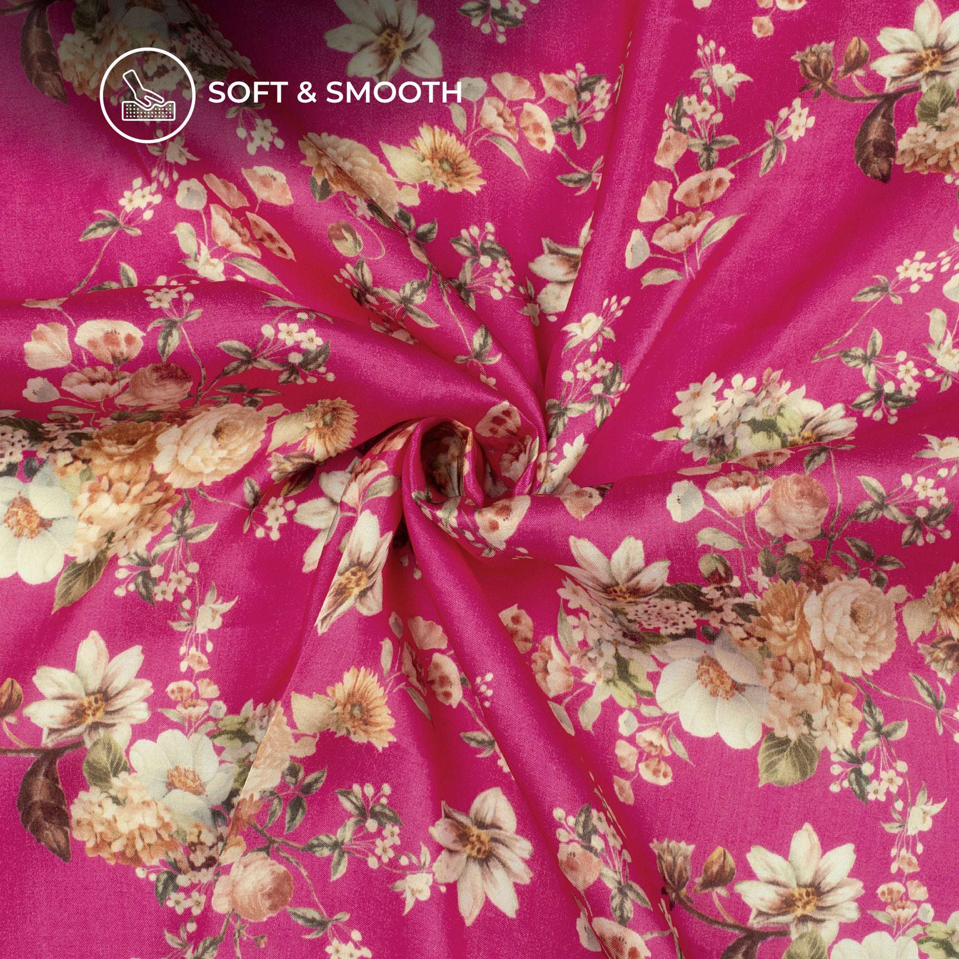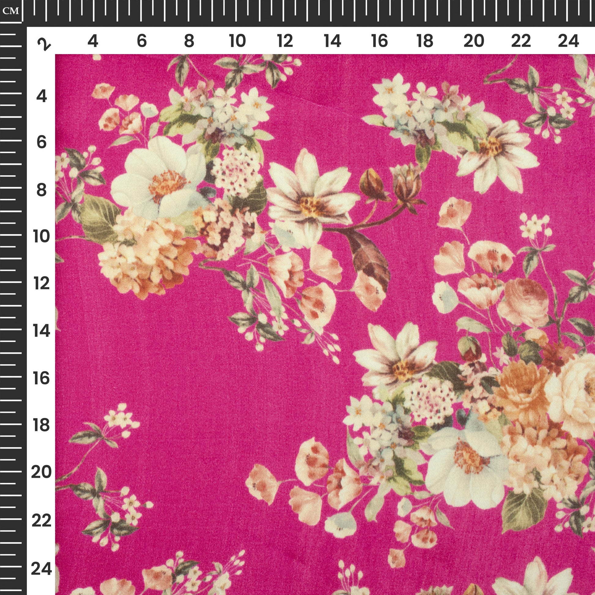 Pink Floral Digital Print Viscose Gaji Silk Fabric