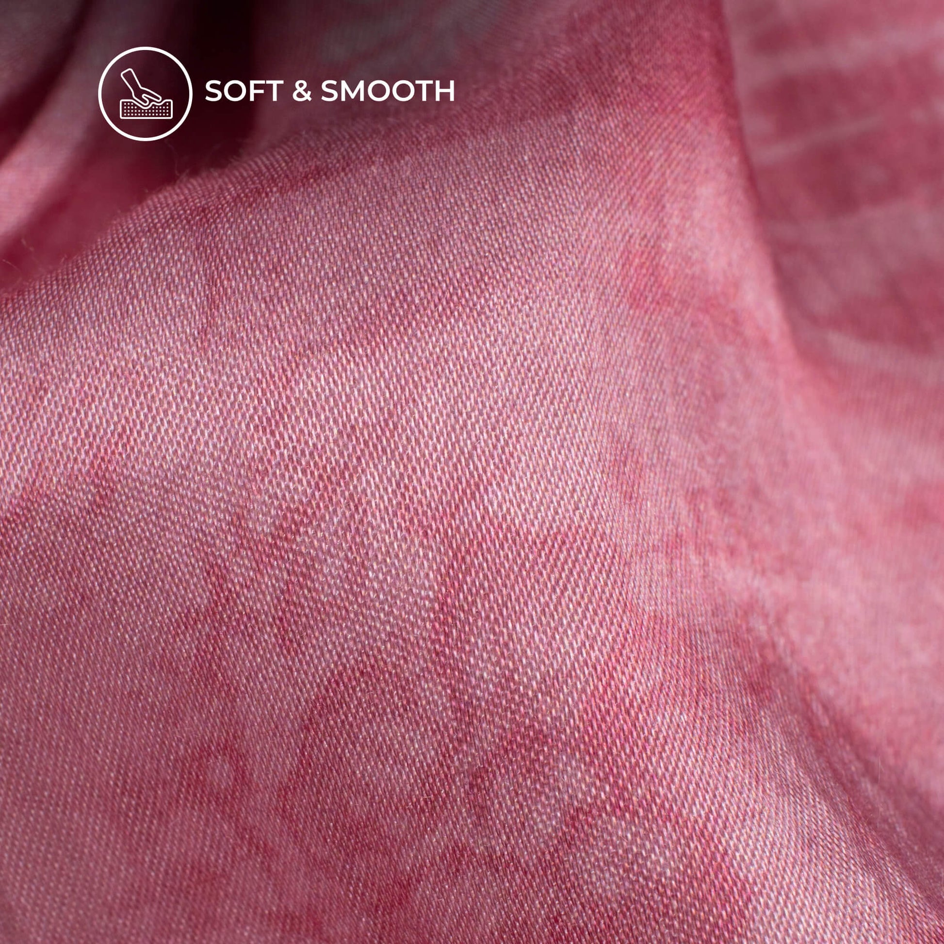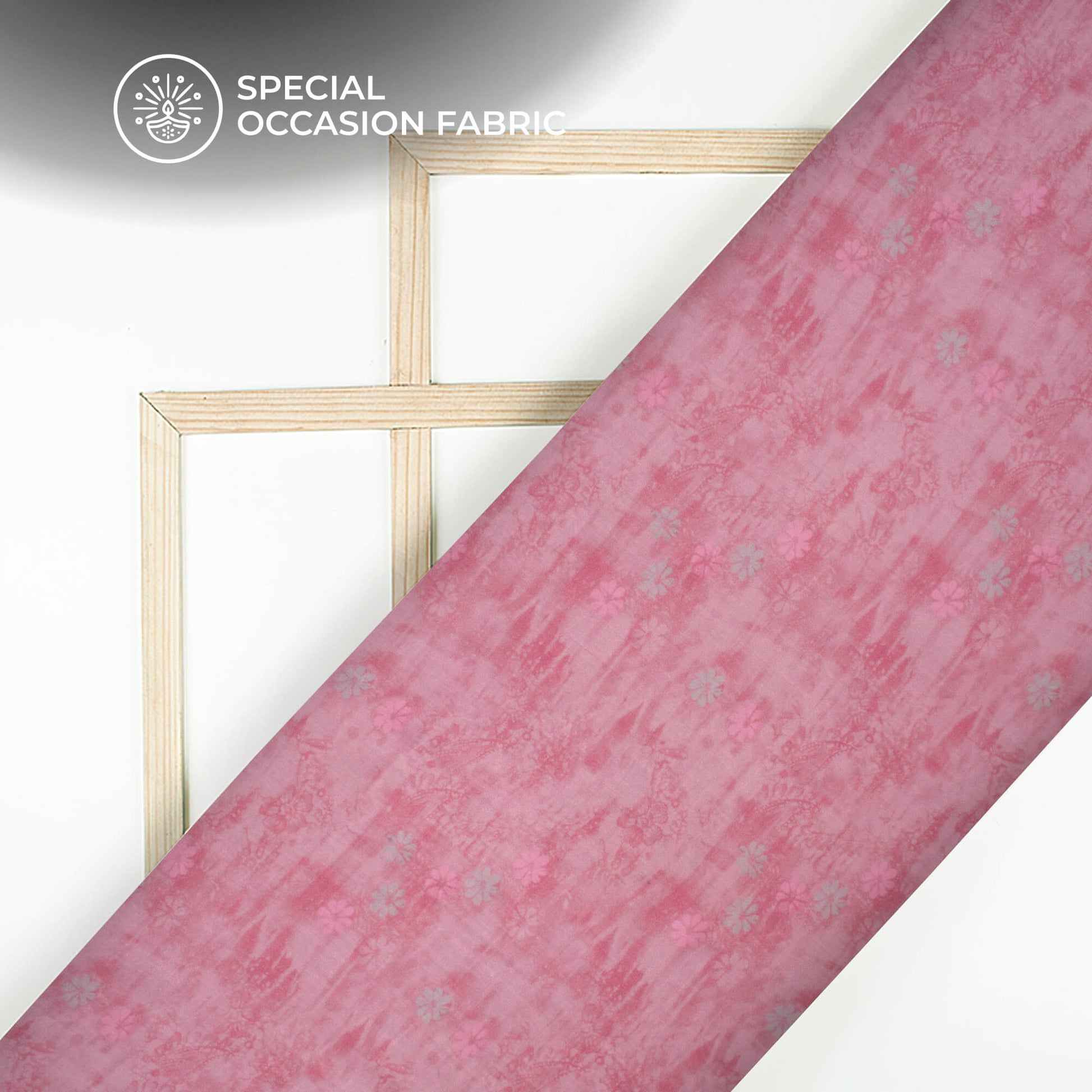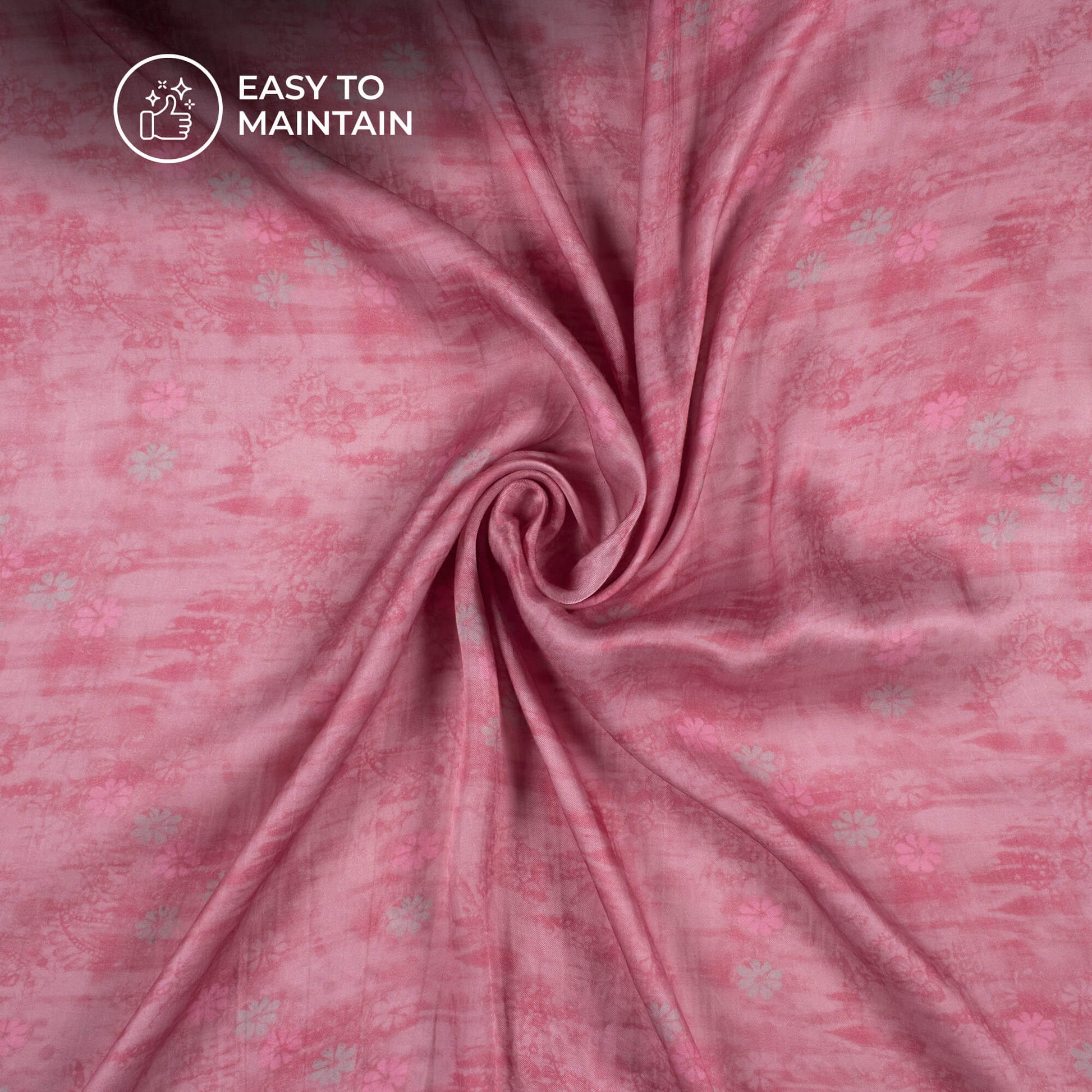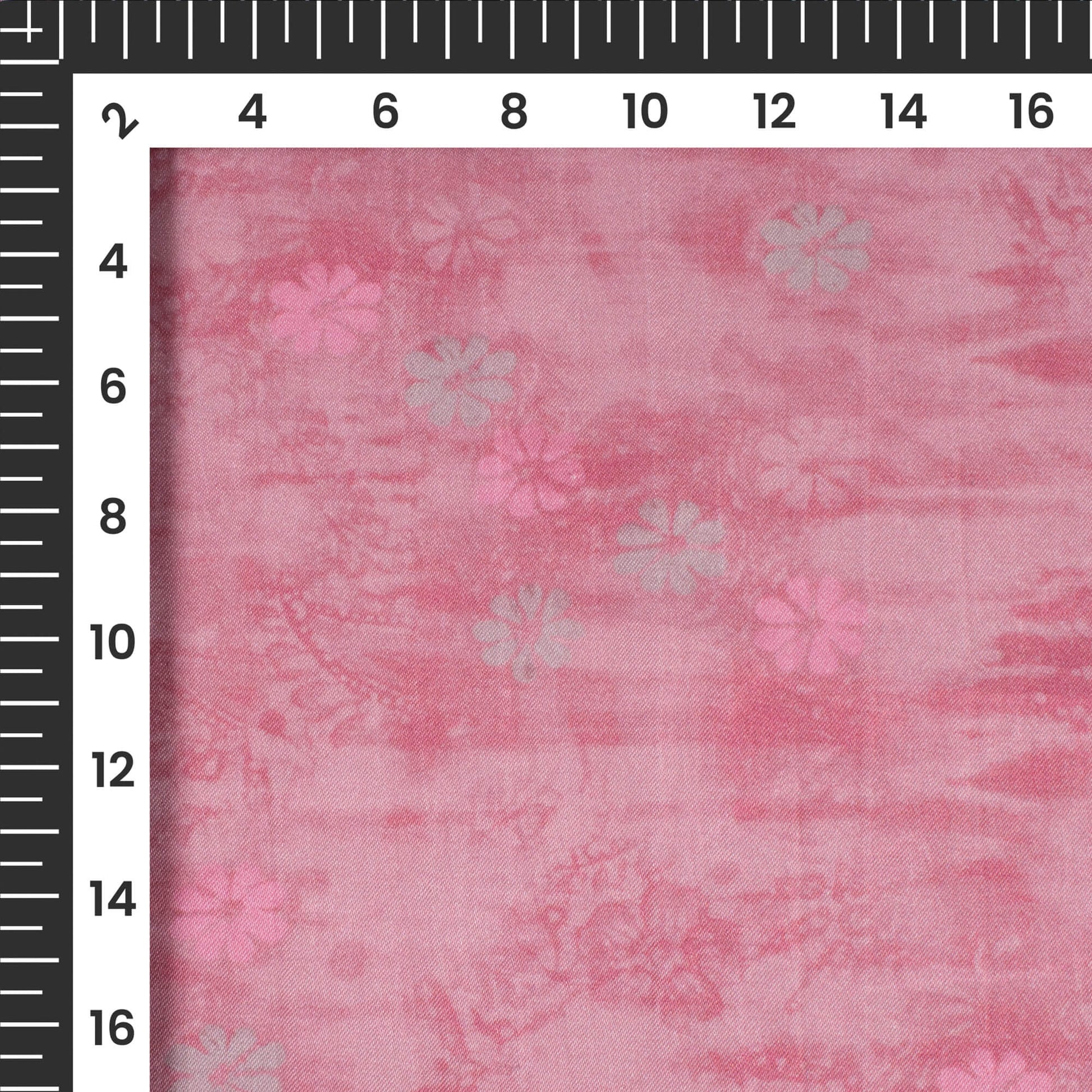 Rose Pink Floral Digital Print Viscose Gaji Silk Fabric