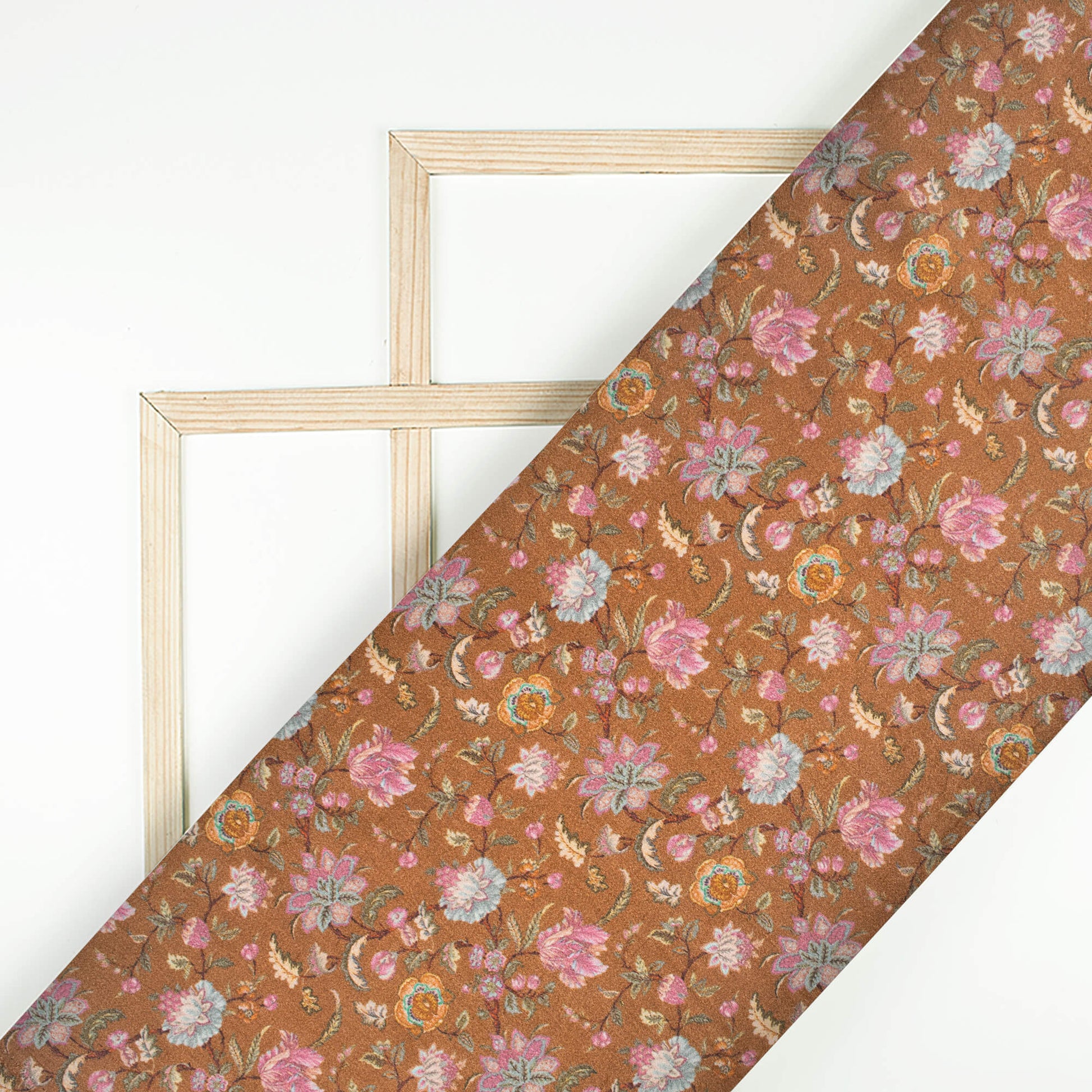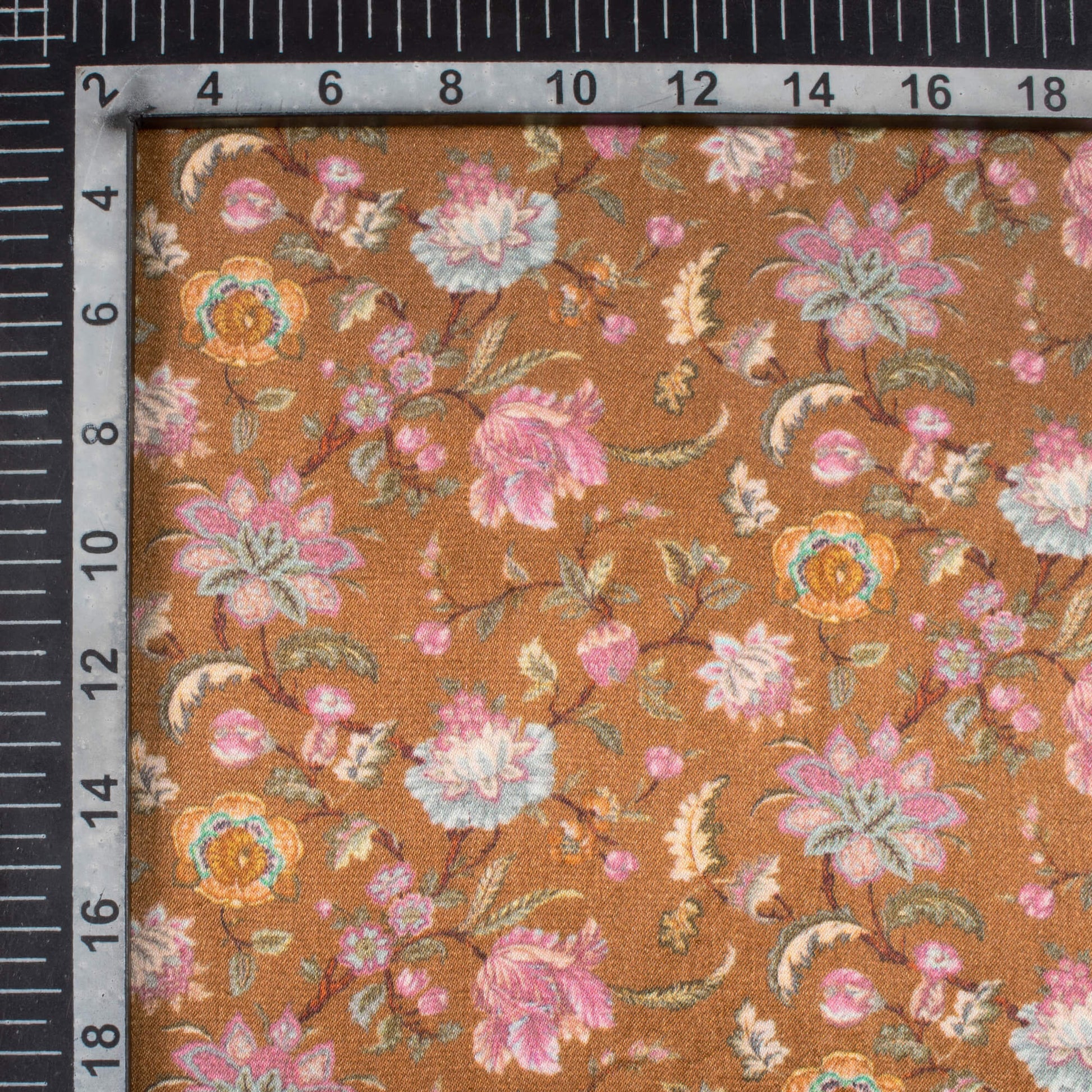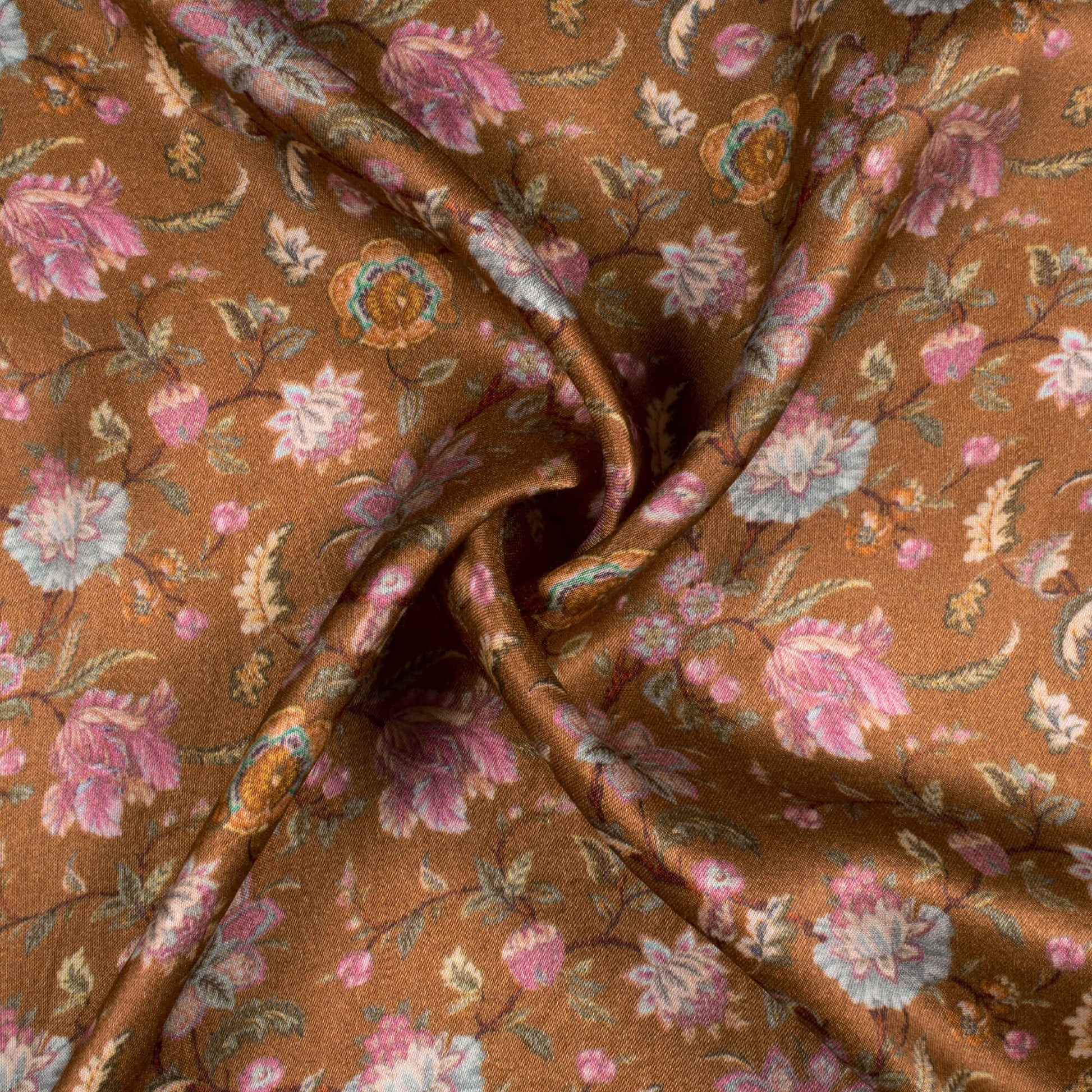 Sepia Brown And Pink Floral Pattern Digital Print Viscose Gaji Silk Fabric