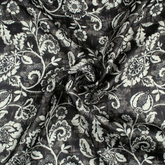 Black And White Floral Pattern Digital Print Viscose Gaji Silk Fabric Black And White Floral Pattern Digital Print Viscose Gaji Silk Fabric