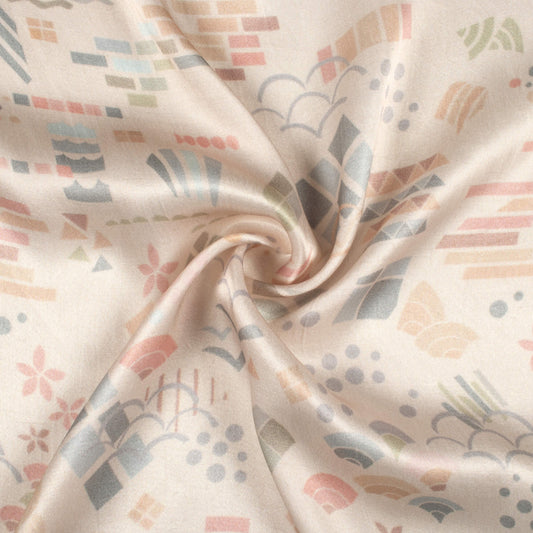 Oat Beige And Grey Quirky Pattern Digital Print Viscose Gaji Silk Fabric Oat Beige And Grey Quirky Pattern Digital Print Viscose Gaji Silk Fabric