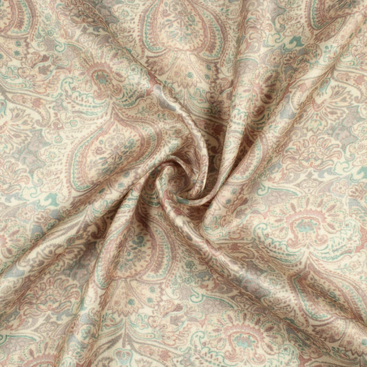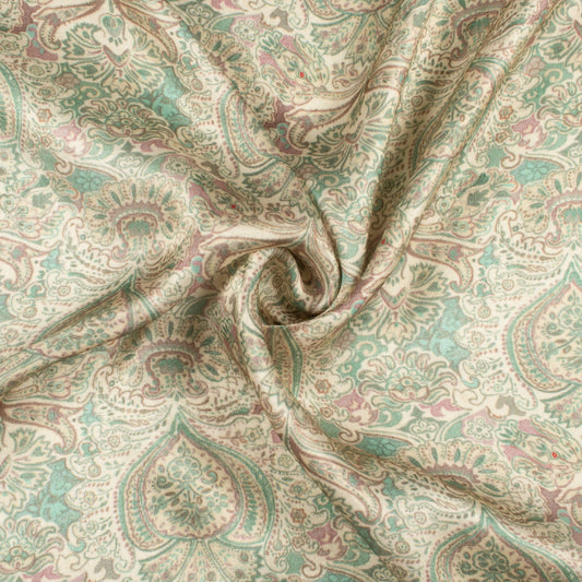 Mulberry Purple And Tea Green Paisley Pattern Digital Print Viscose Gaji Silk Fabric Mulberry Purple And Tea Green Paisley Pattern Digital Print Viscose Gaji Silk Fabric