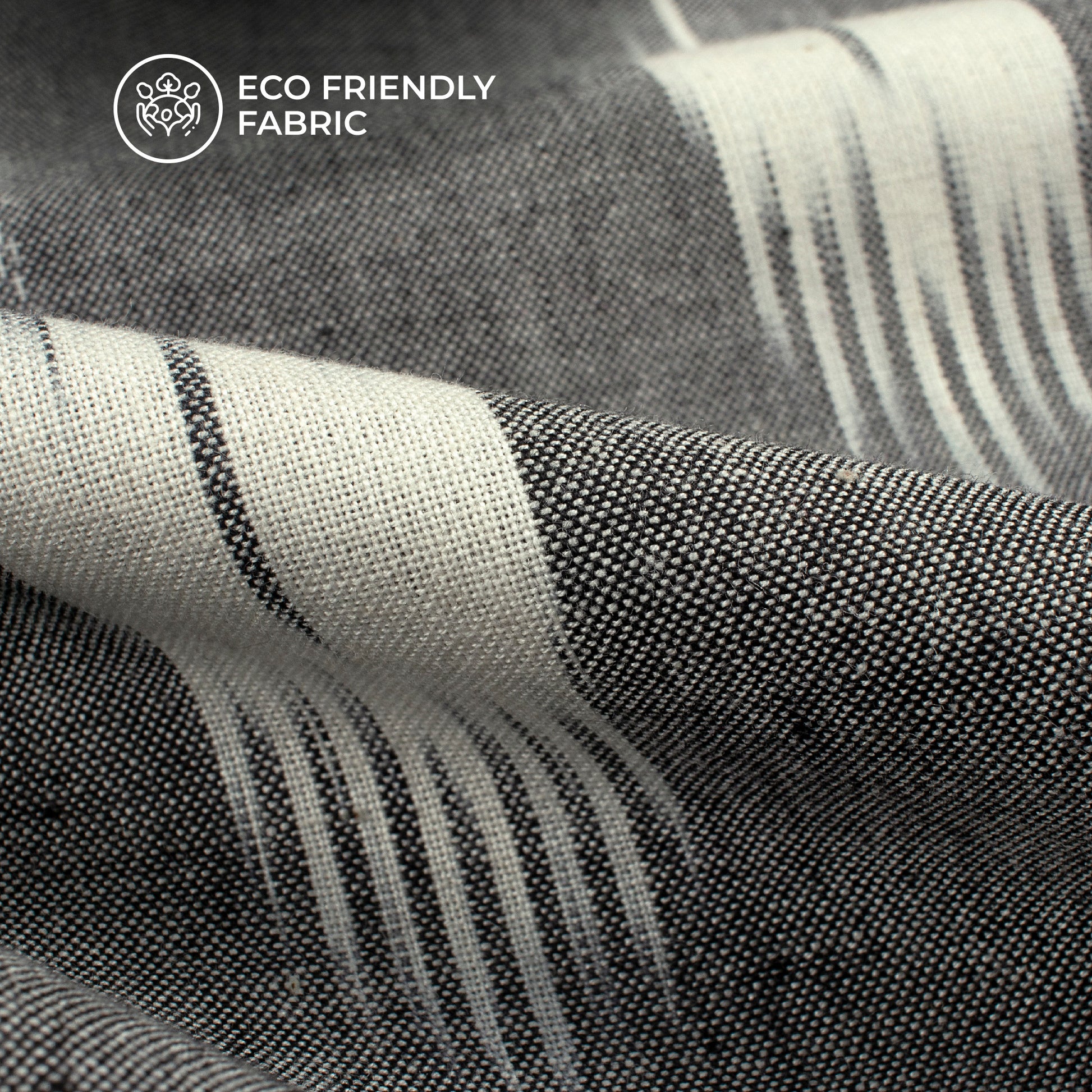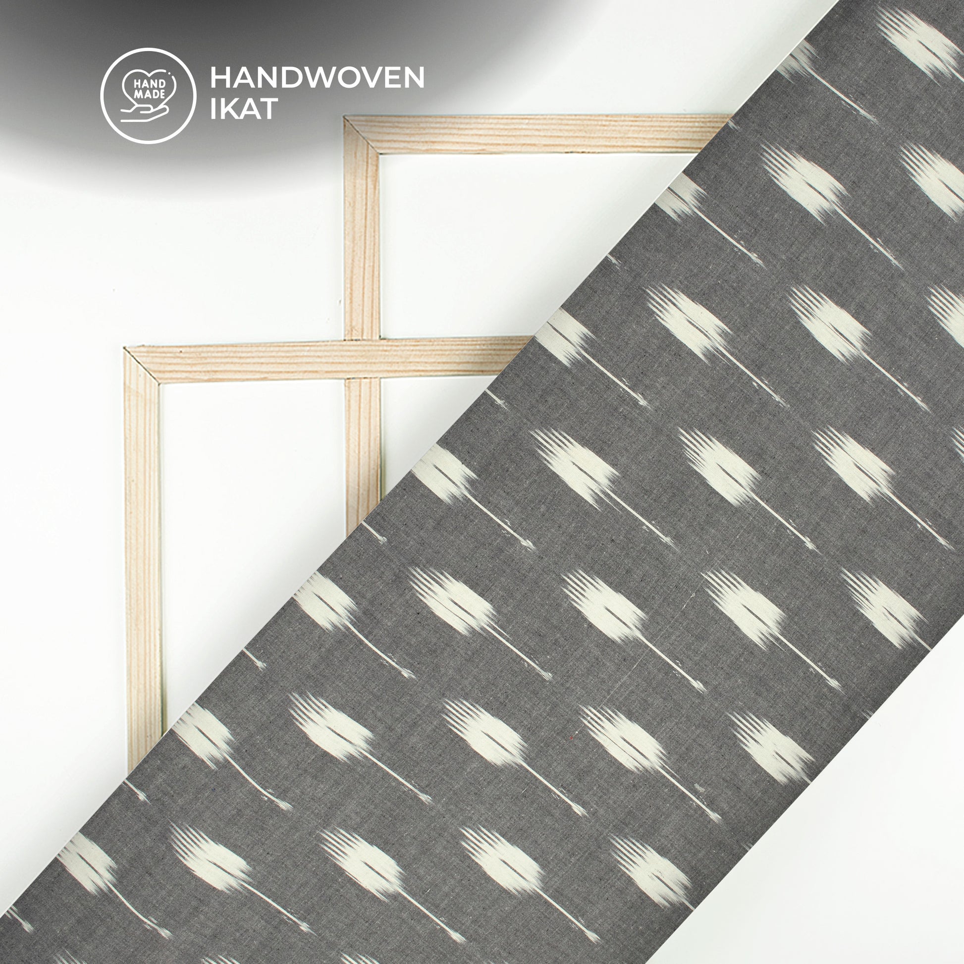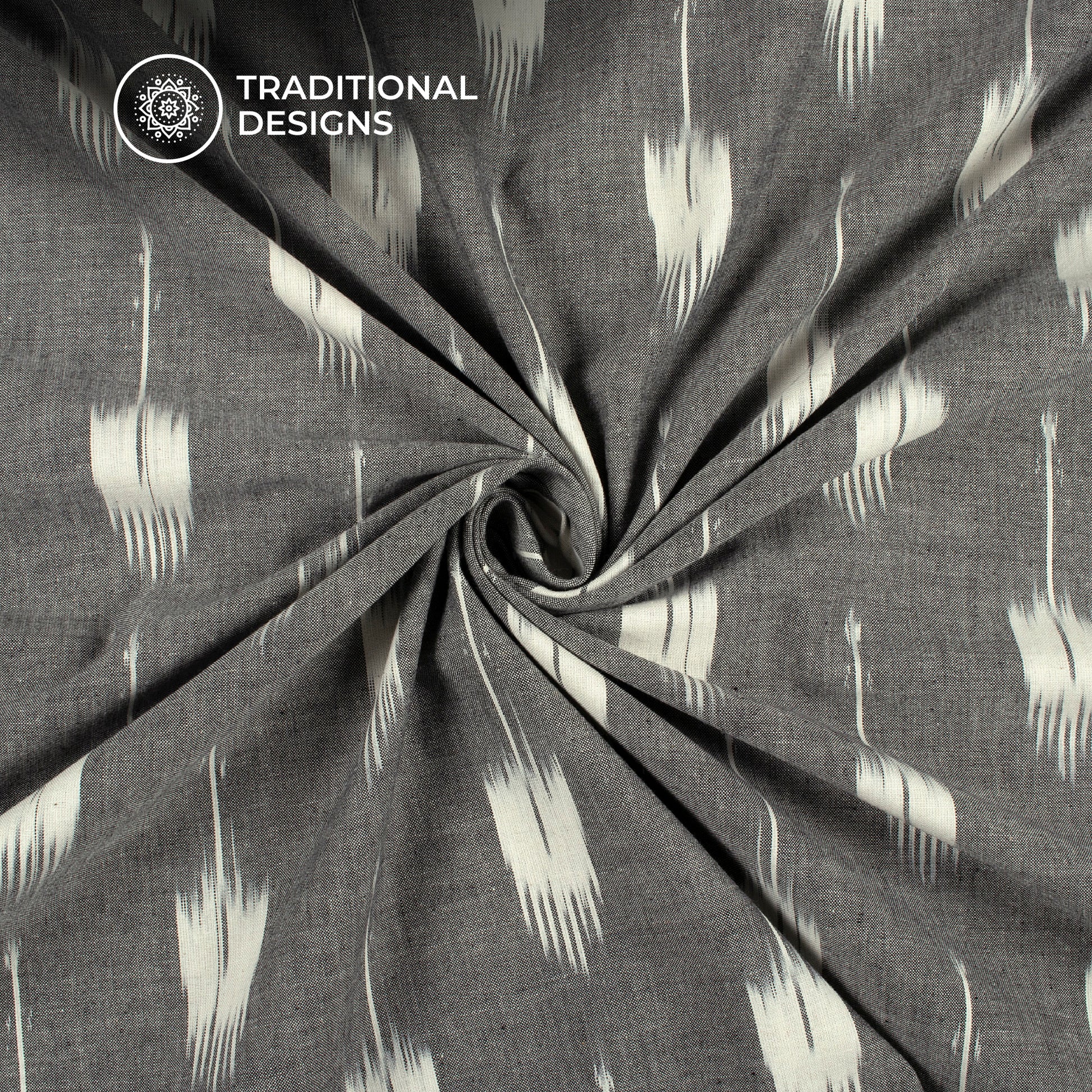 Grey And White Geometric Pre-Washed Pochampally Ikat Cotton Fabric