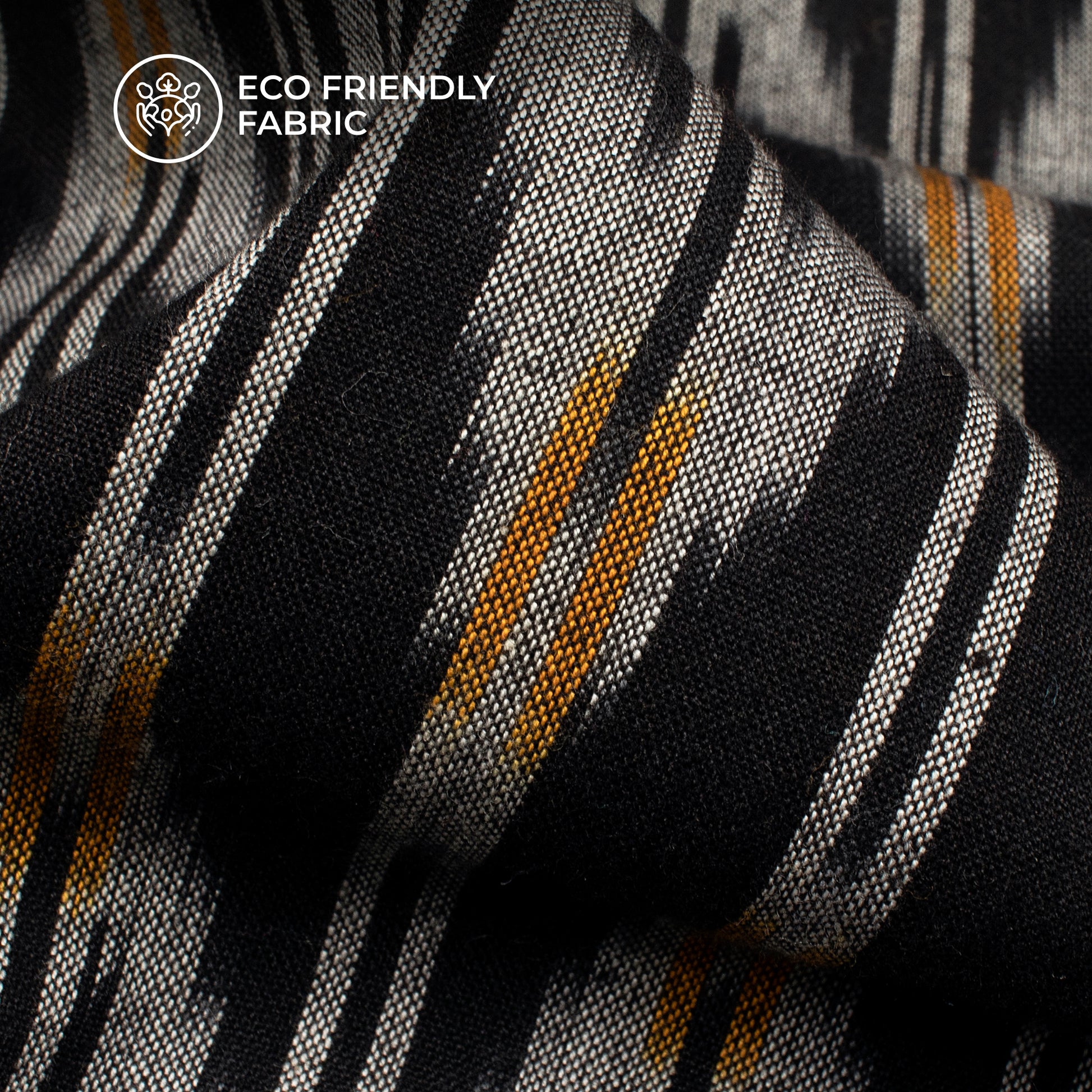 Fabcurate’s Mercerized Cotton Ikat collection is curated from the heritage town of Pochampally, where each yarn is pre-dyed before weaving to achieve the required finesse in design. Ikat is a symbiosis of colors and patterns in the textile world and is available in plethora of solid colors like – black, magenta, orange, blue, red and more. The yarn is woven with great skill to achieve the precise blurry zig-zag and rectangular patterns which we find in this fabric. The fabric can be used in creating any trendy home furnishings and apparels like dresses, Jackets, Skirts, Jumpsuits, Kurtis, Shirts etc.