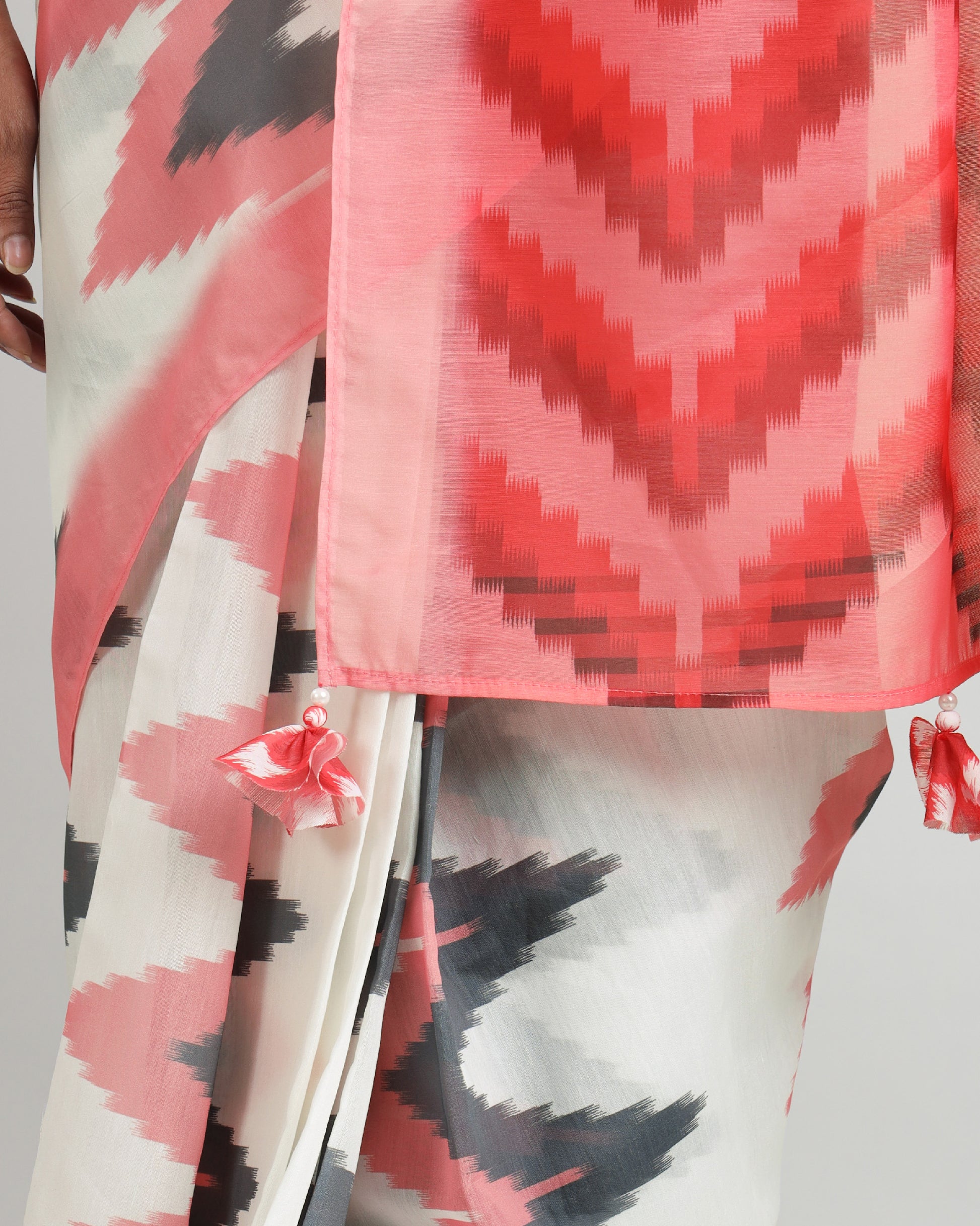 Elevate your traditional look with our A Touch of Tradition: The Ikat Print Pre-Draped Saree. Made from Chanderi fabric, this saree features a beautiful Ikkat print that adds a touch of elegance to any occasion. Embrace the art of Indian craftsmanship and drape yourself in style.