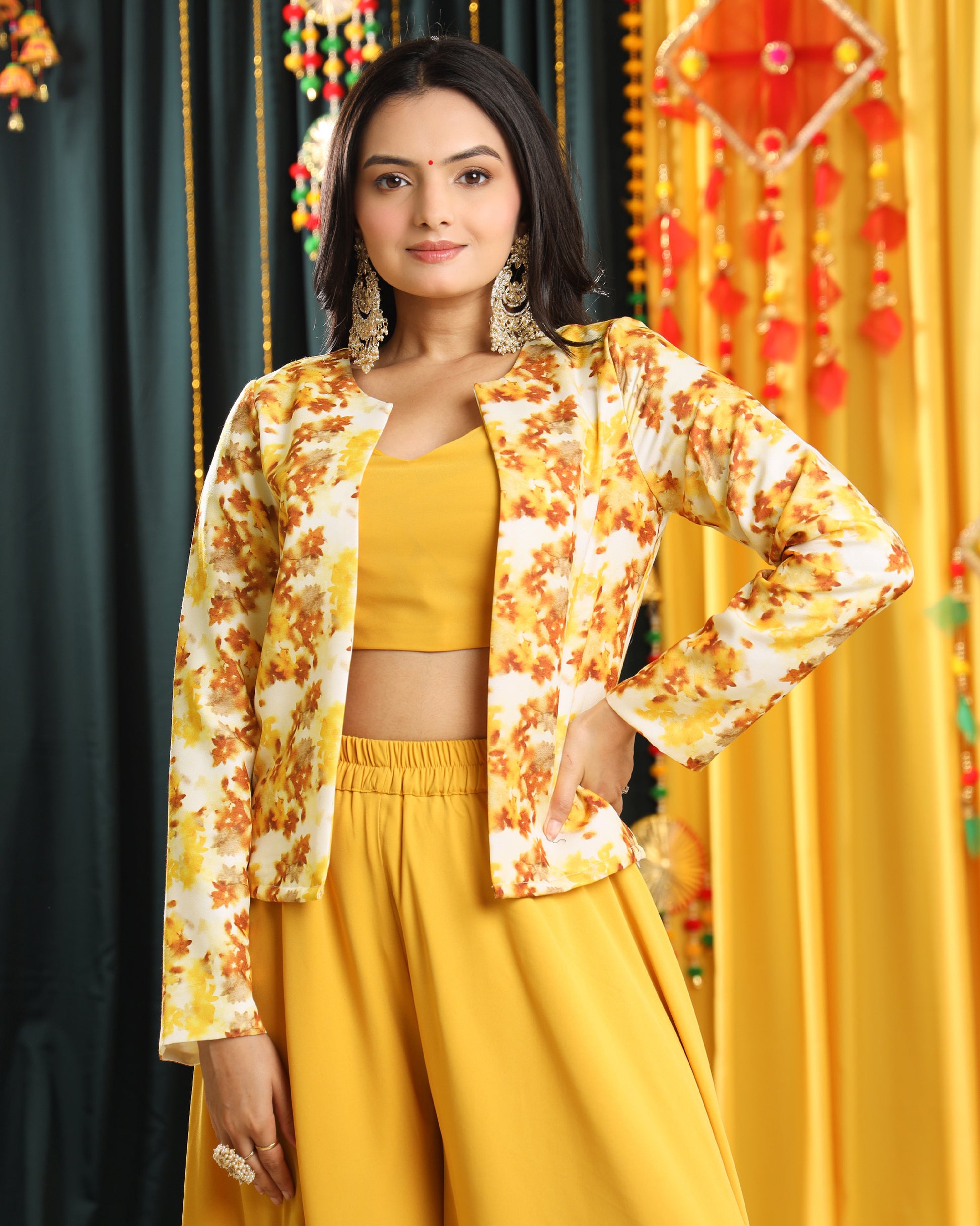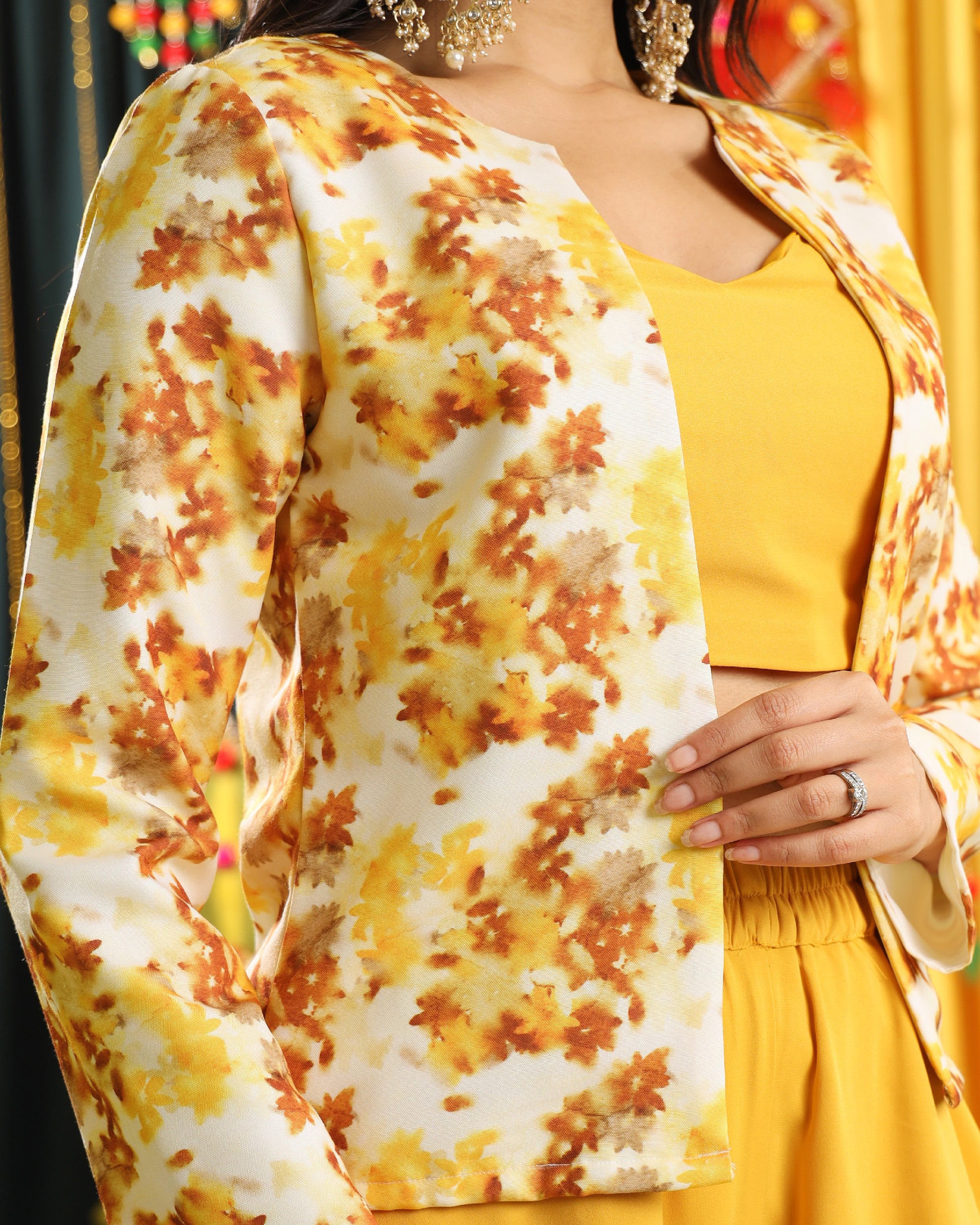 Haldi jackets can become an essential fashionable part of traditional Indian wedding attire. These jackets are often crafted from vibrant fabrics and adorned with intricate patterns. They are designed to be worn over traditional Indian outfits like kurta-pajamas, lehenga or more during pre-wedding ceremonies such as Haldi or Mehndi. Whether you're a bride, family member, or guest, these Haldi jackets are a stylish choice to enhance your look and celebrate a joyous occasion.